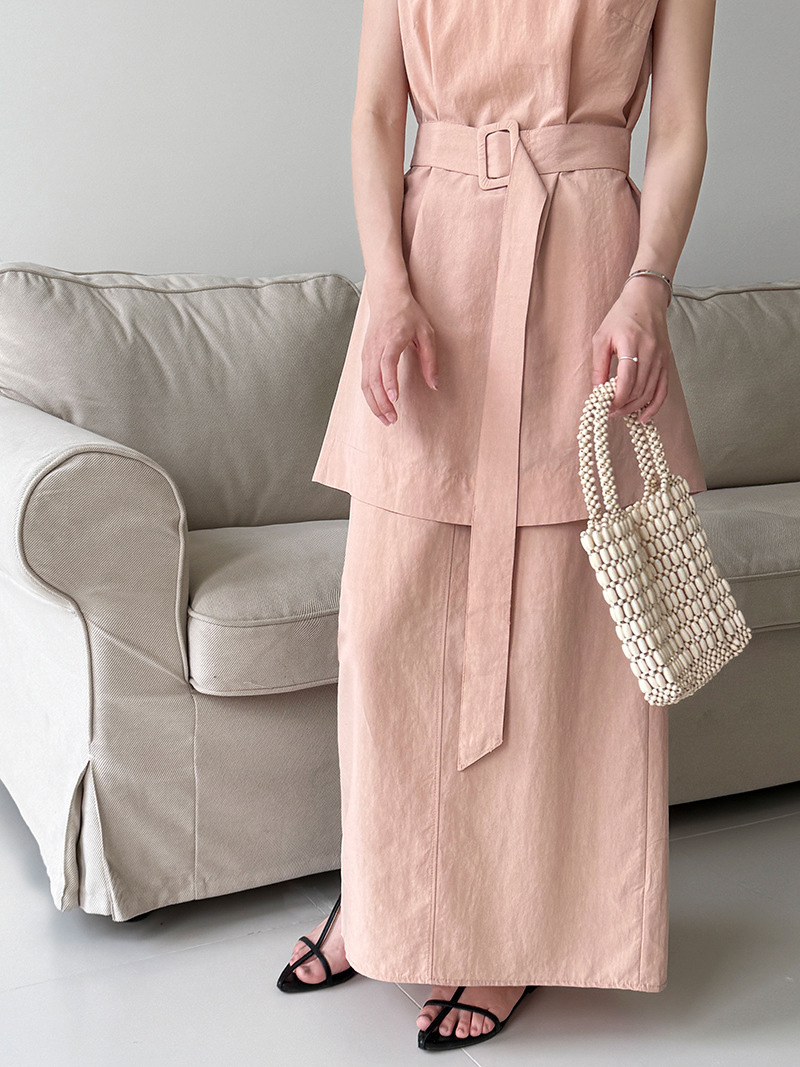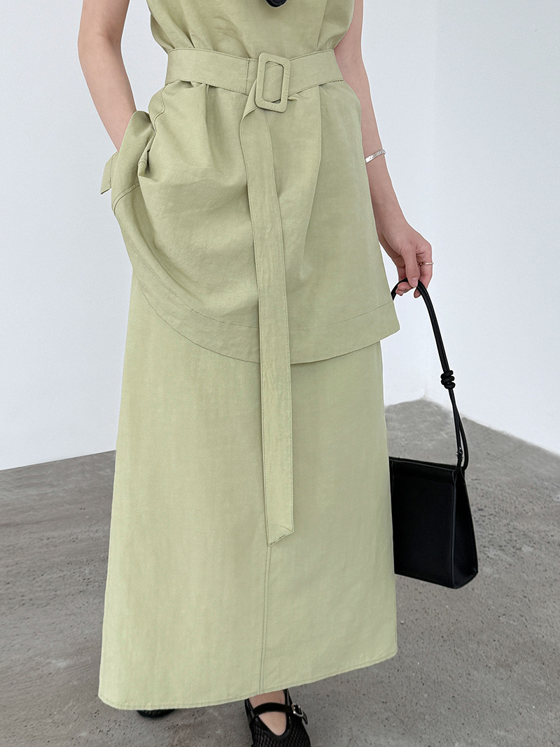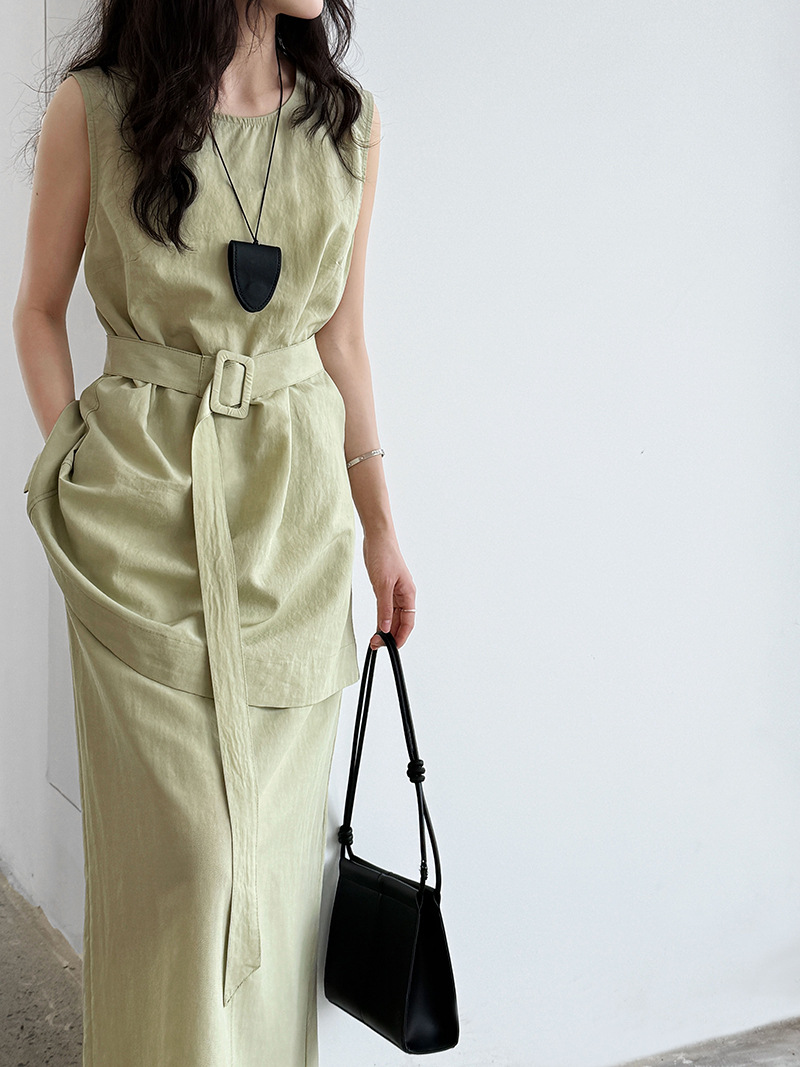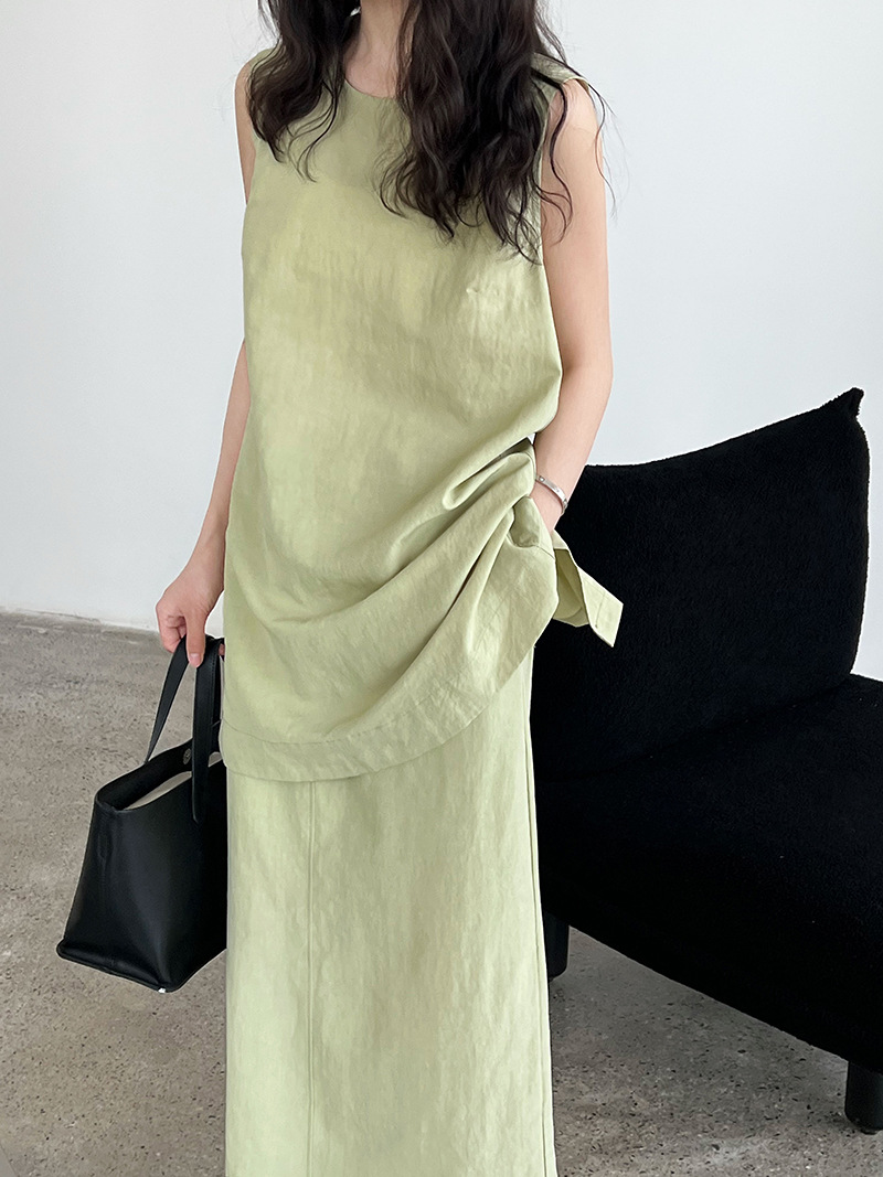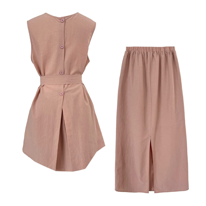 【商品名】【ボトムス】上品シルエット高級感 夏新作 フレンチエレガンス ノースリーブトップス+ハイウエストスカート 上下セット 【SNシリーズ】