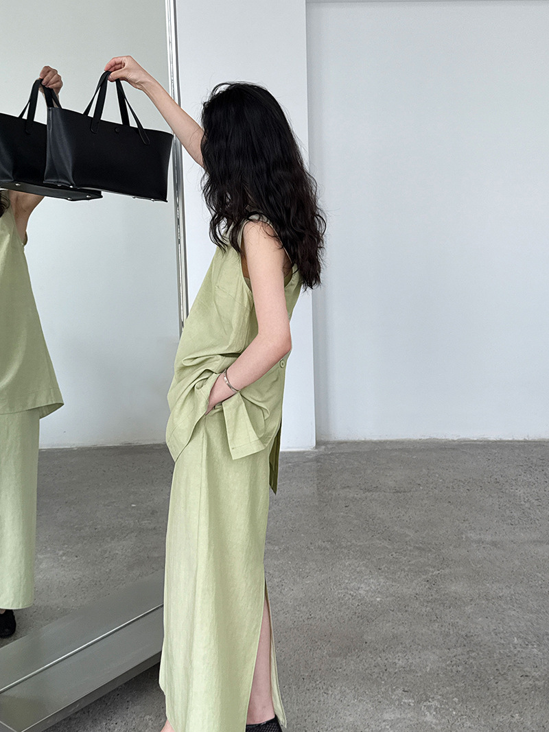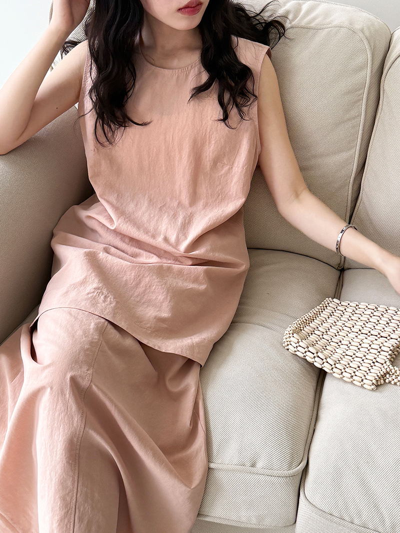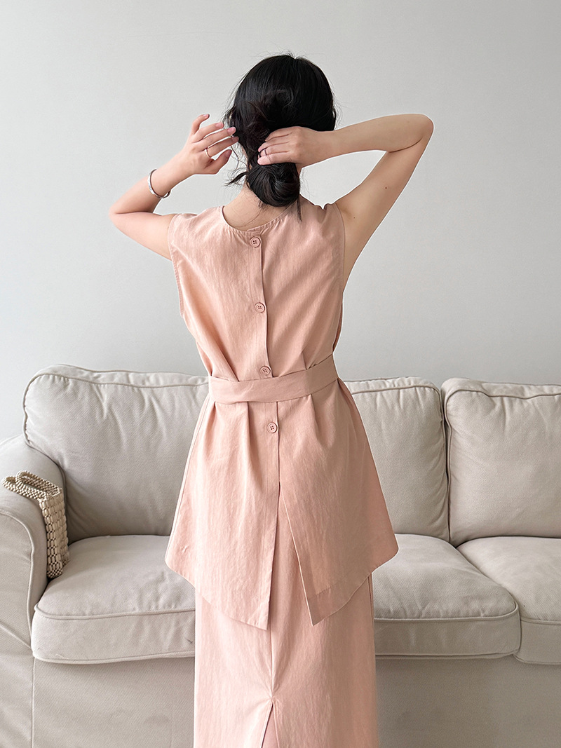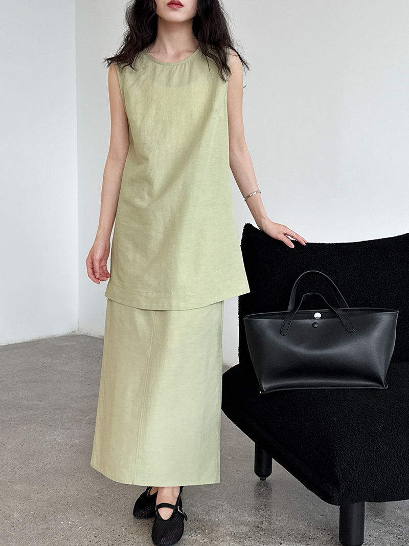【商品名】【ボトムス】上品シルエット高級感 夏新作 フレンチエレガンス ノースリーブトップス+ハイウエストスカート 上下セット 【SNシリーズ】