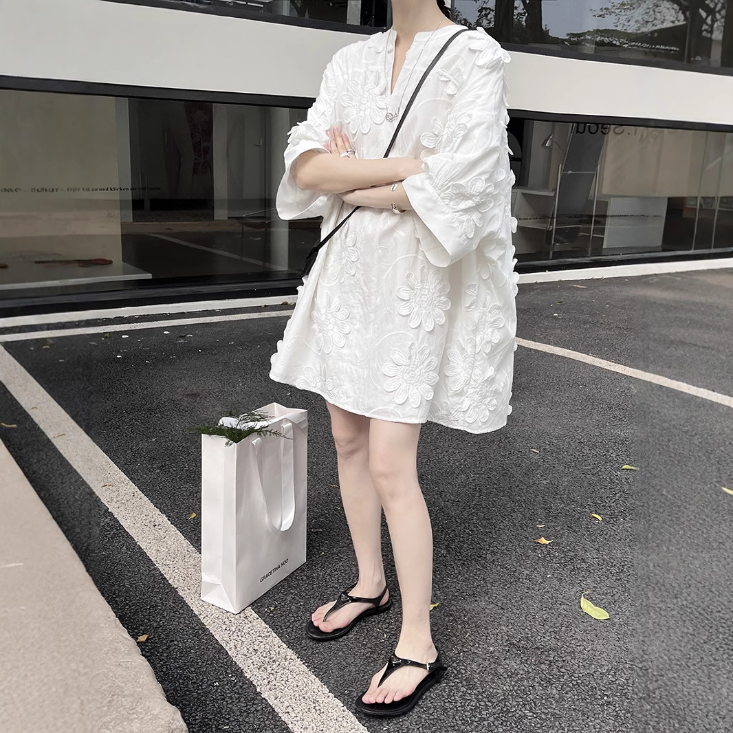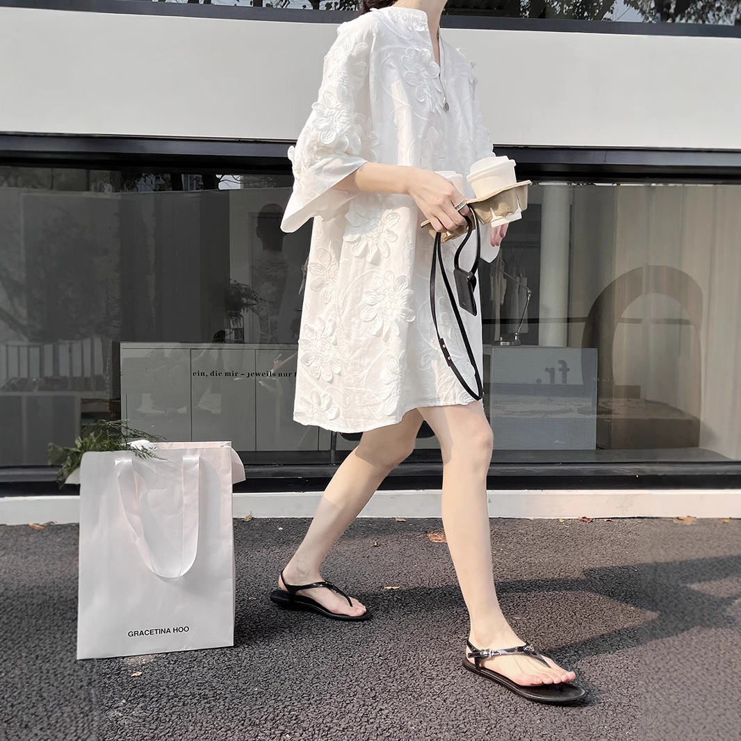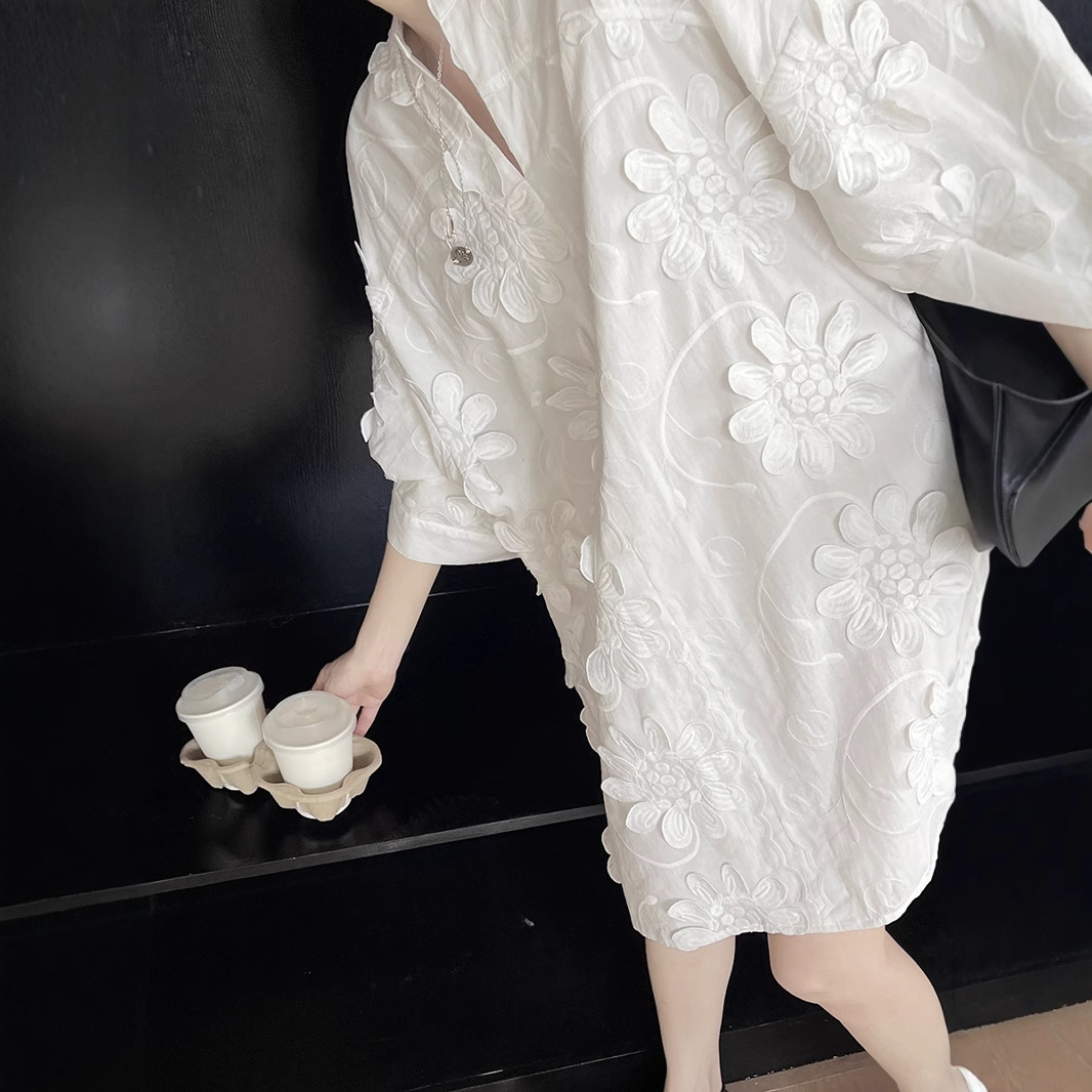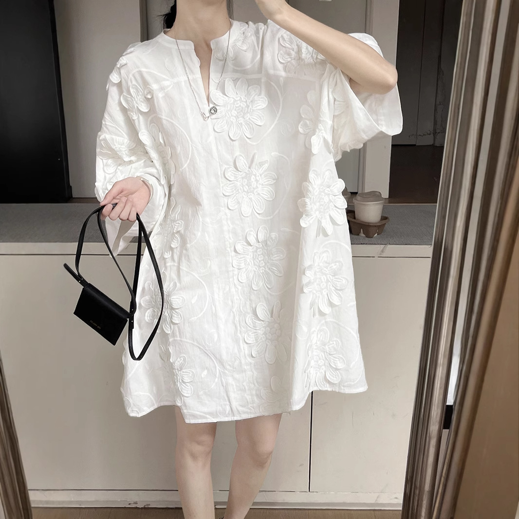 【ワンピース】夏 春 秋 コットン100% エレガント 着痩せ効果 ルーズ 半袖 ワンピース 【SNシリーズ】
