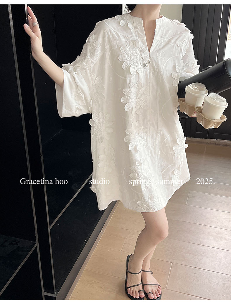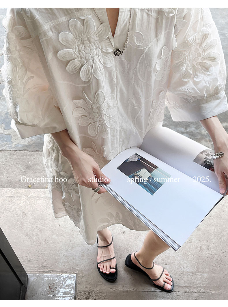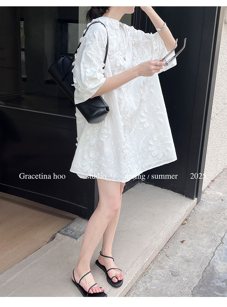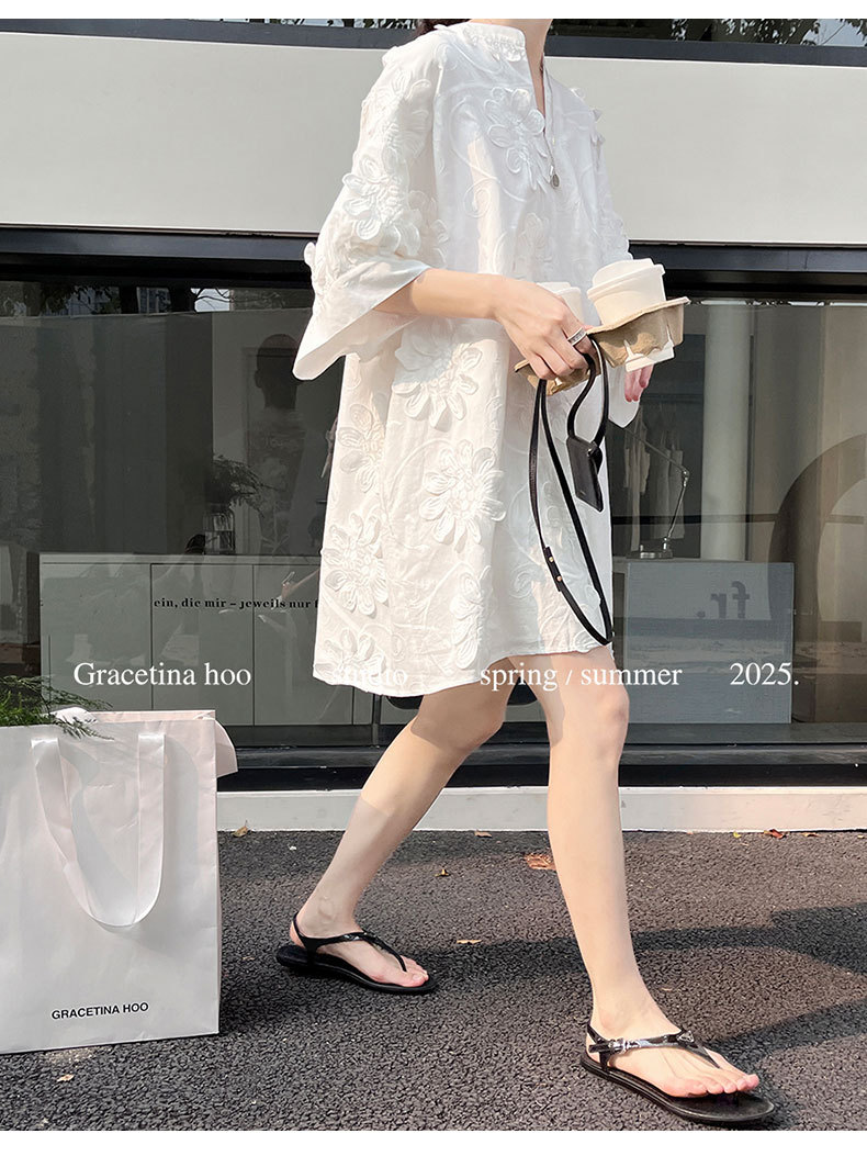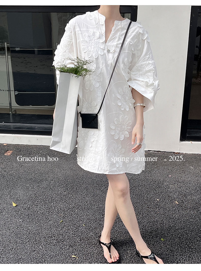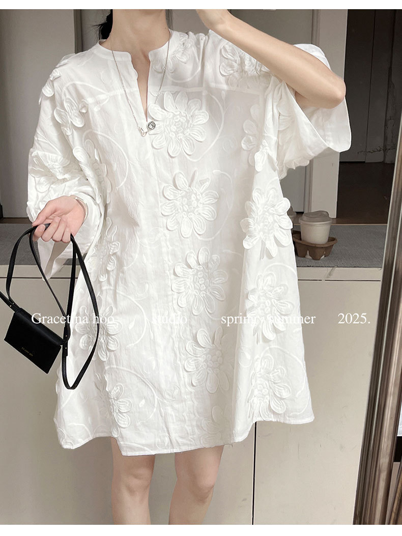 【ワンピース】夏 春 秋 コットン100% エレガント 着痩せ効果 ルーズ 半袖 ワンピース 【SNシリーズ】