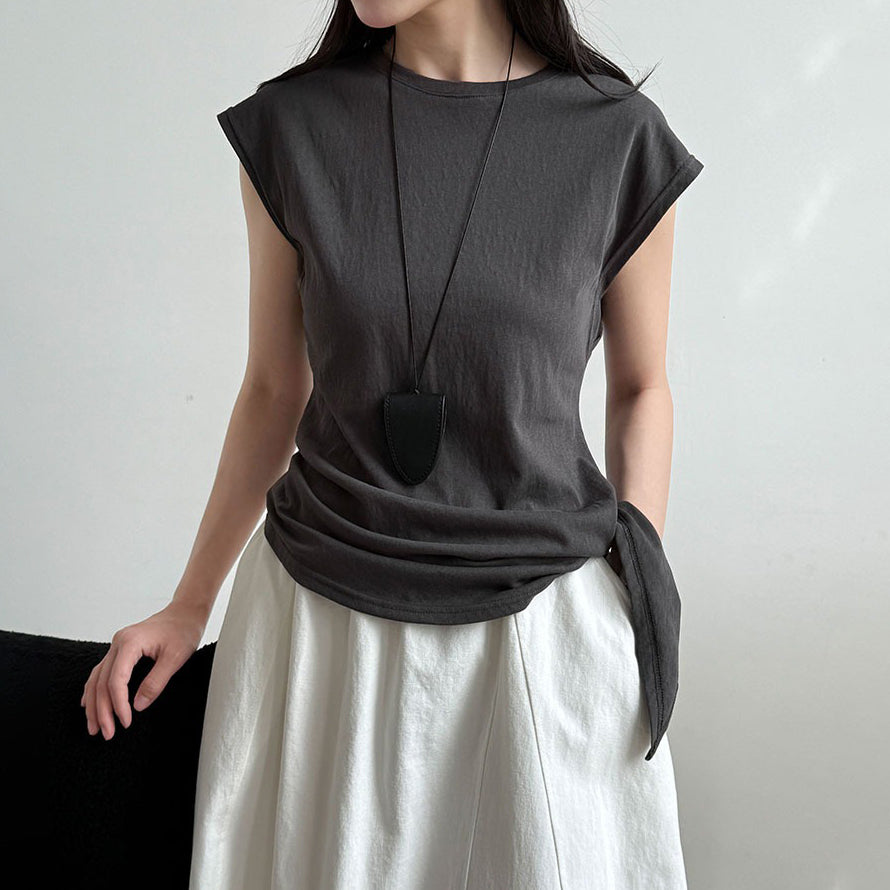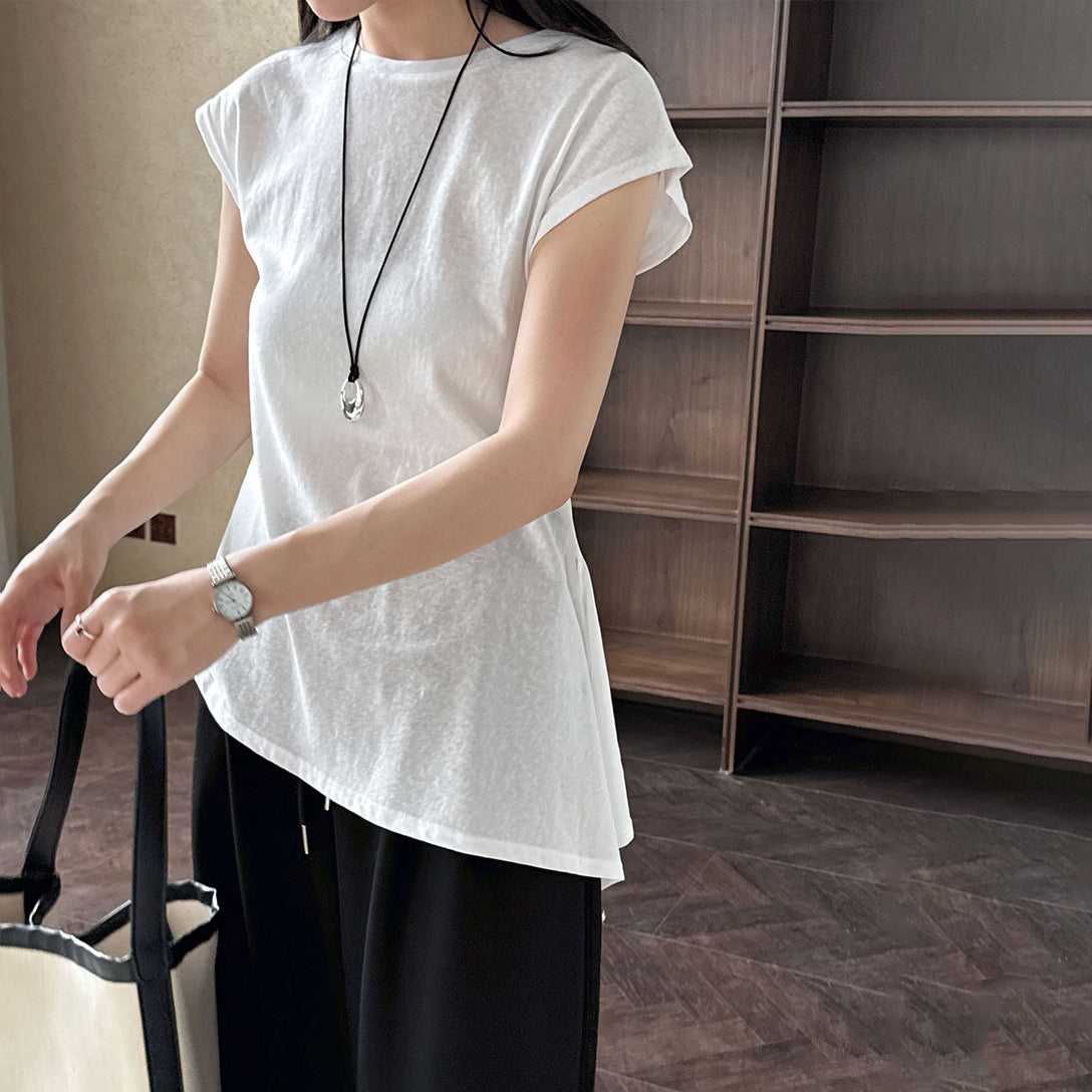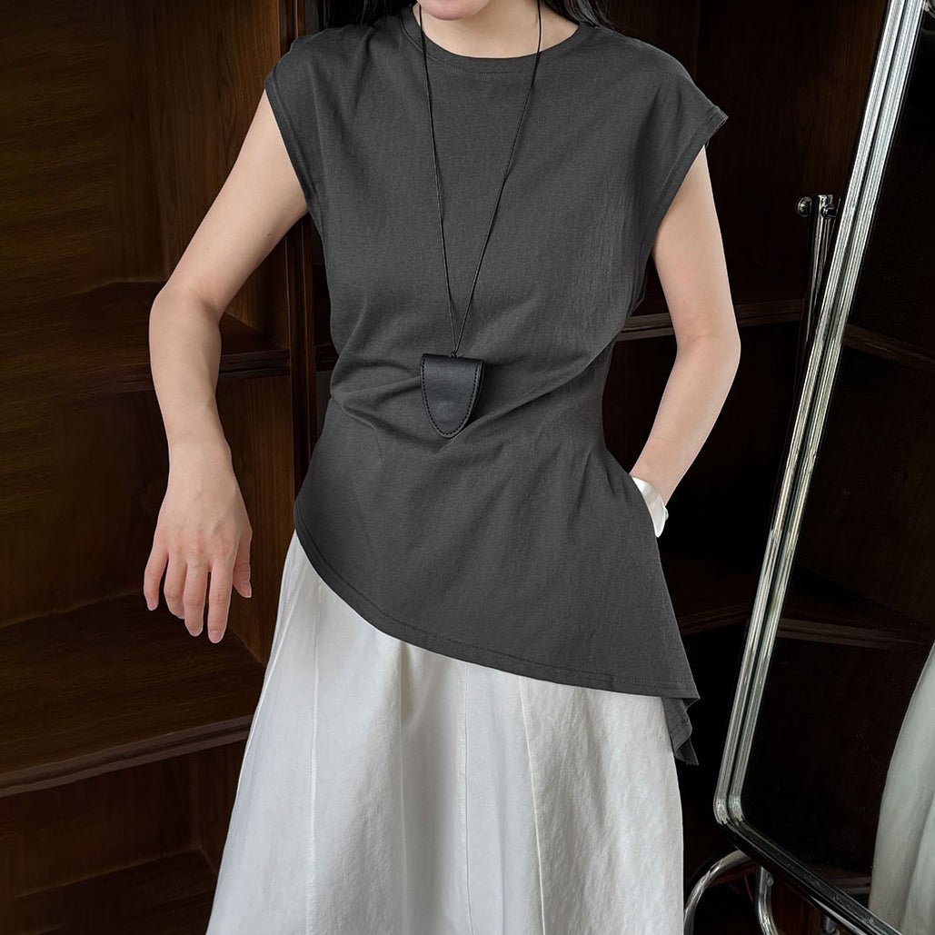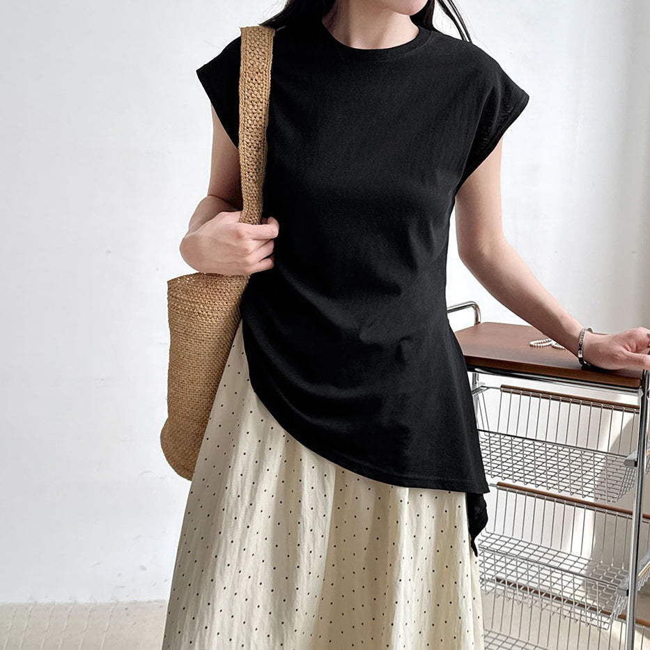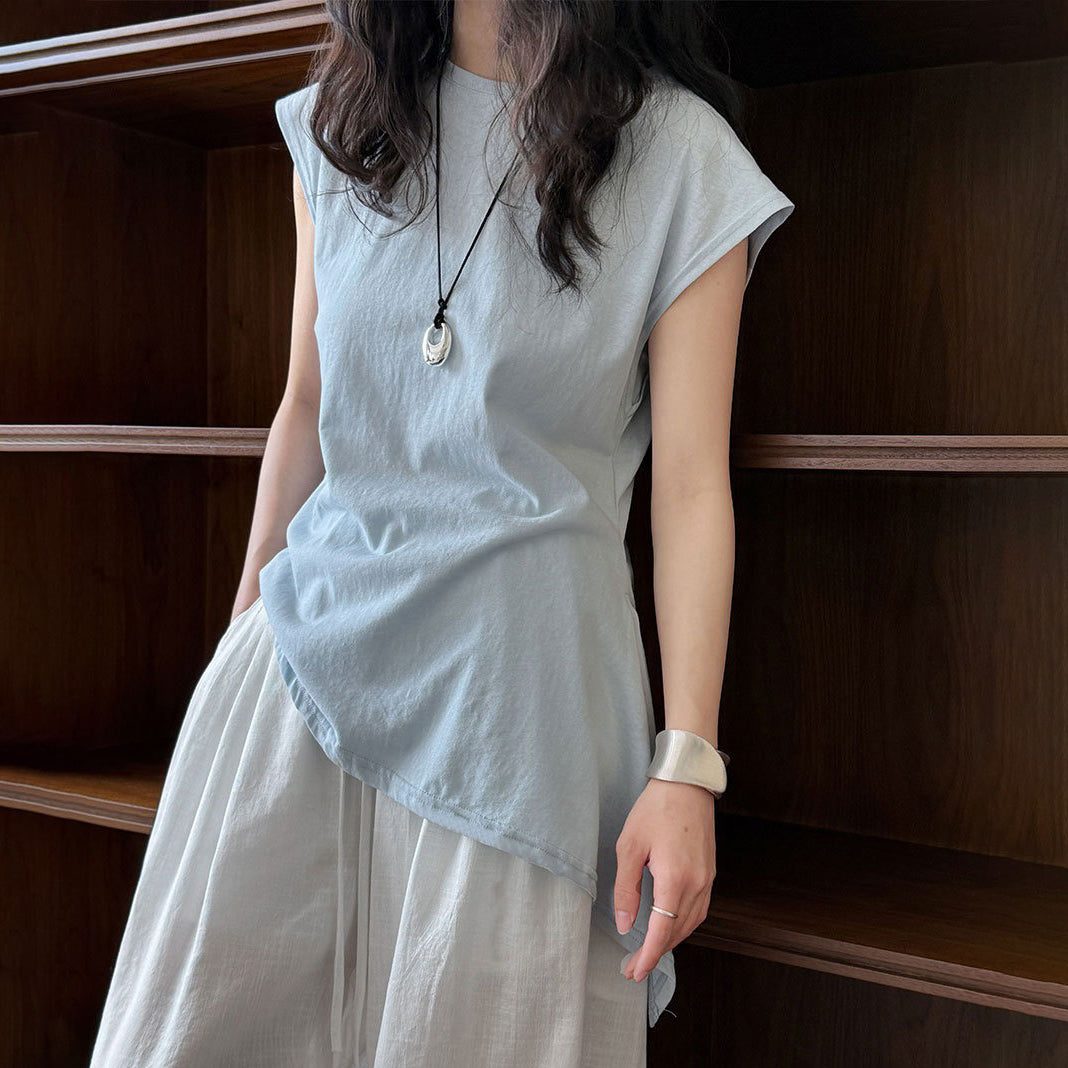 【トップス】韓国風 シンプル 夏新作 ウエストマーク 不規則デザイン 半袖Tシャツ【SNシリーズ】