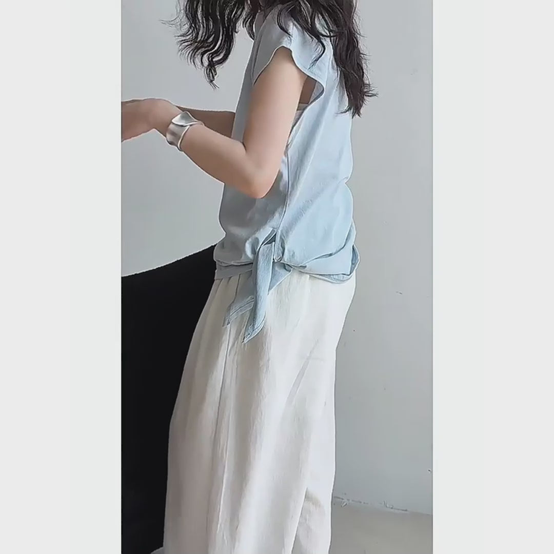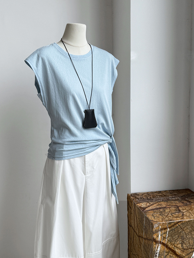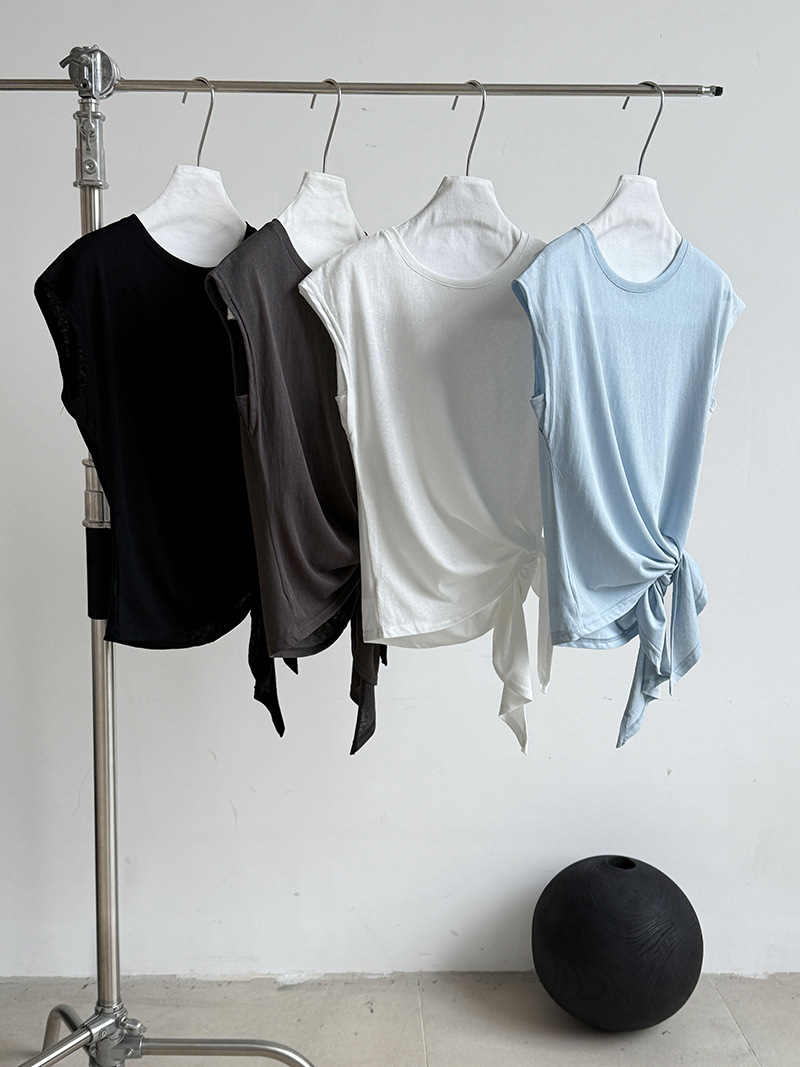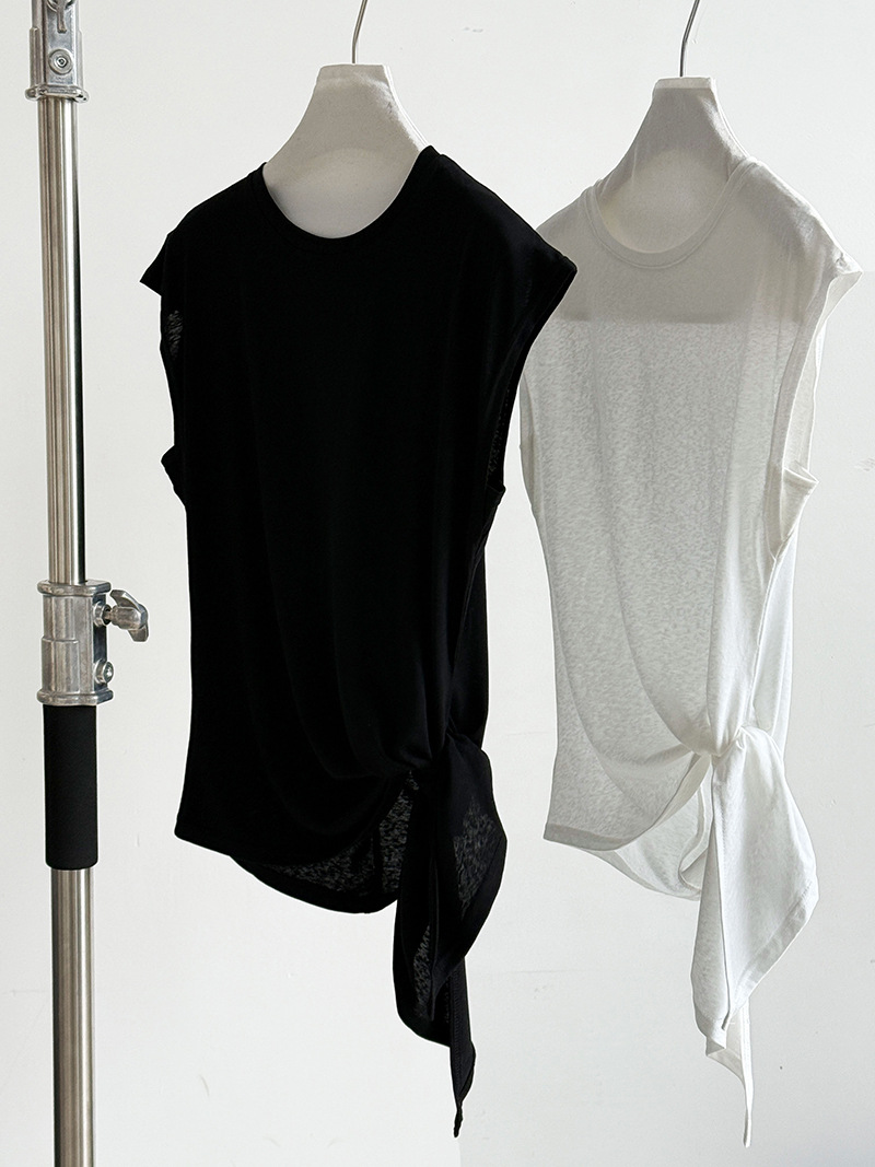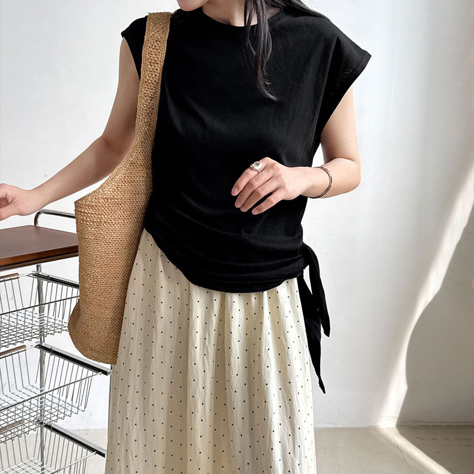 【トップス】韓国風 シンプル 夏新作 ウエストマーク 不規則デザイン 半袖Tシャツ【SNシリーズ】