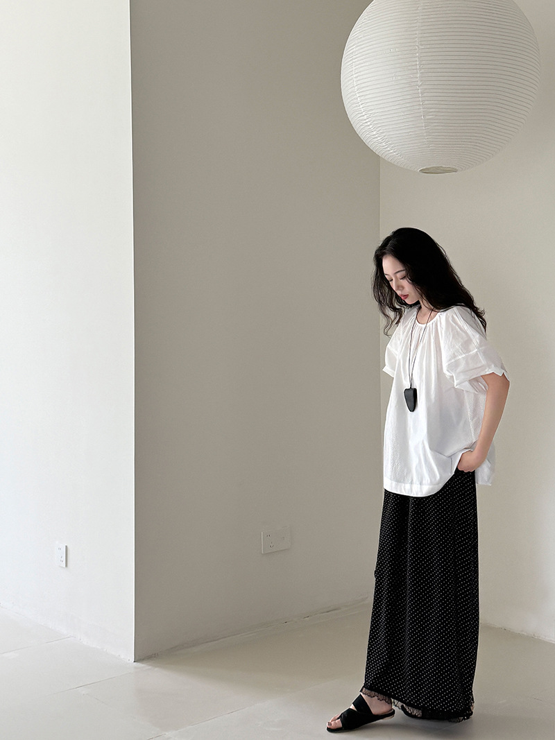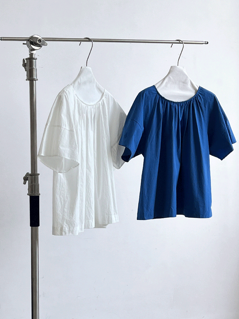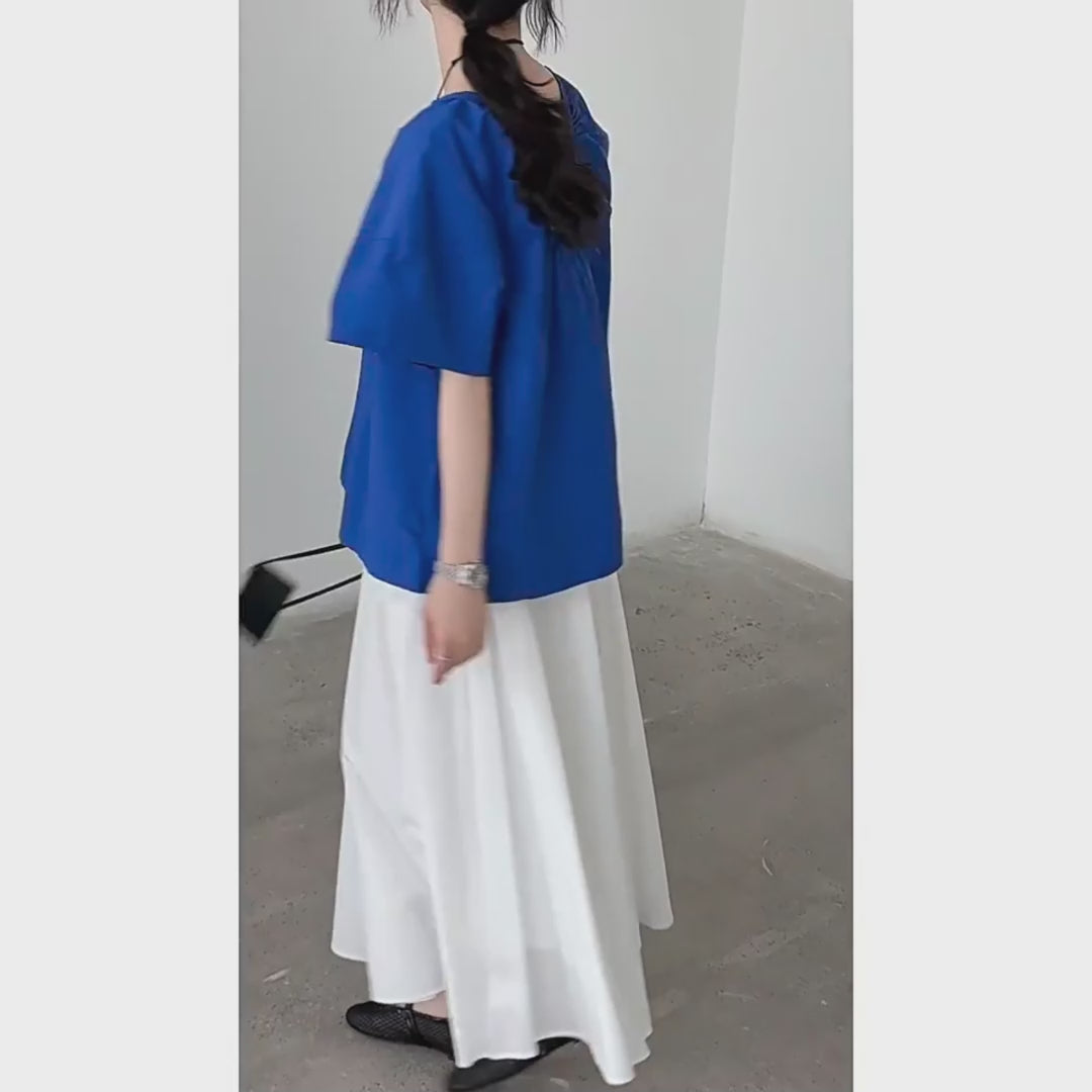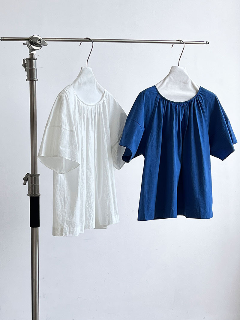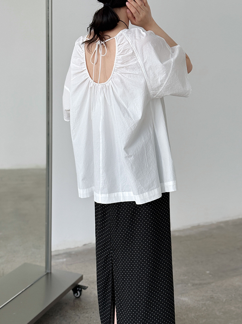【トップス】韓国風 夏新作 ギャザー×バックオープン デザイン感ラウンドネック半袖ブラウス【SNシリーズ】