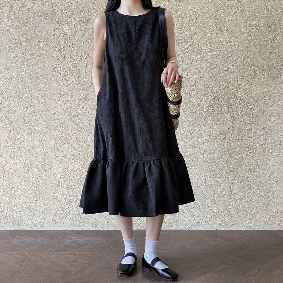 【ワンピース】夏 フリル ノースリーブ 合わせやすい ワンピース【JZシリーズ】