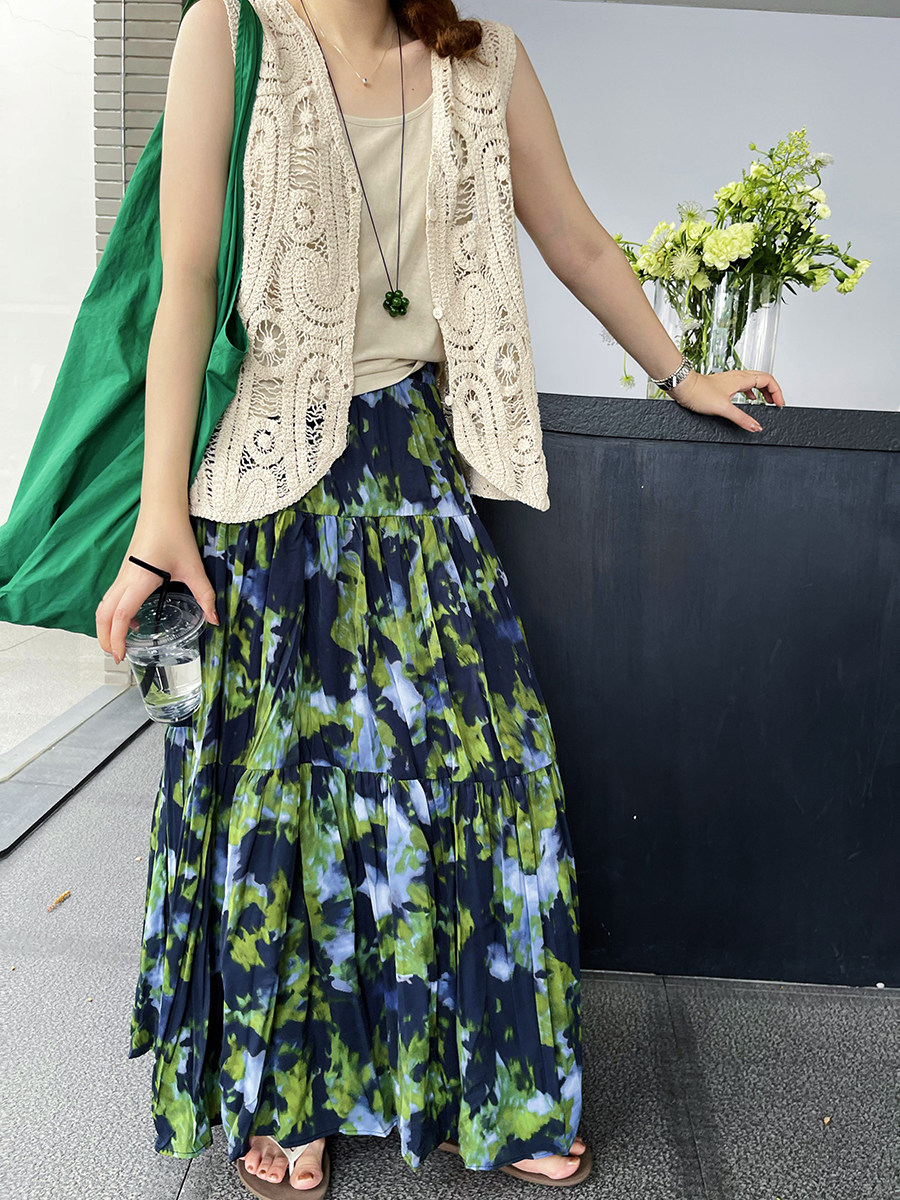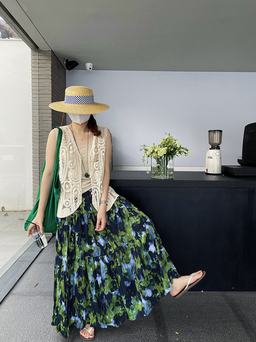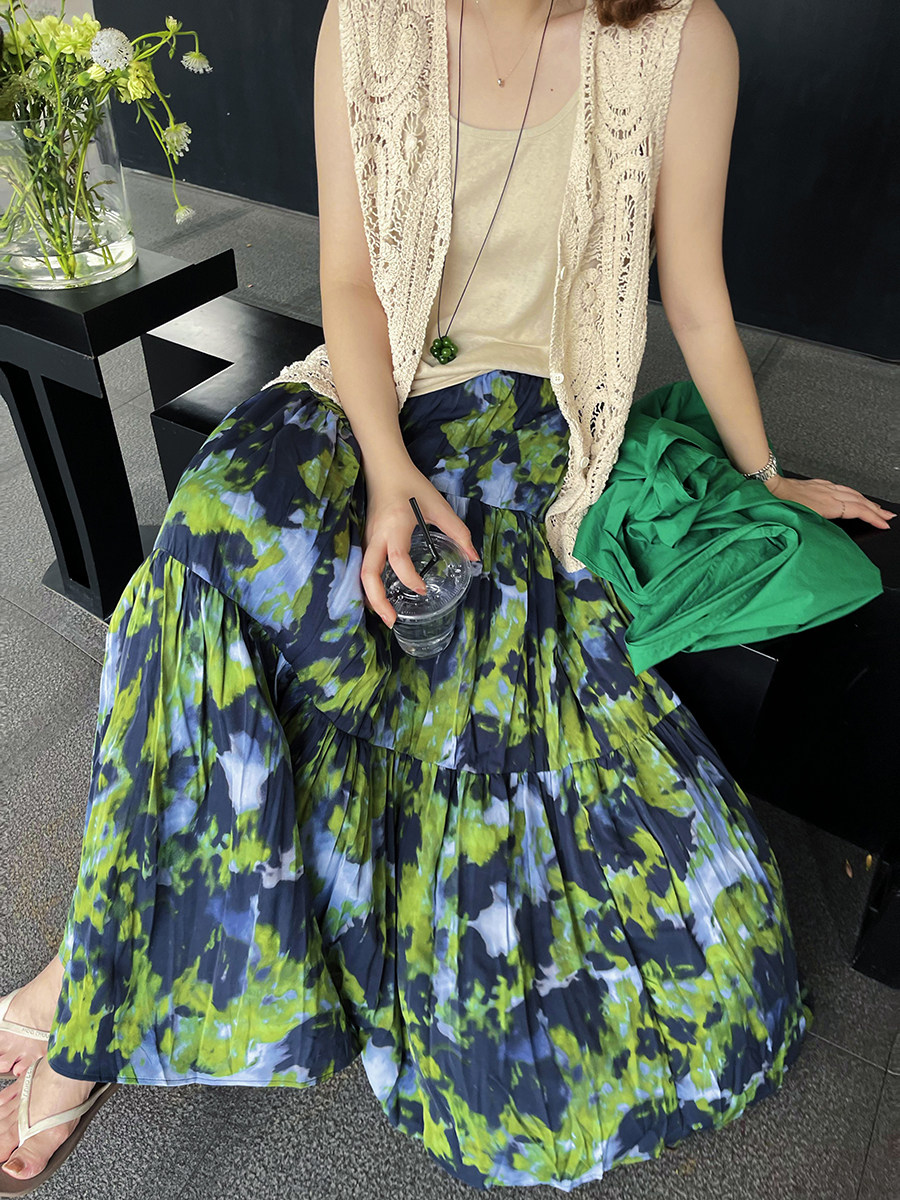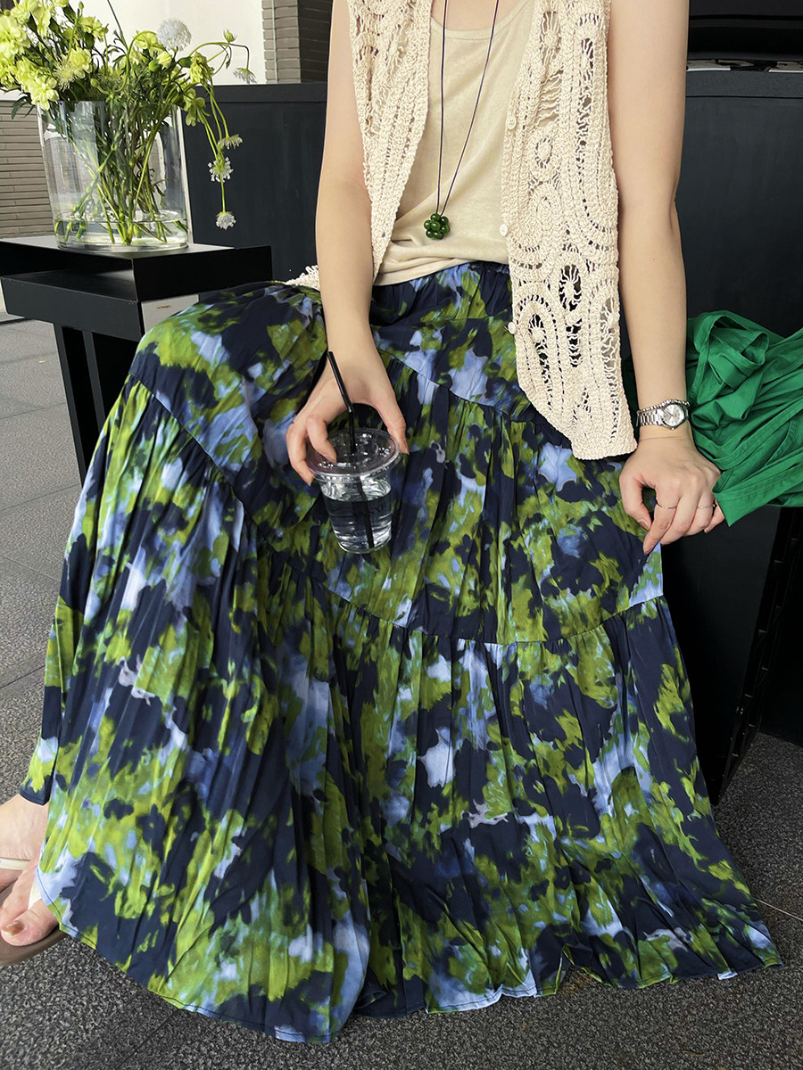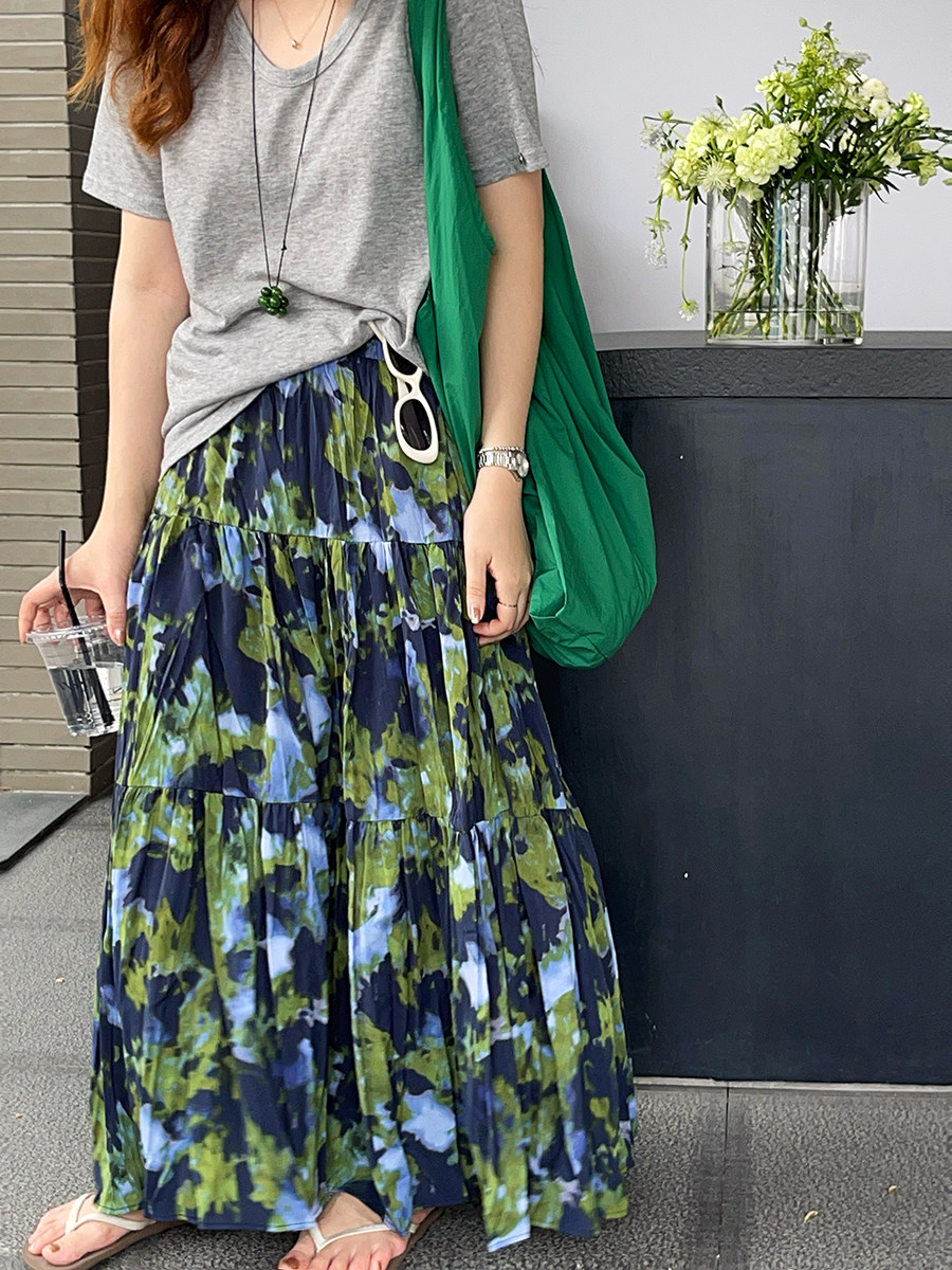 【ボトムス】夏新作 フレンチエレガンス 高腰スリム効果 レトロ花柄デザインスカート【SHシリーズ】