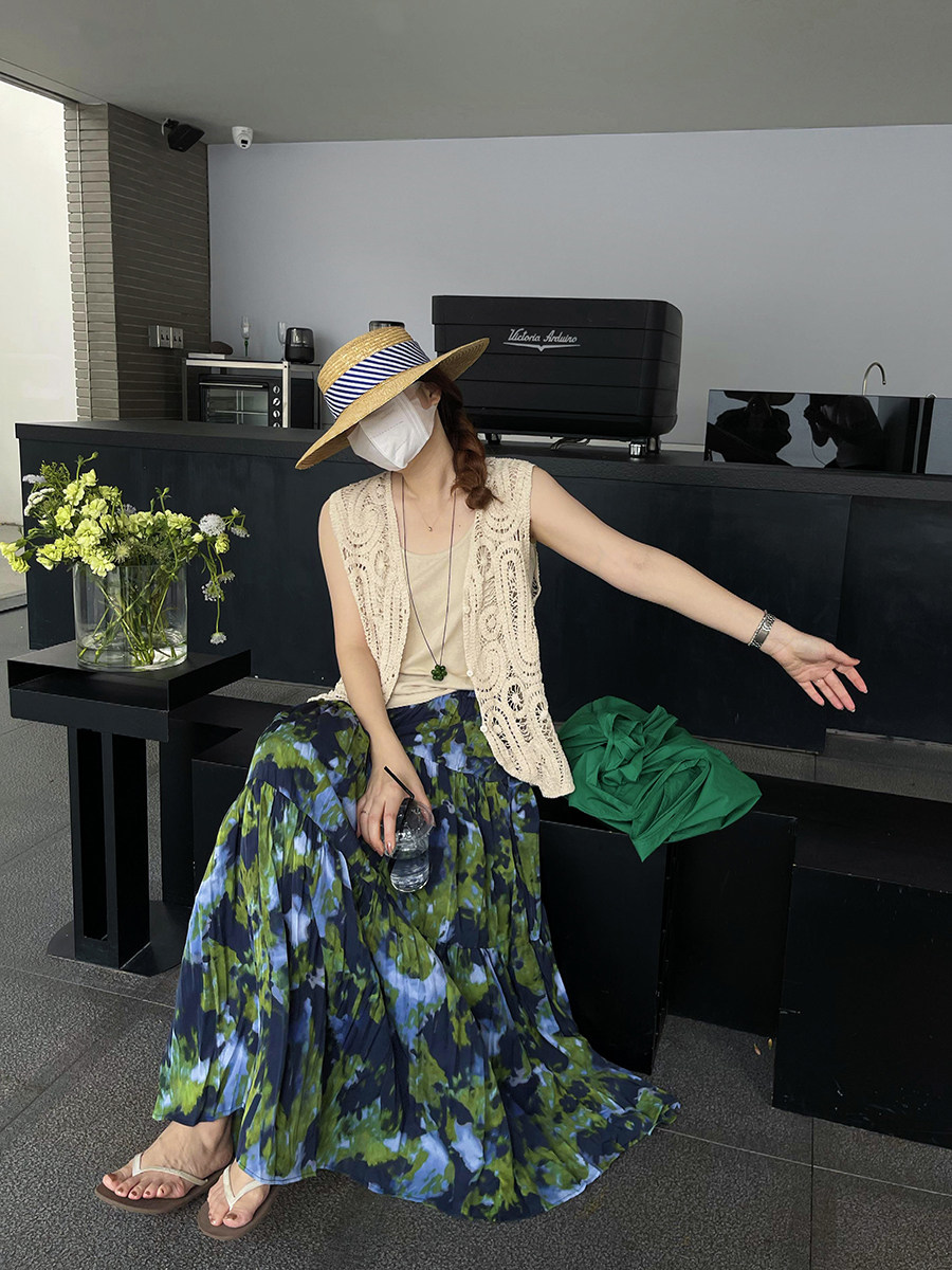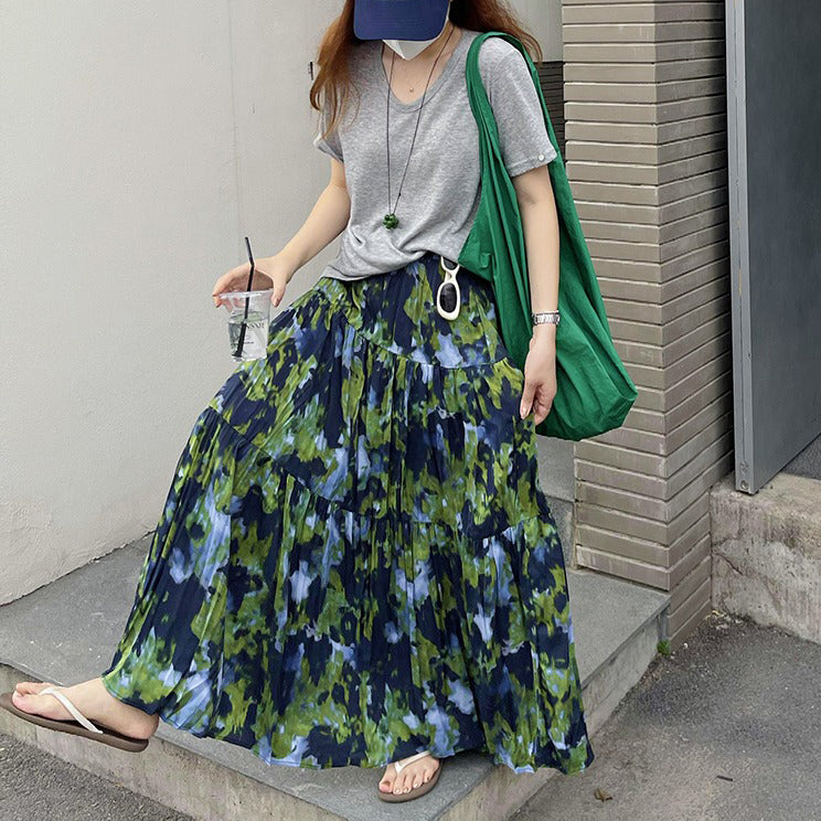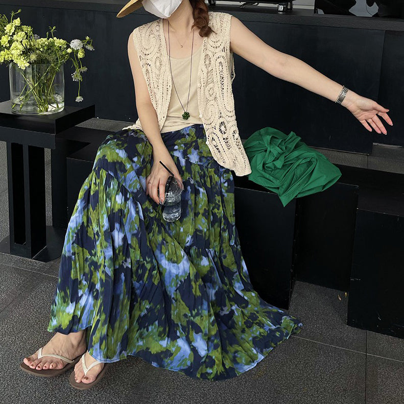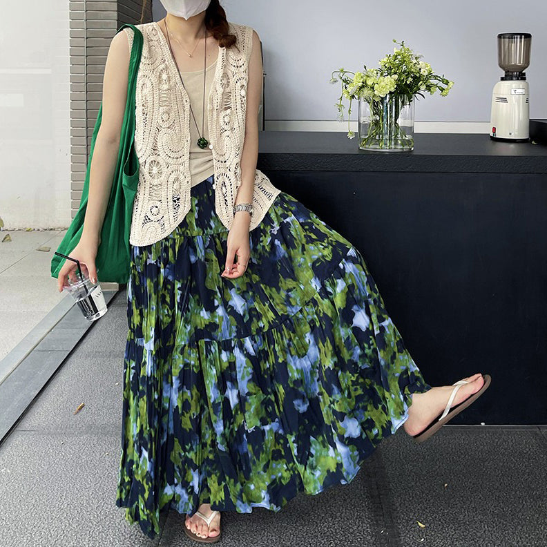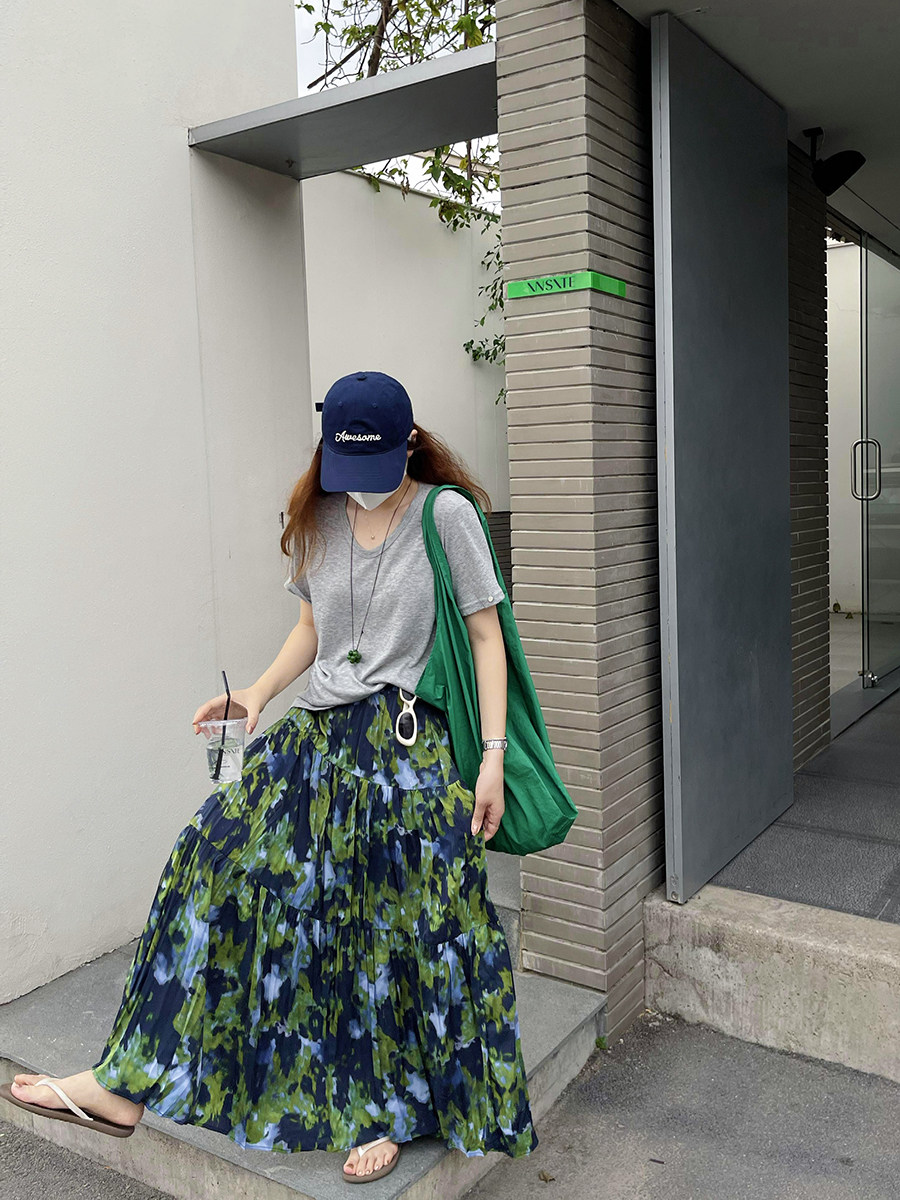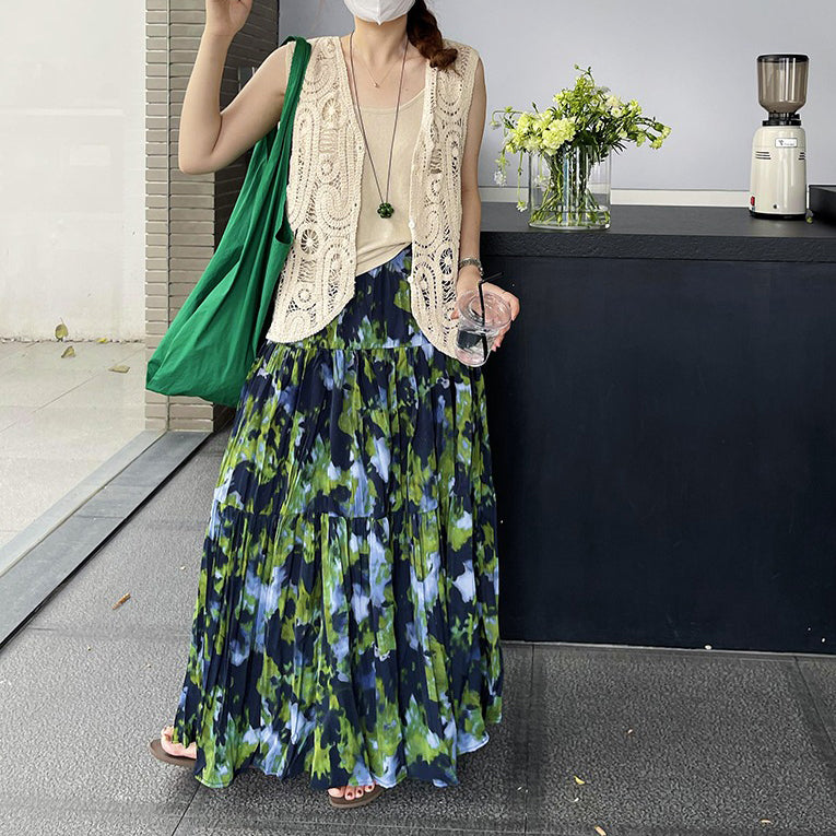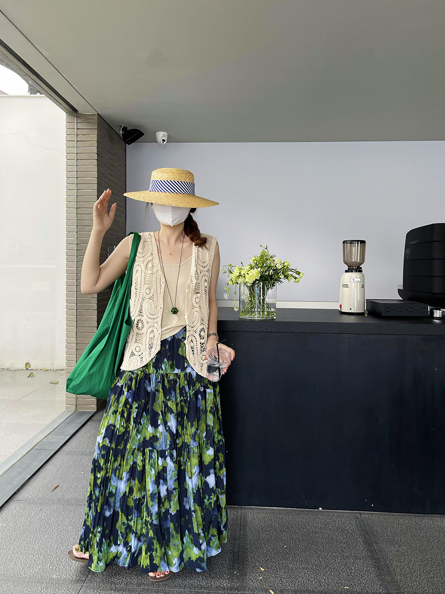 【ボトムス】夏新作 フレンチエレガンス 高腰スリム効果 レトロ花柄デザインスカート【SHシリーズ】