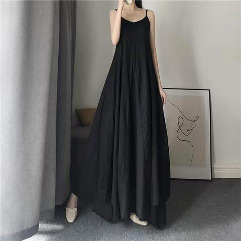 【ワンピース】夏新作 レトロ ゆったり細見え 無地 ノースリーブワンピース