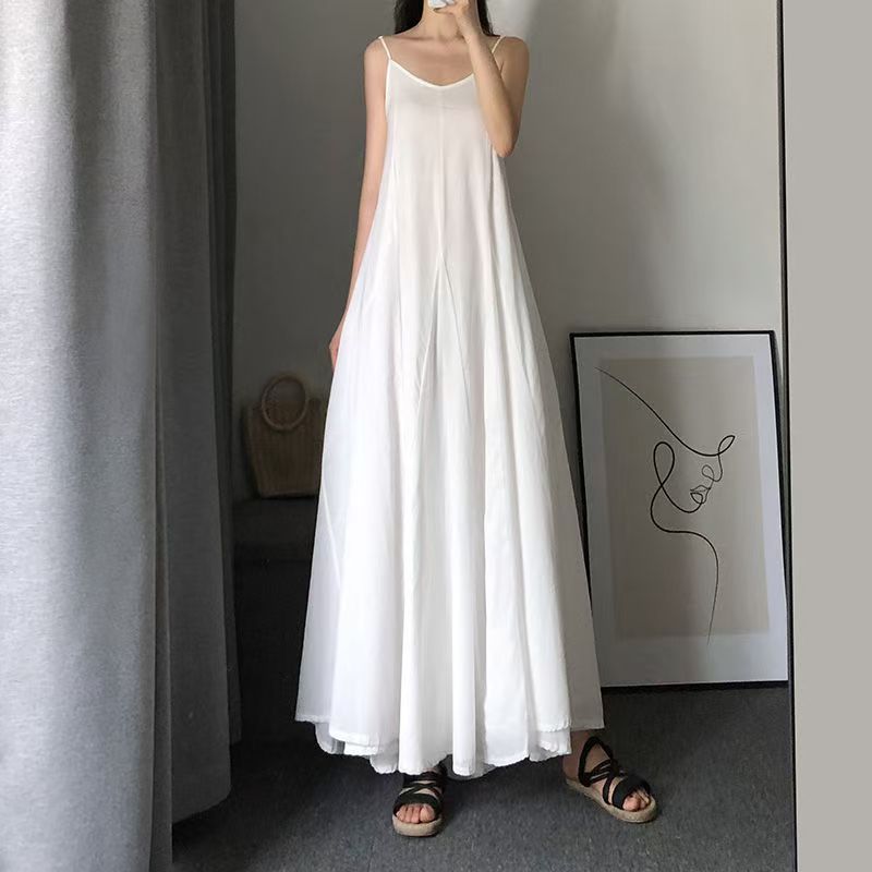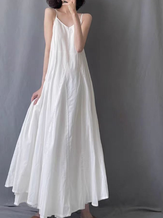 【商品名】【ワンピース】夏新作 レトロ ゆったり細見え 無地 ノースリーブワンピース