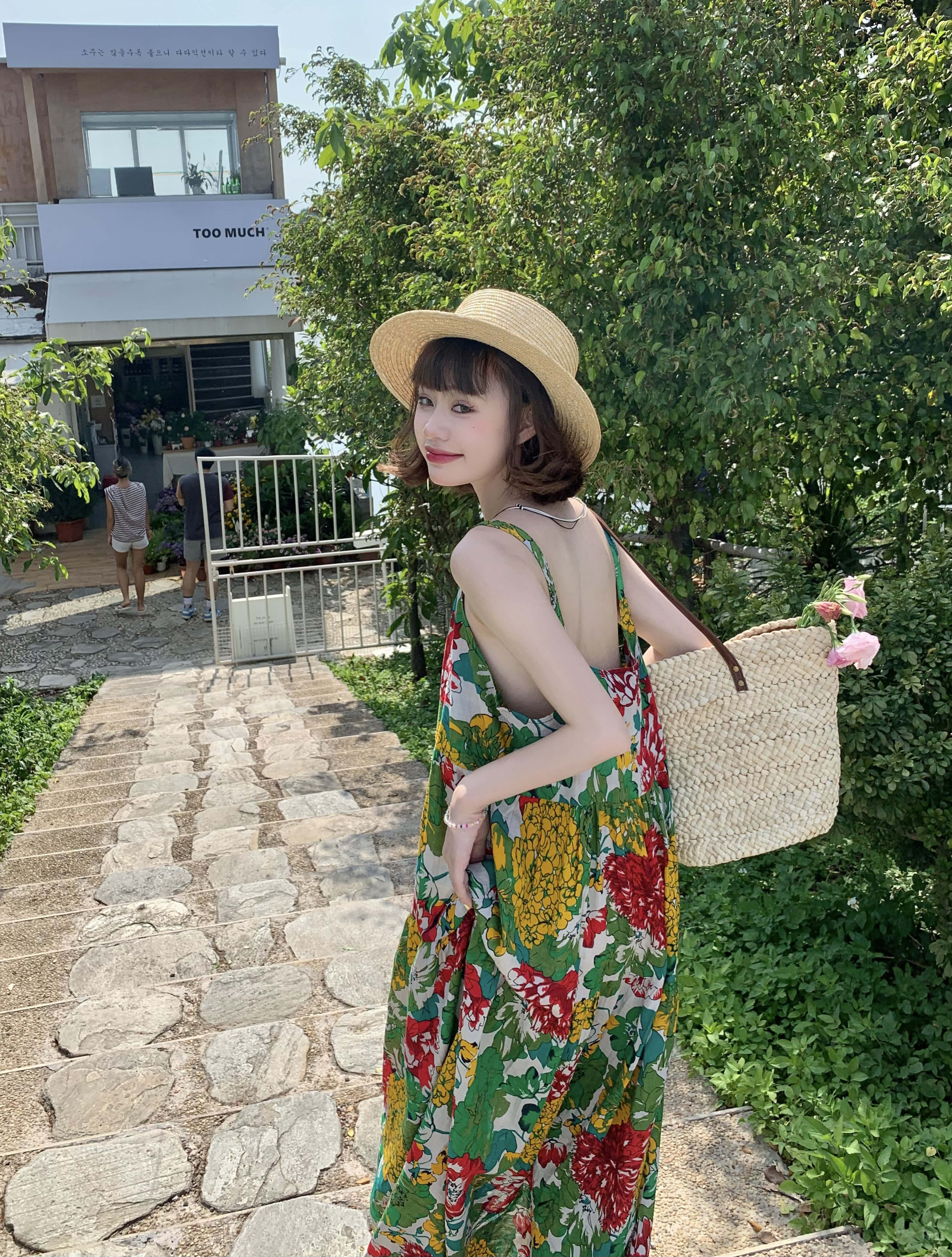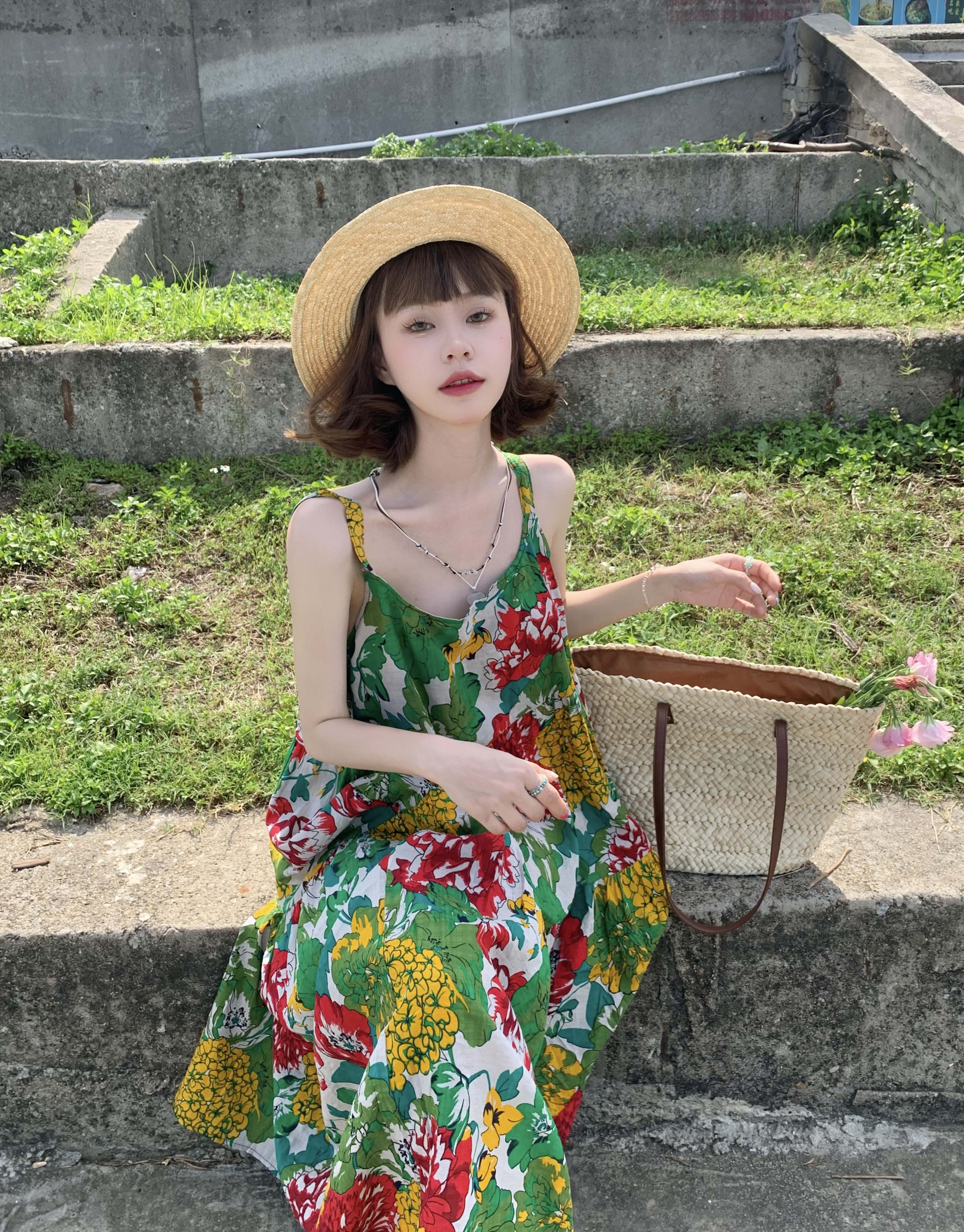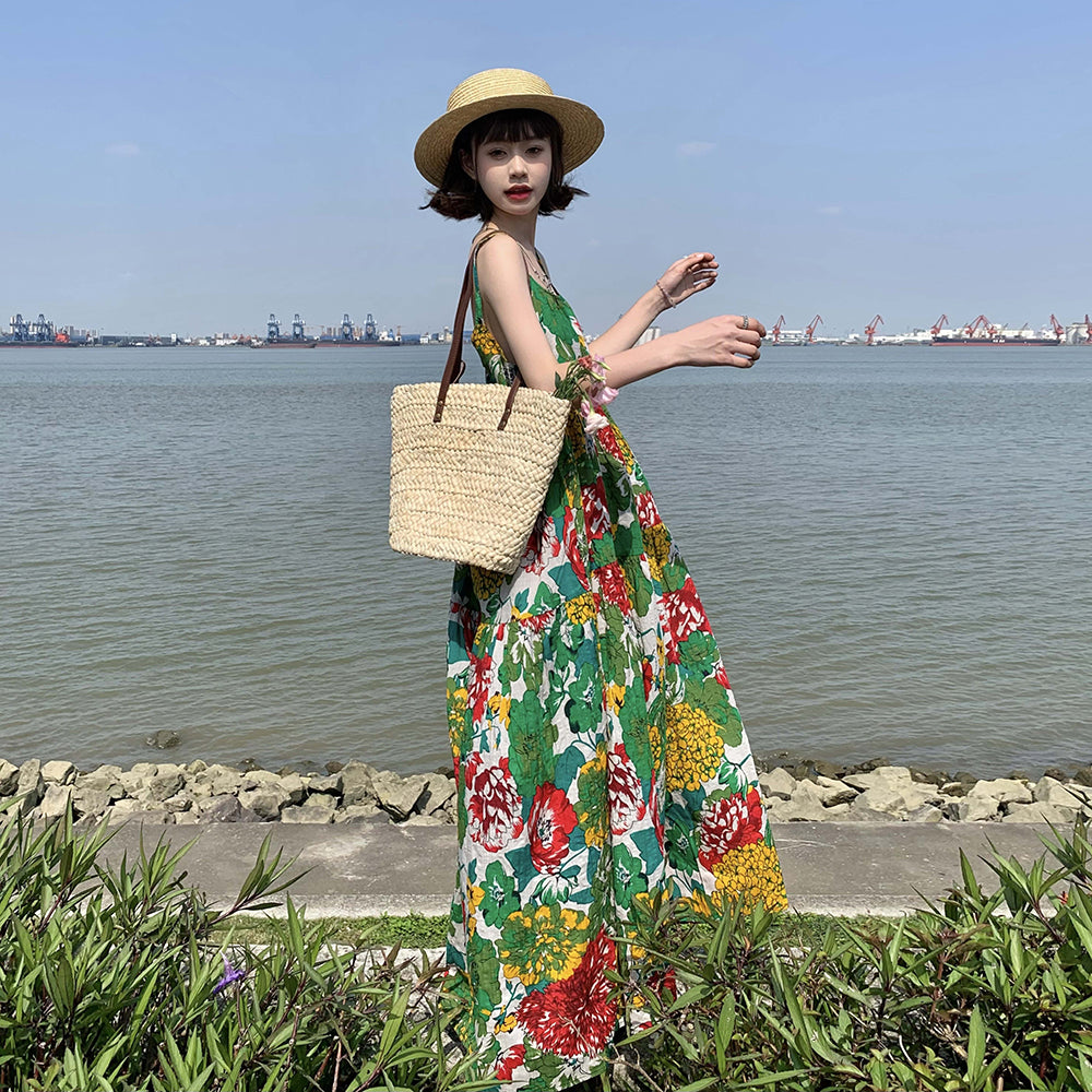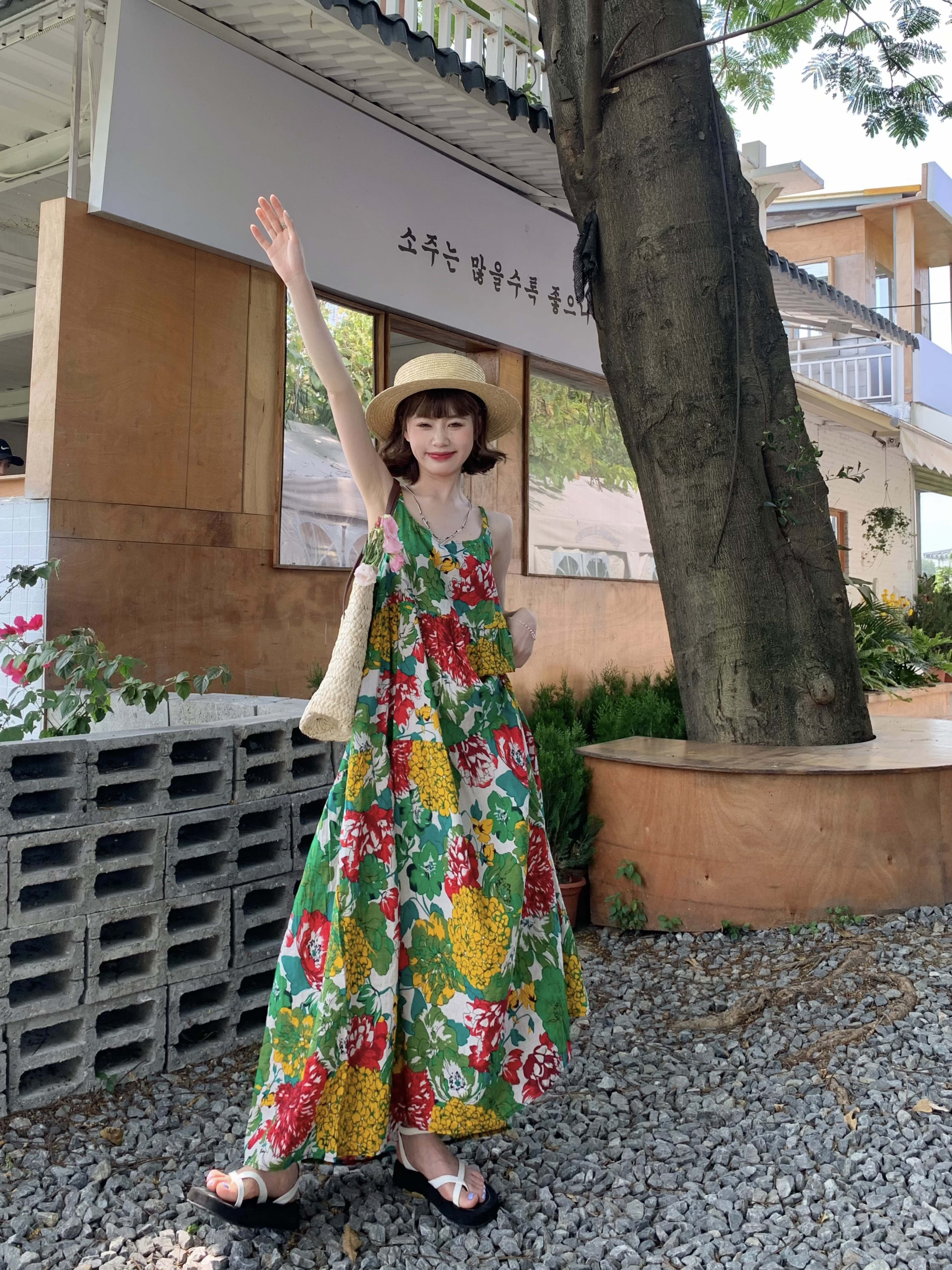 【商品名】【ワンピース】 ヴィンテージ風 ゆったり カジュアル 夏 スリム効果 ロングノースリーブワンピース【SHシリーズ】