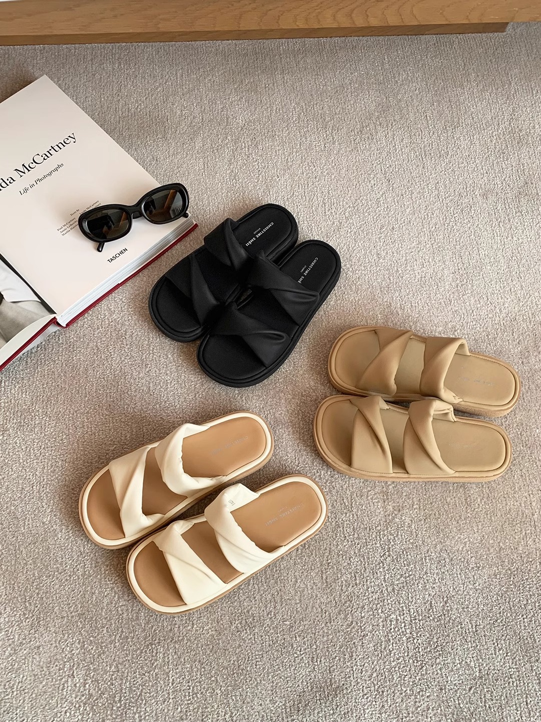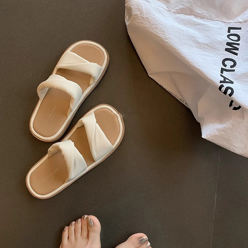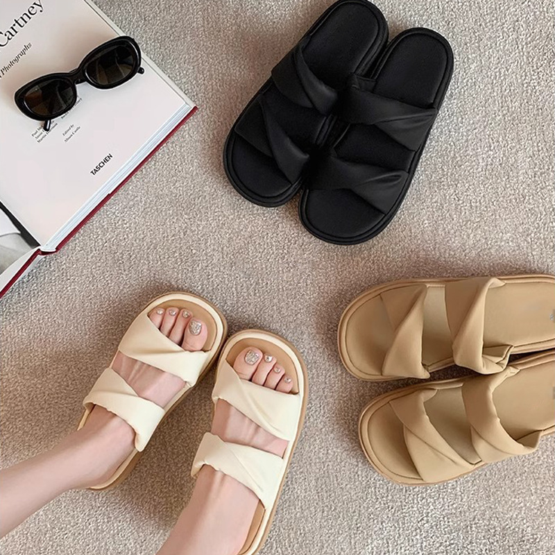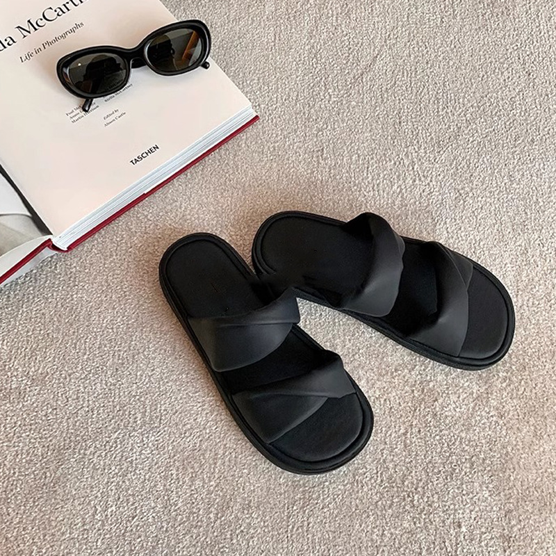 【シューズ】夏新作 ツイストワンストラップ 厚底カジュアルサンダル レディース 外履き対応