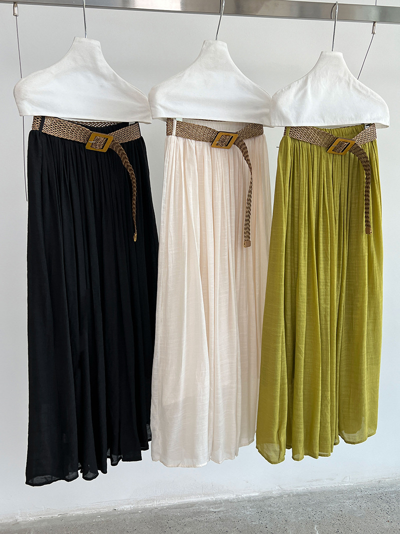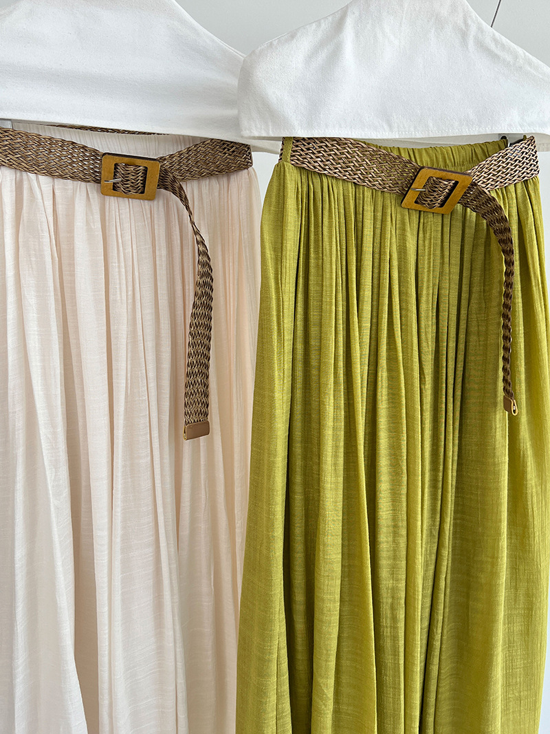 ベルト付き!【ボトムス】夏新作 リゾート感たっぷり 柔らか素材 無地 Aライン フレアスカート 【SNシリーズ】