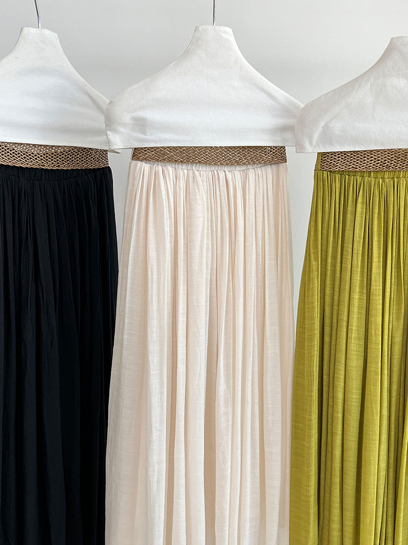 【商品名】ベルト付き!【ボトムス】夏新作 リゾート感たっぷり 柔らか素材 無地 Aライン フレアスカート 【SNシリーズ】