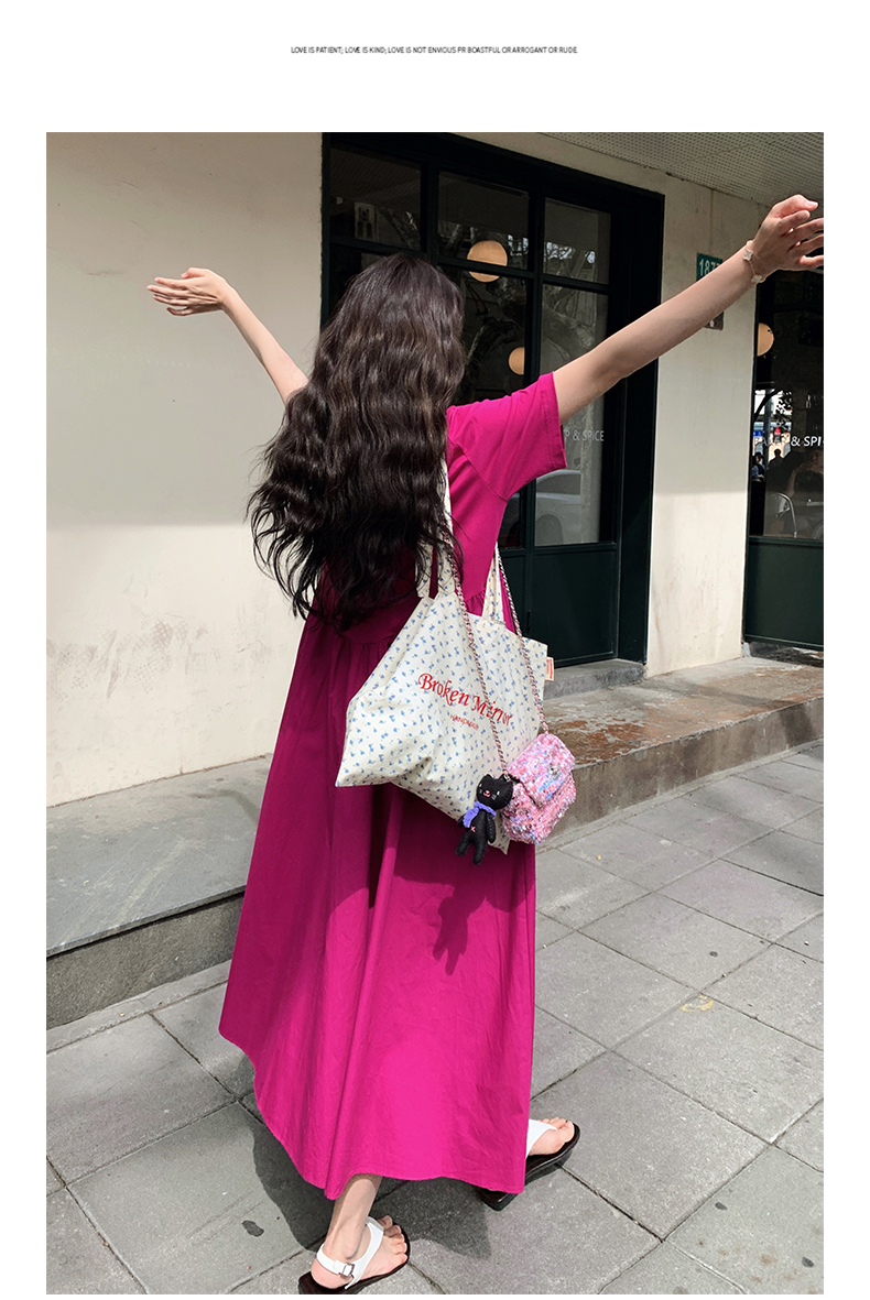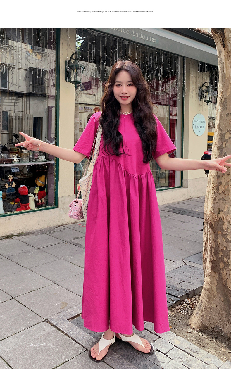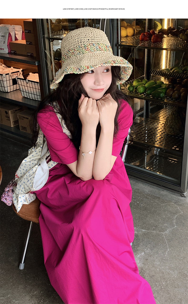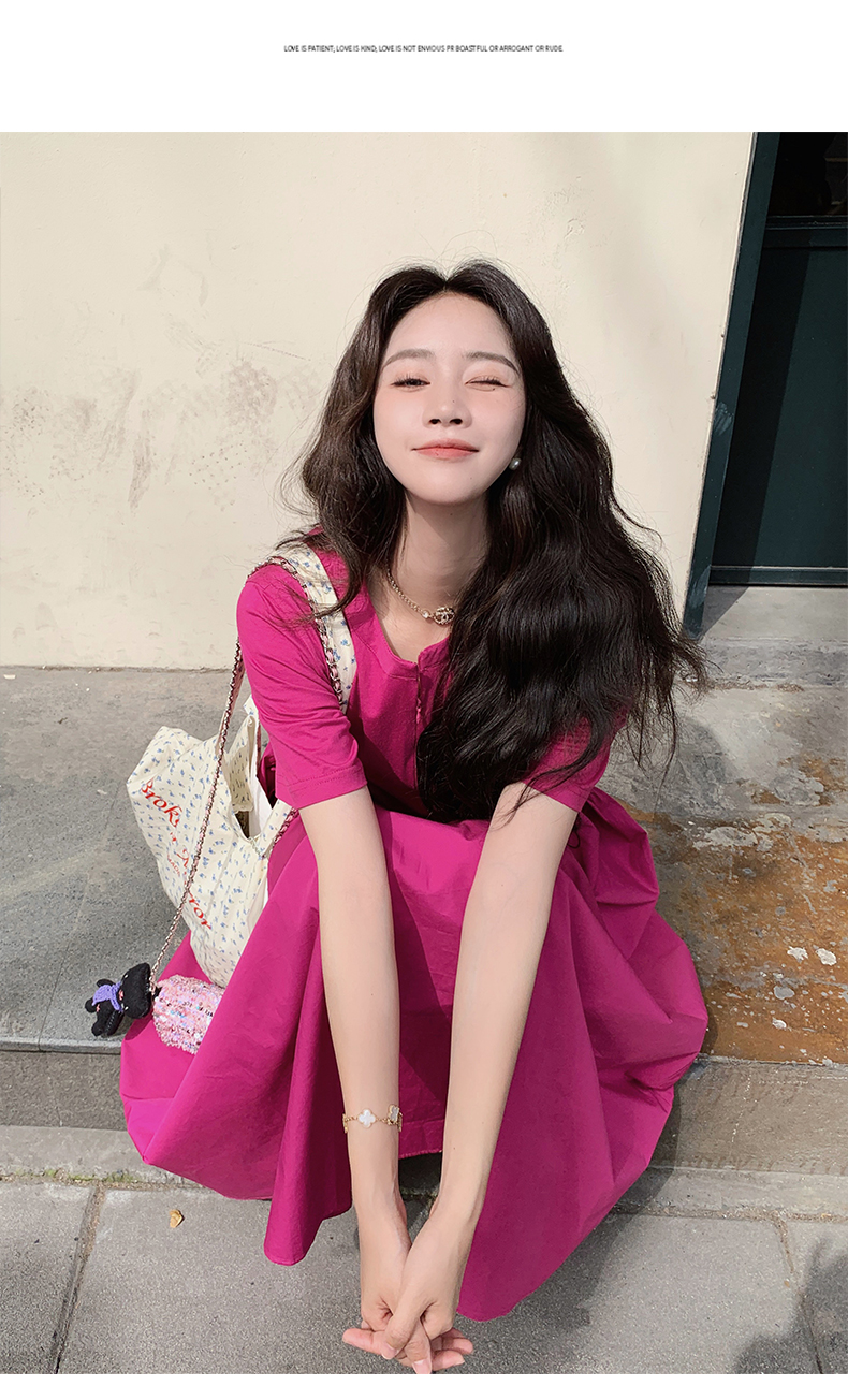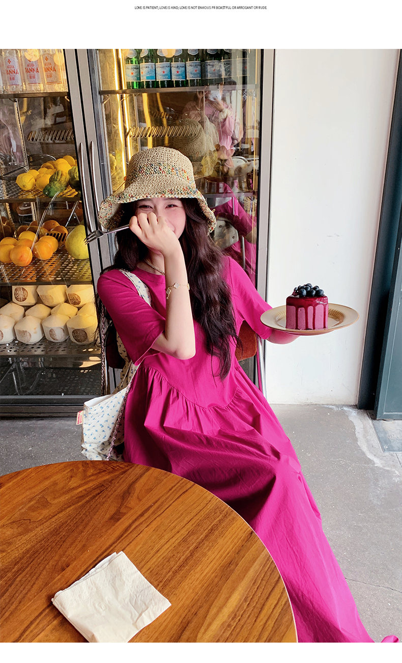 【ワンピース】魅力爆発 ドラゴンフルーツカラー切り替え 半袖ワンピース 若見え おしゃれ感満点