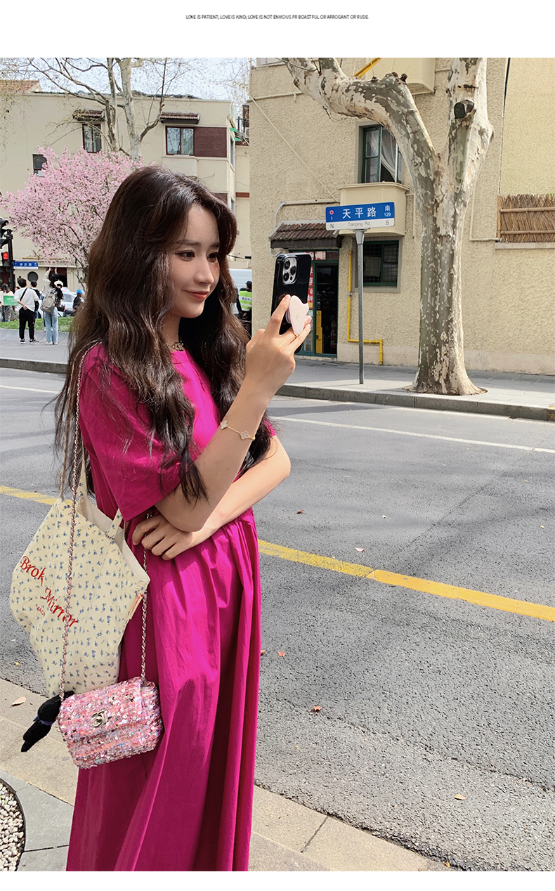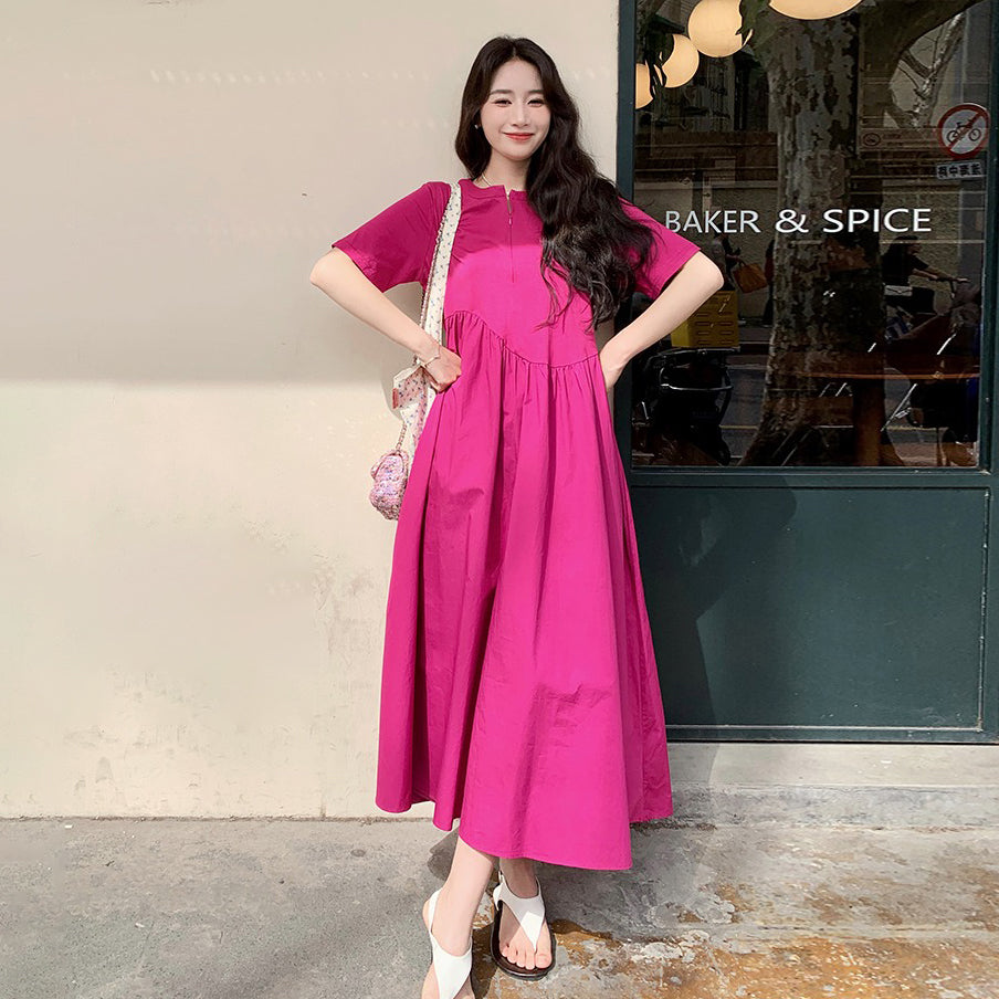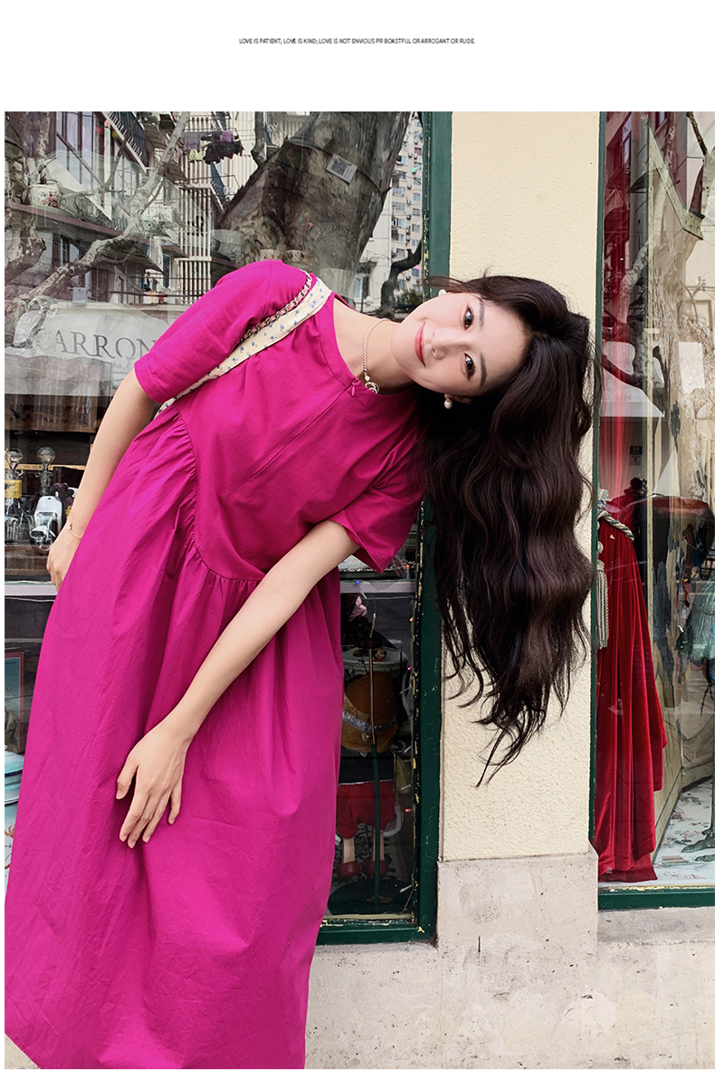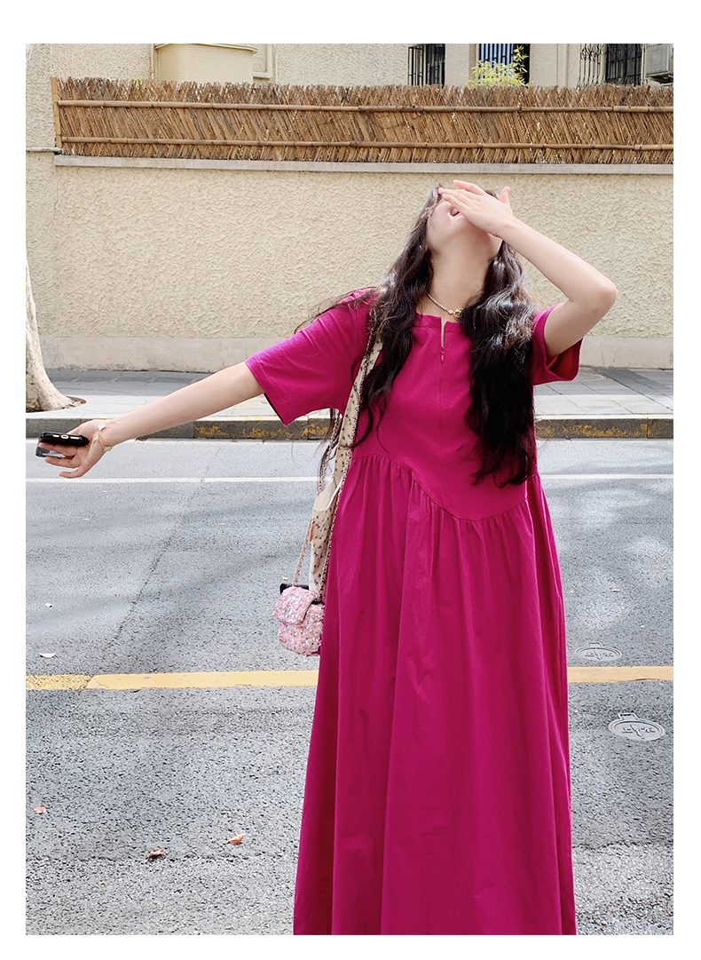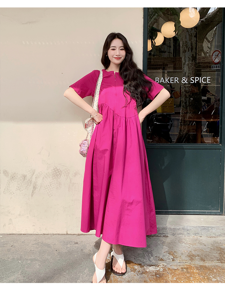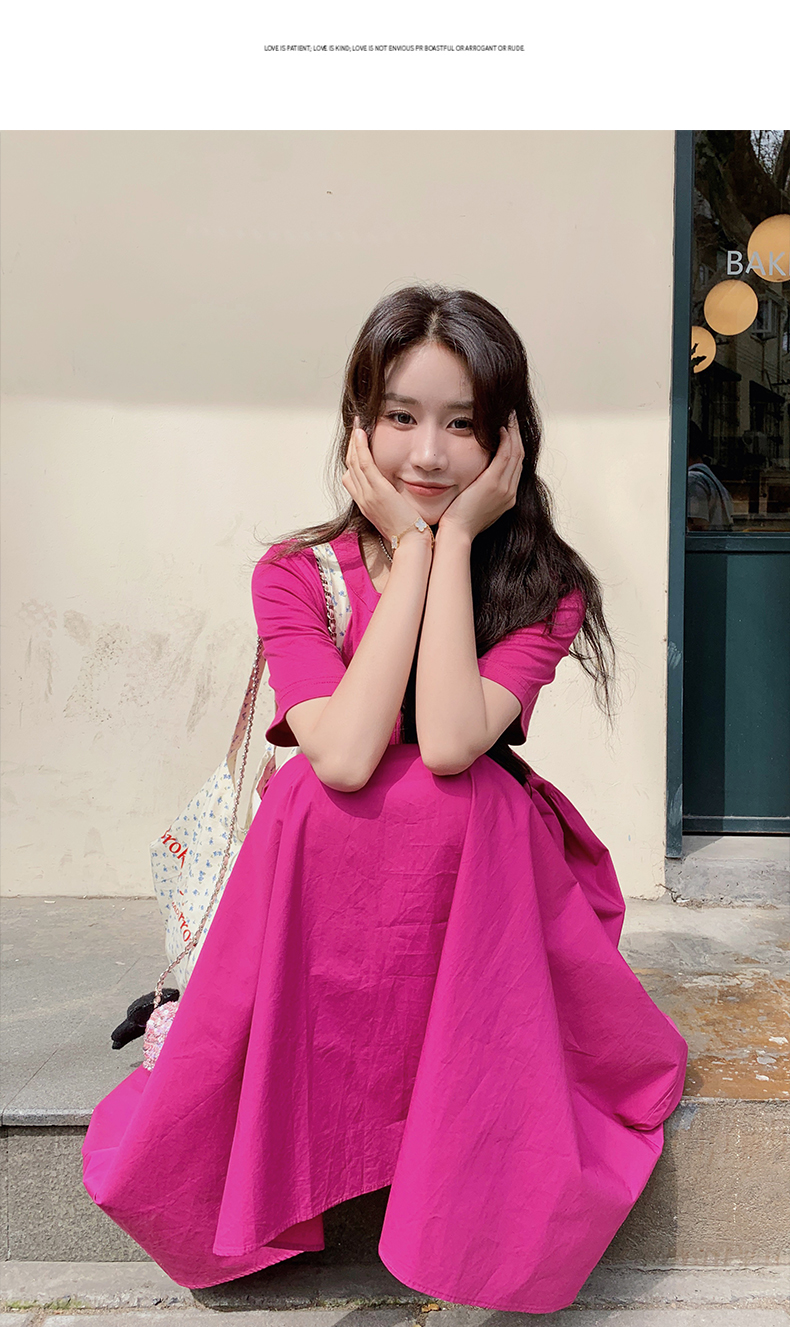 【ワンピース】魅力爆発 ドラゴンフルーツカラー切り替え 半袖ワンピース 若見え おしゃれ感満点