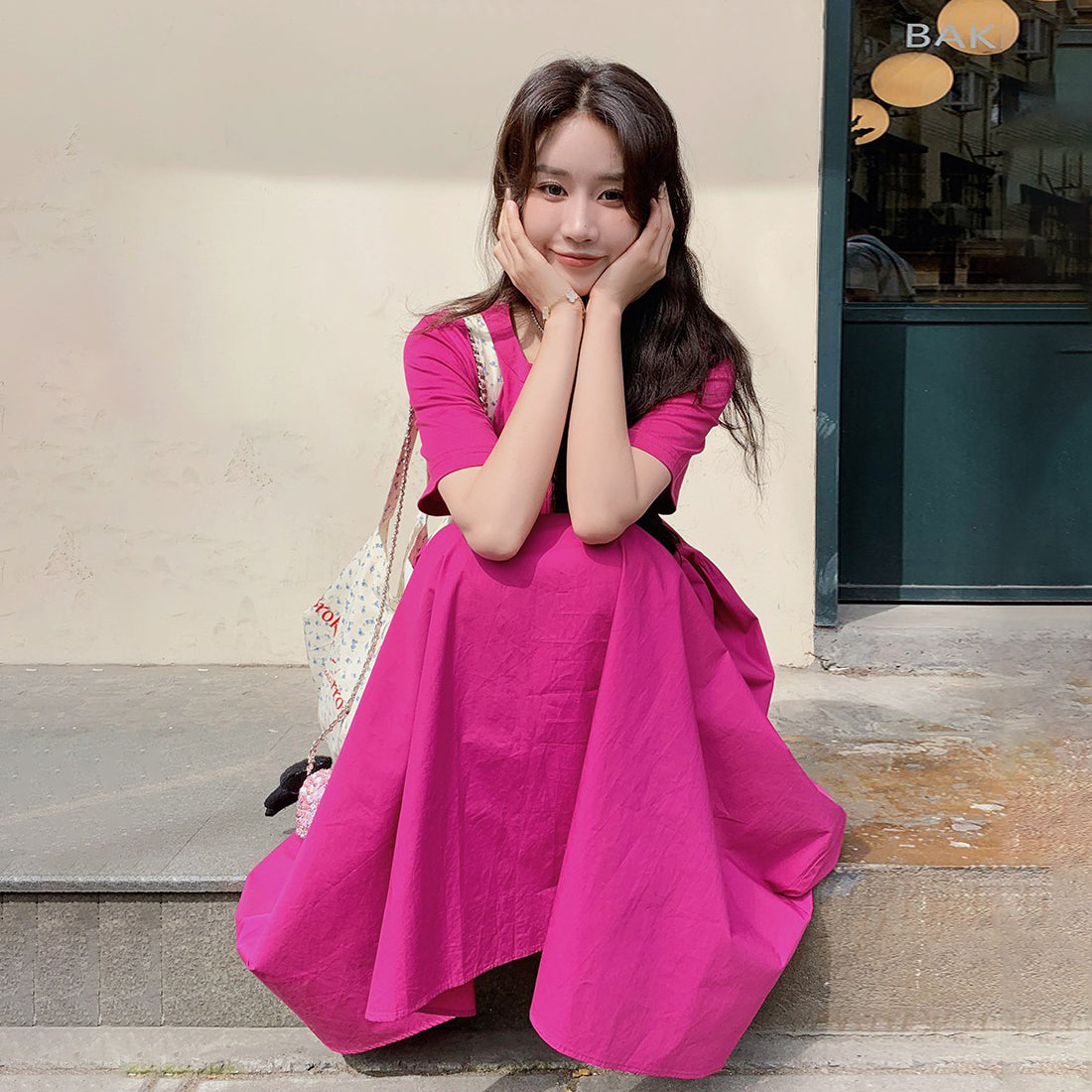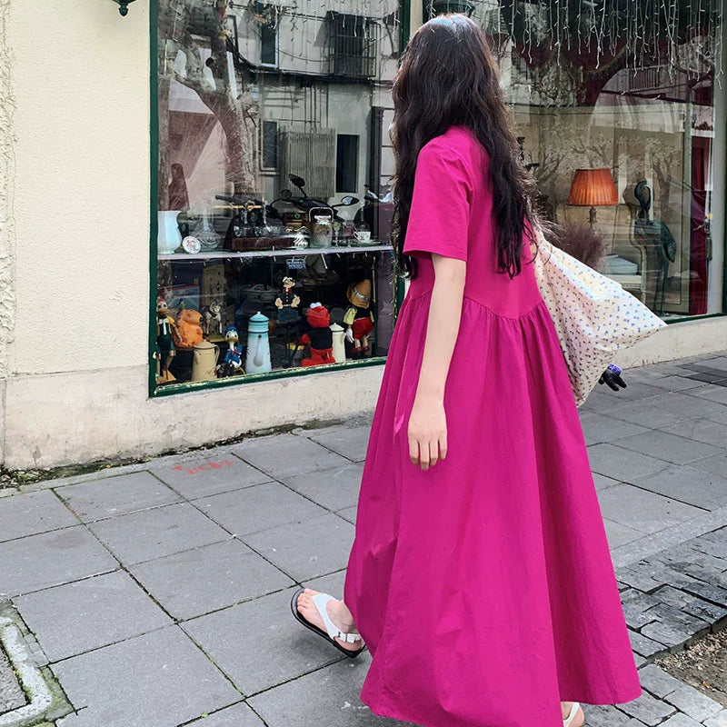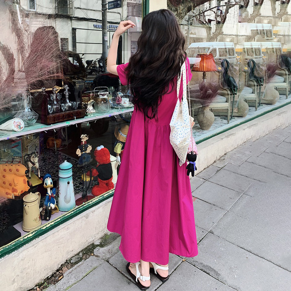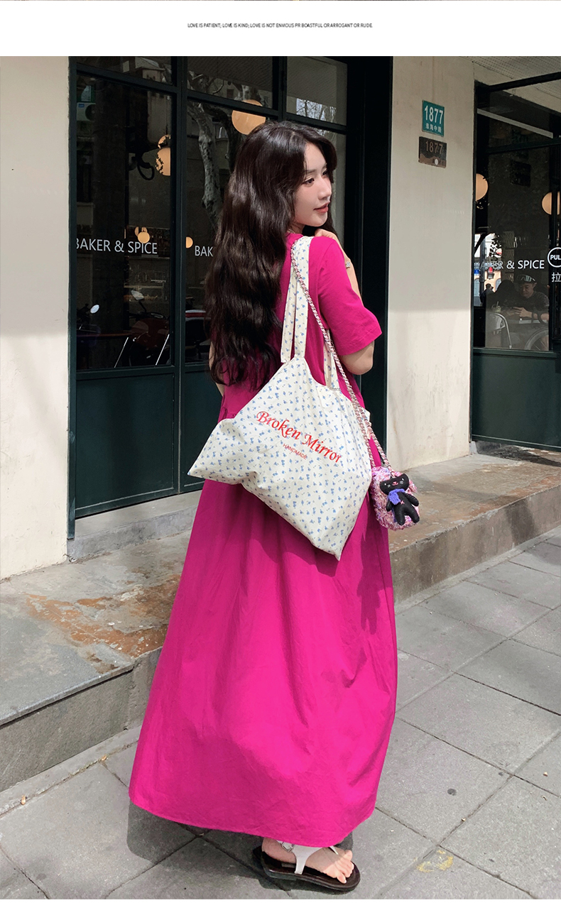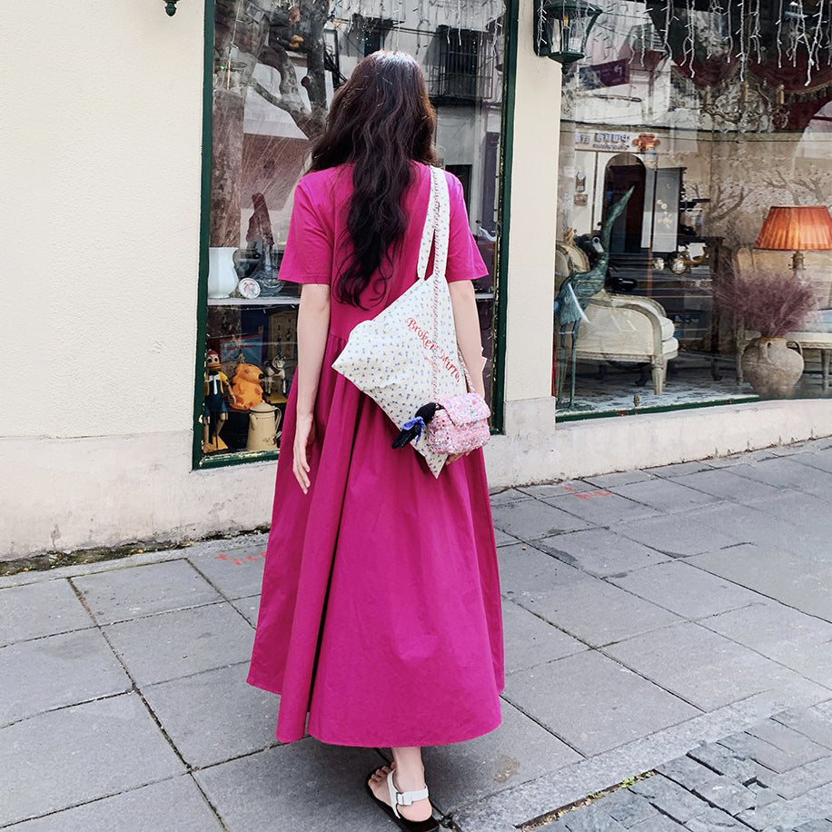 【ワンピース】魅力爆発 ドラゴンフルーツカラー切り替え 半袖ワンピース 若見え おしゃれ感満点