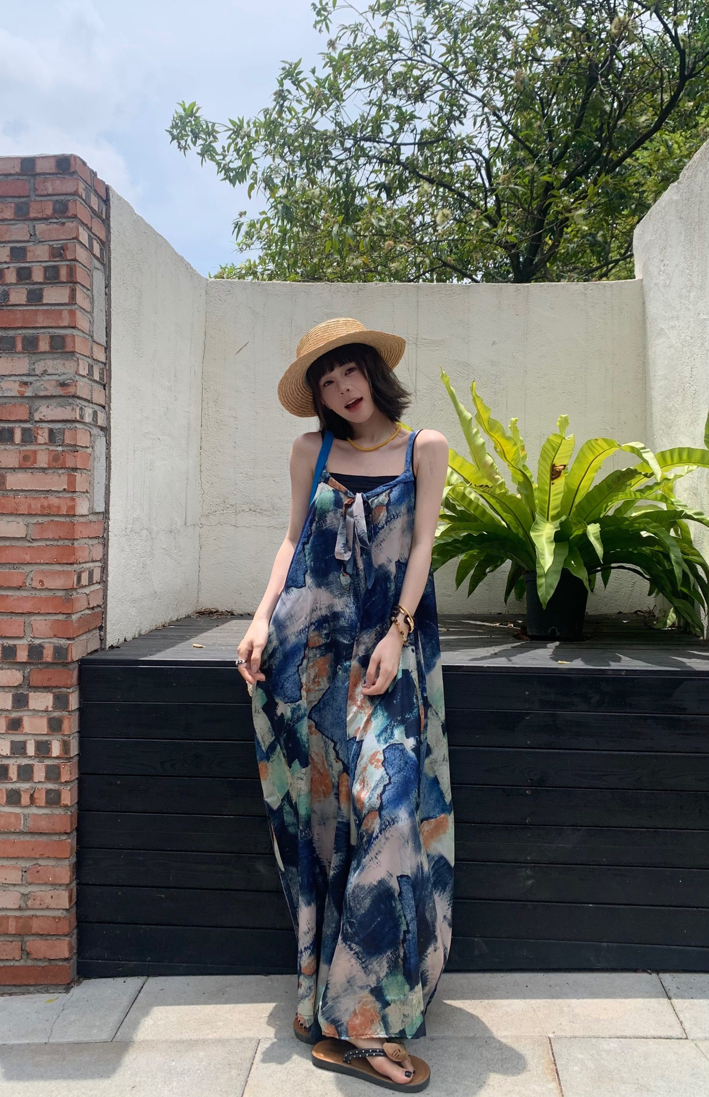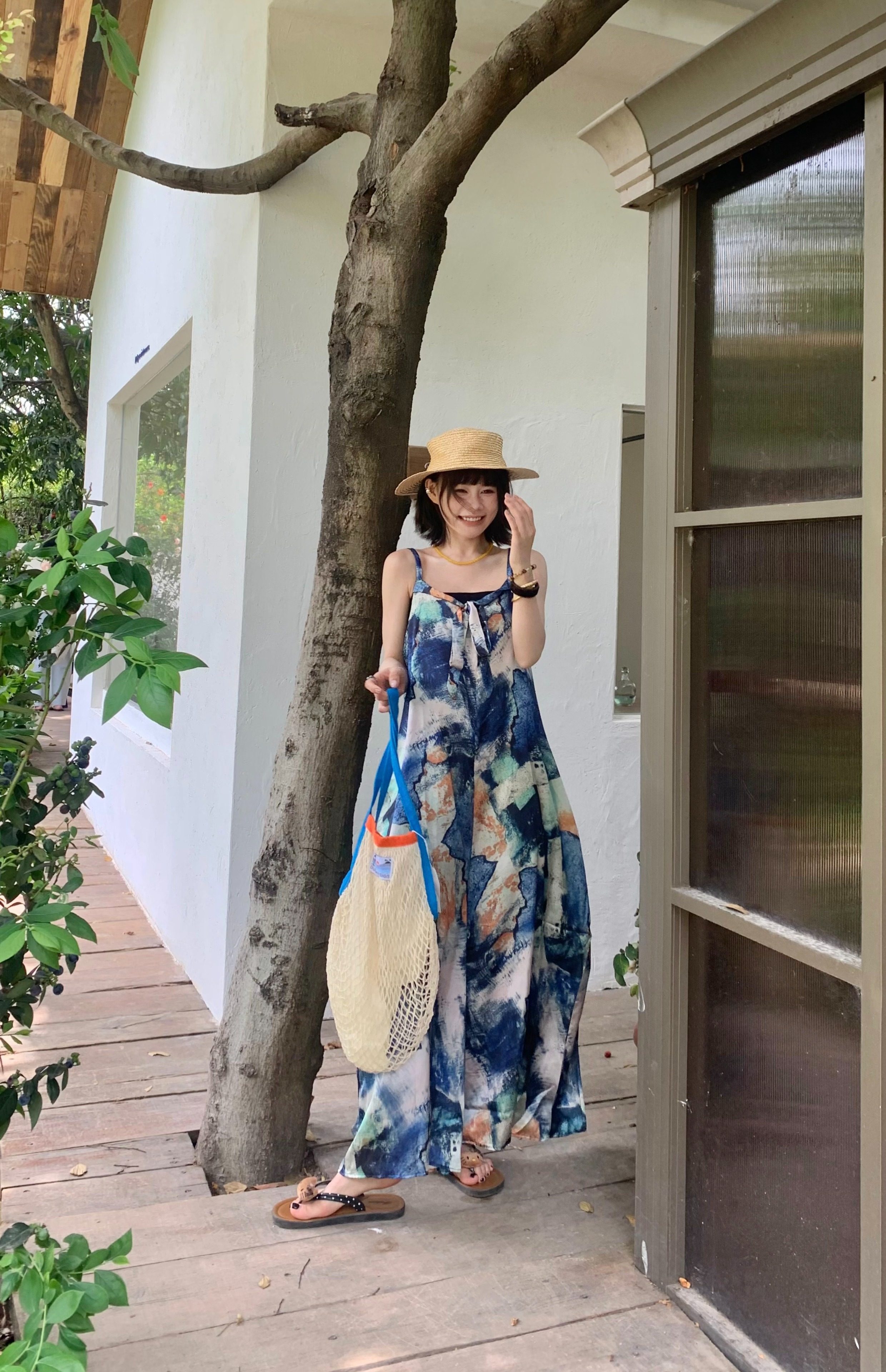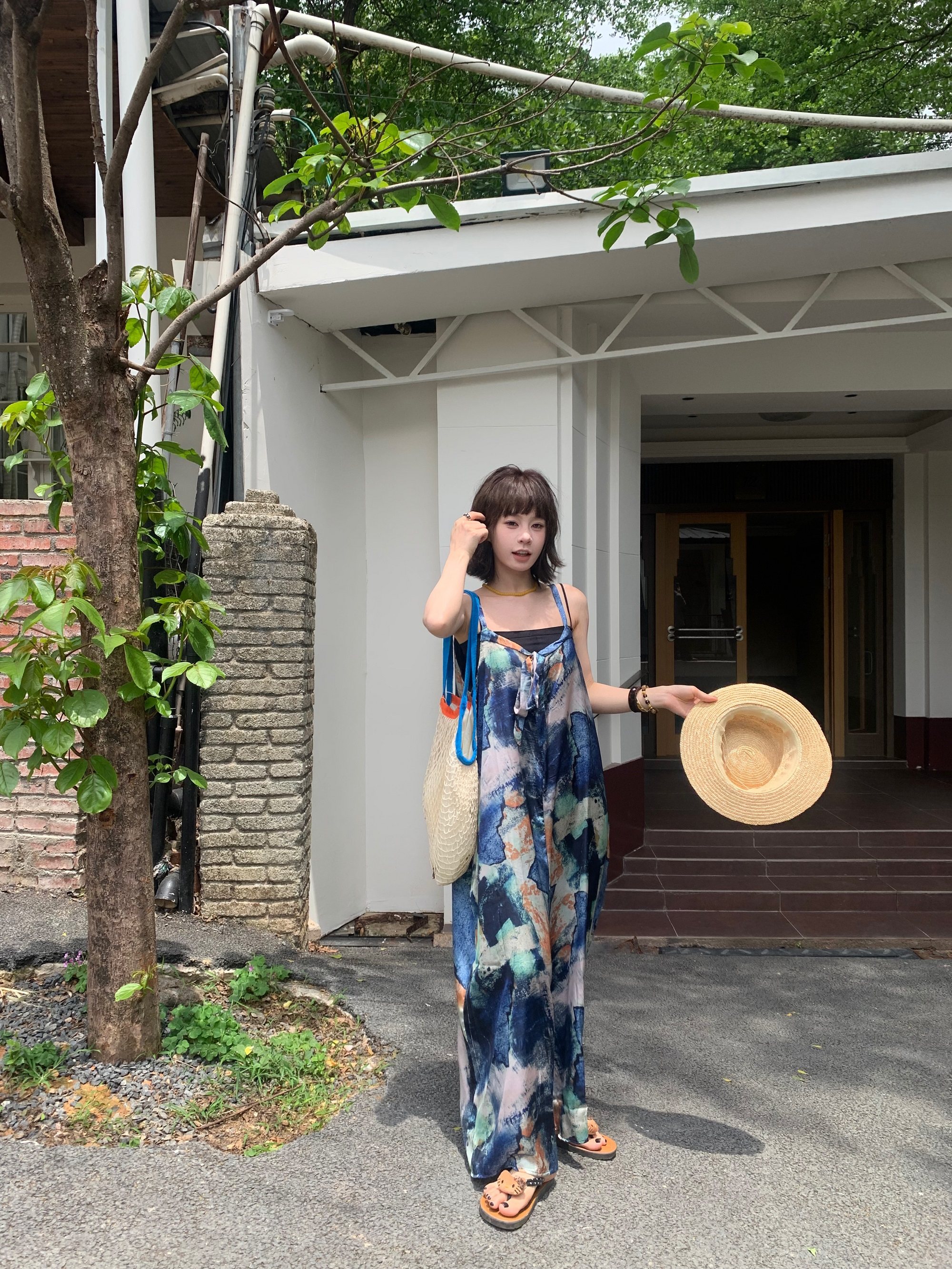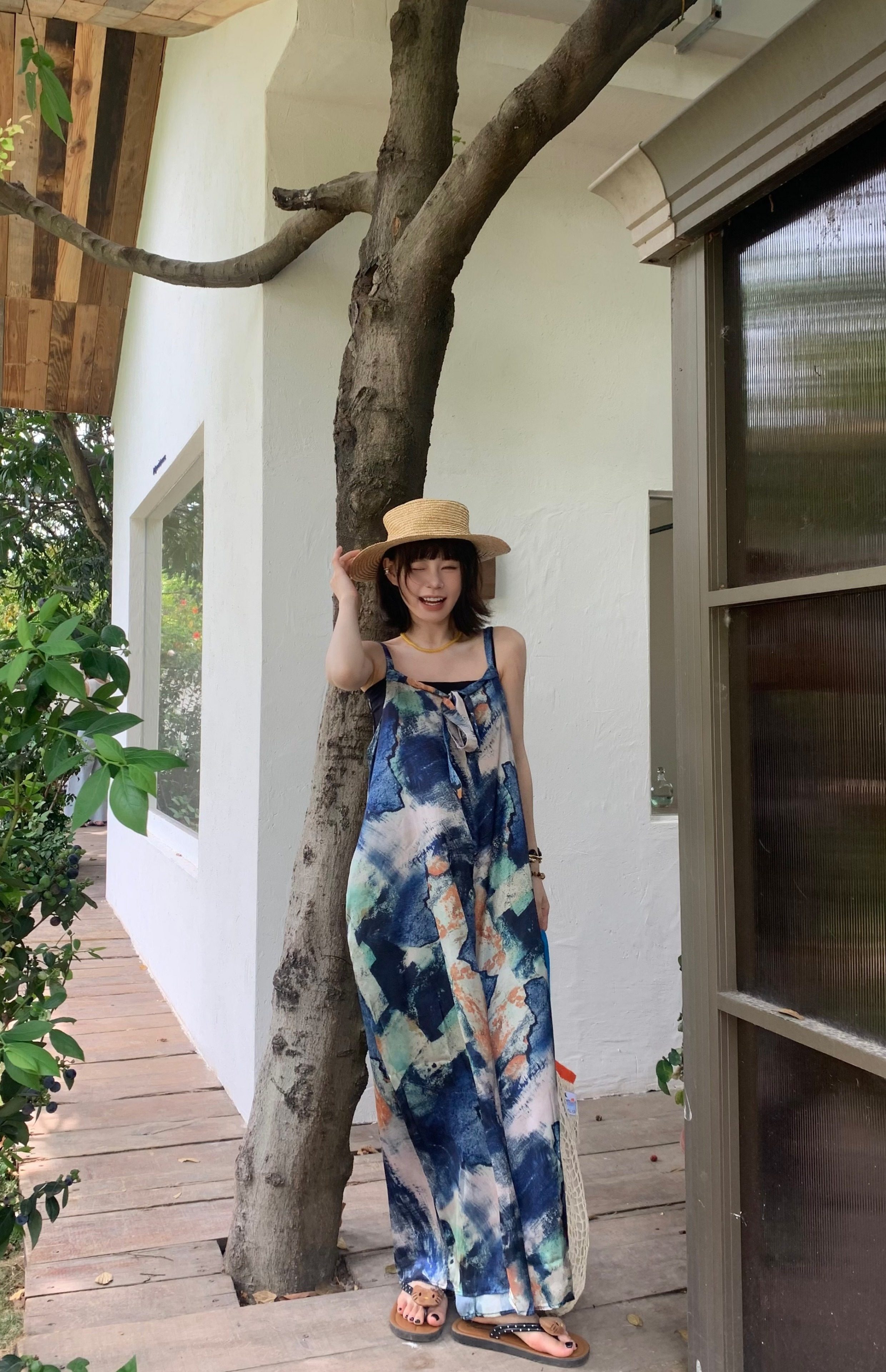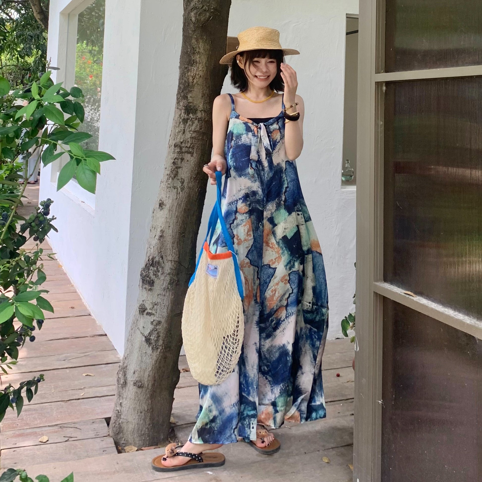 📢話題のアイテム【ボトムス】夏新作 気品インディゴアート染め ゆったりワイドレッグ オールインワン【SHシリーズ】