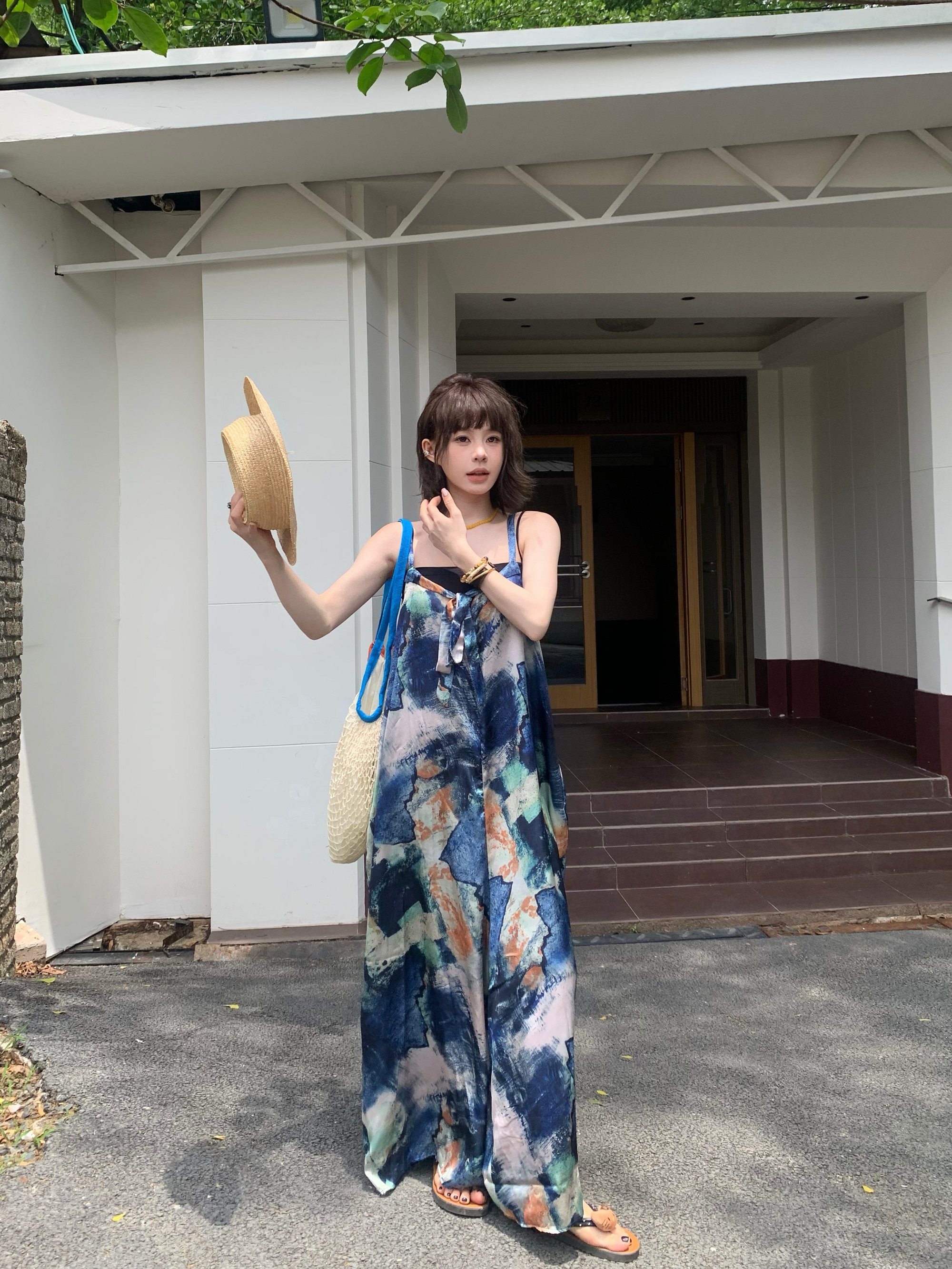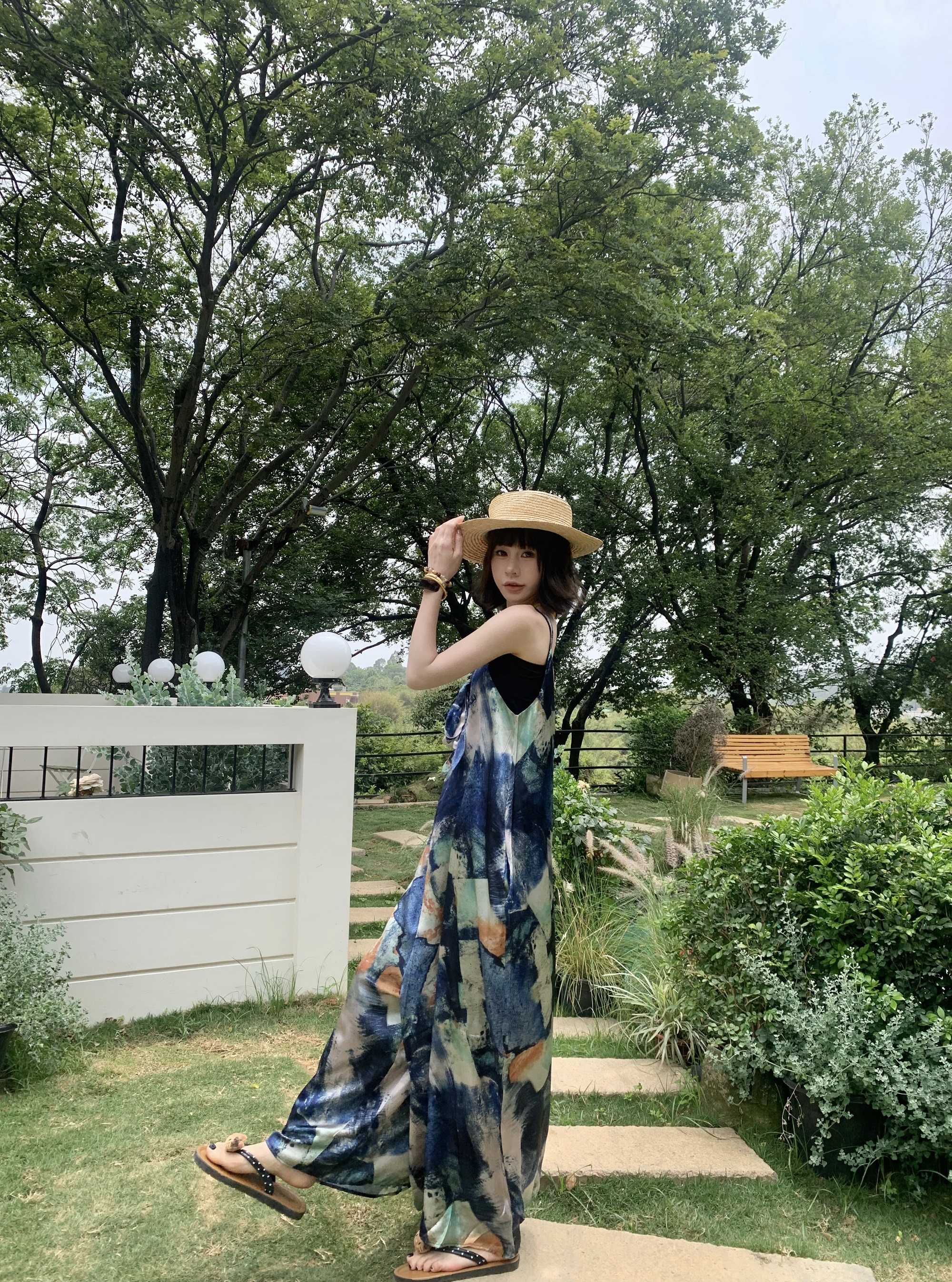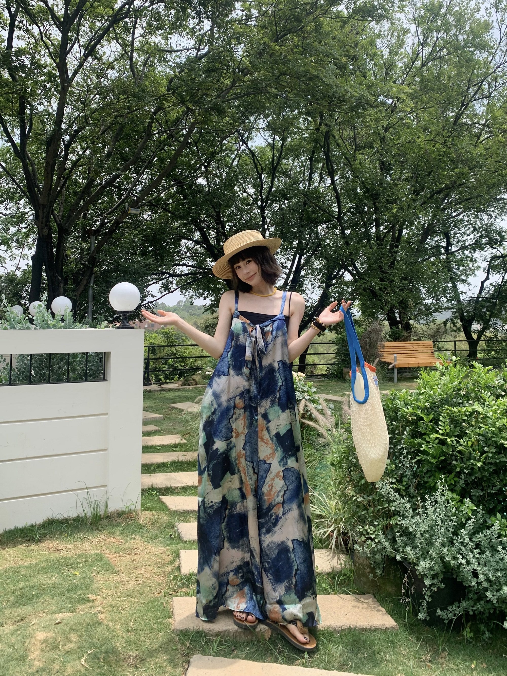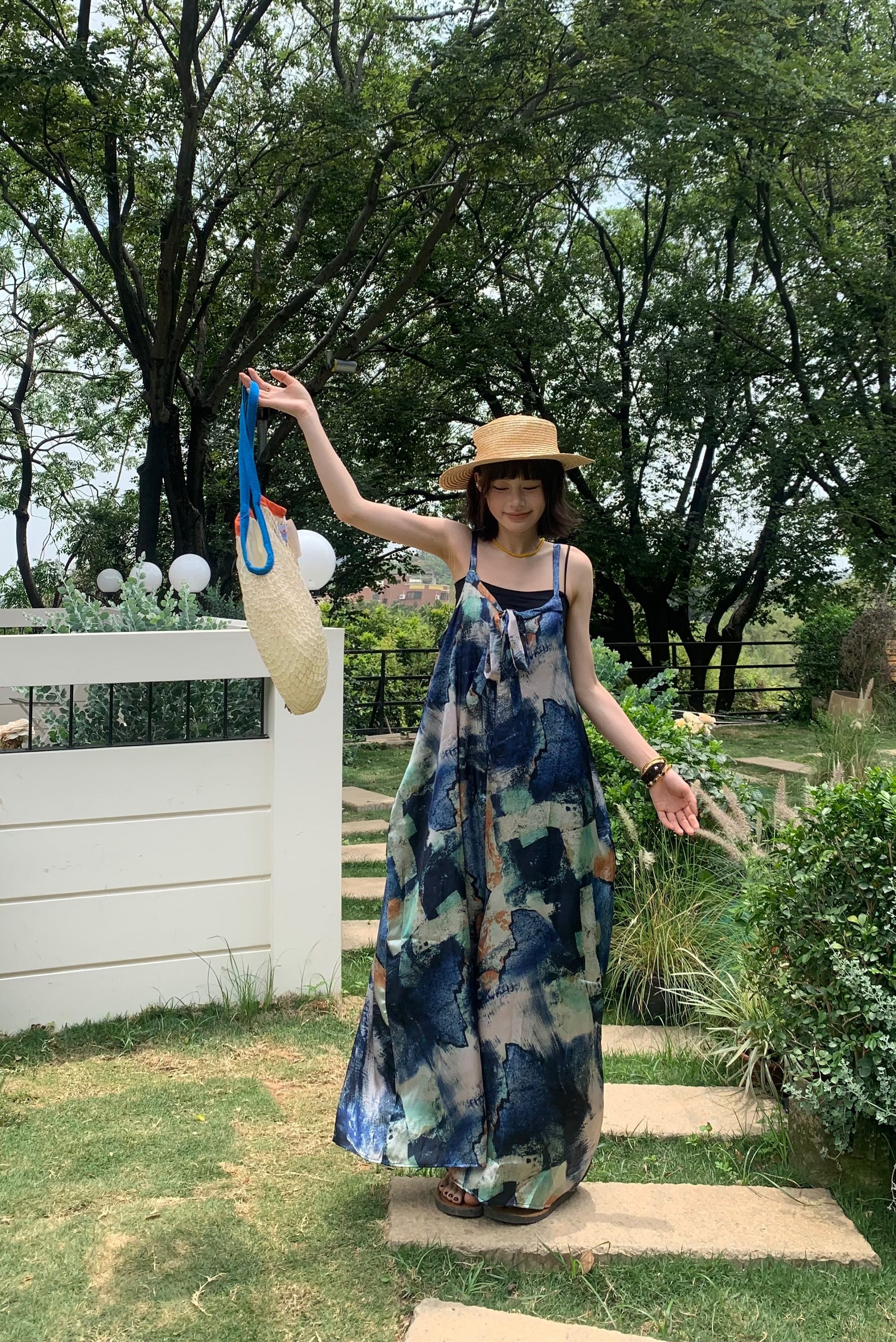 📢話題のアイテム【ボトムス】夏新作 気品インディゴアート染め ゆったりワイドレッグ オールインワン【SHシリーズ】