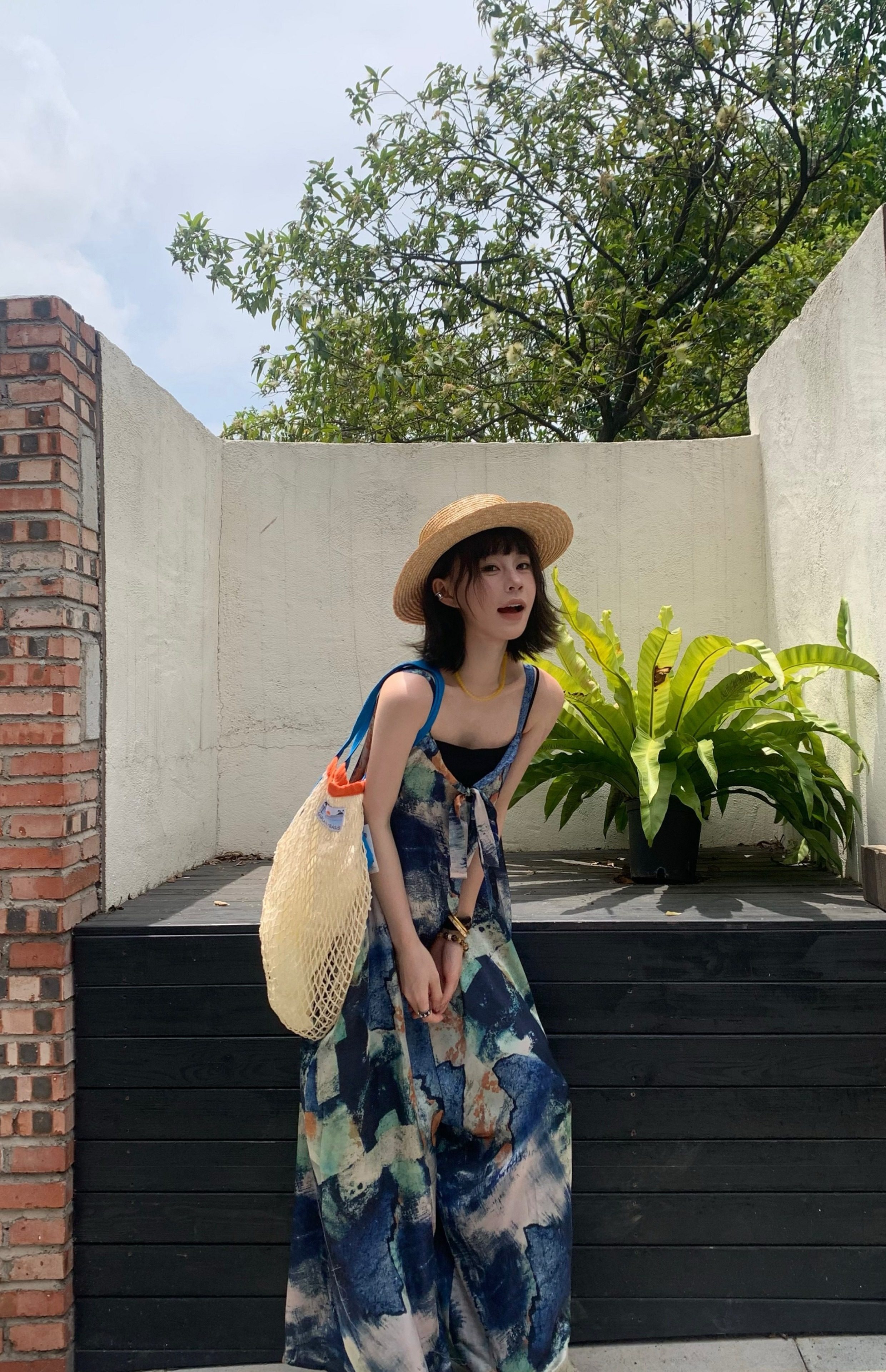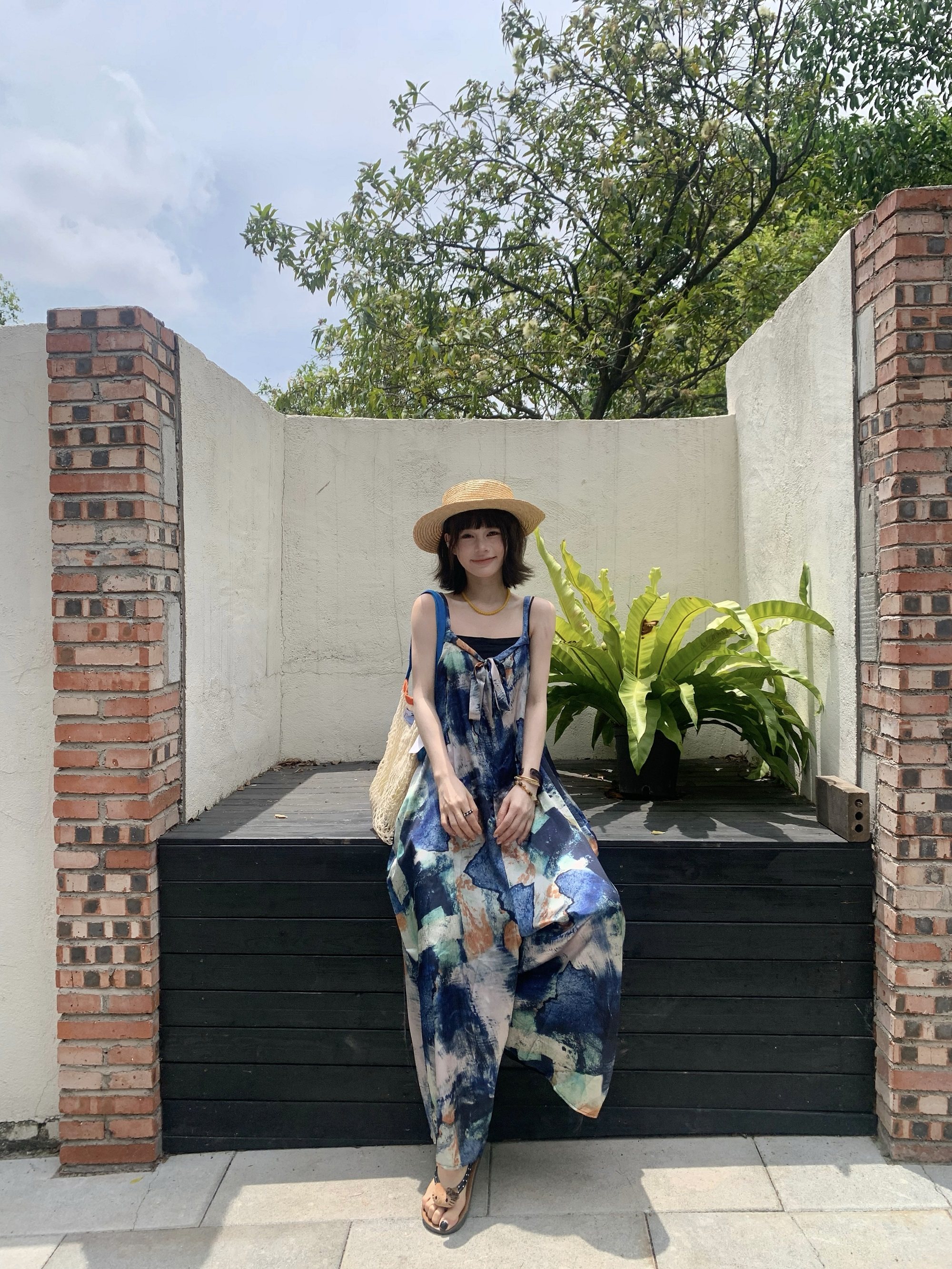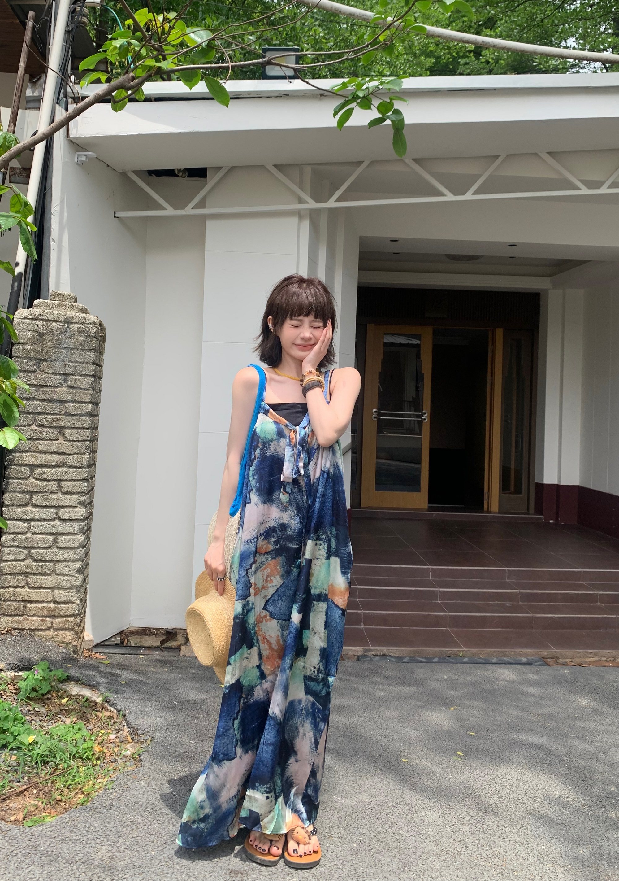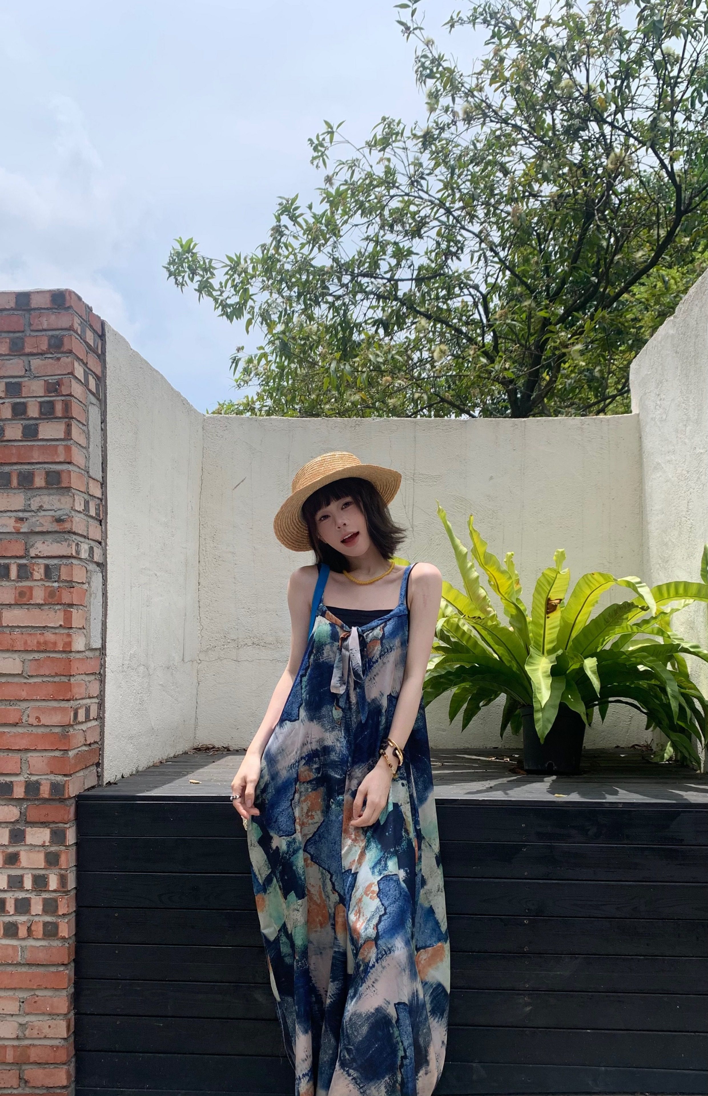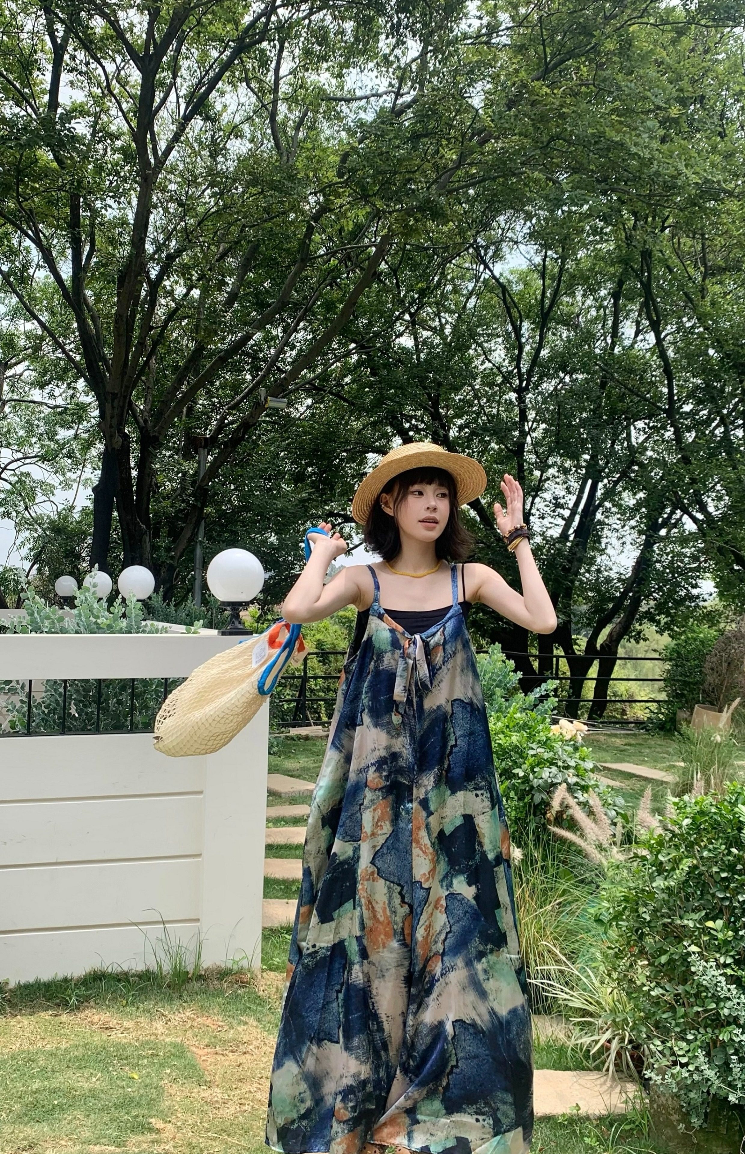 📢話題のアイテム【ボトムス】夏新作 気品インディゴアート染め ゆったりワイドレッグ オールインワン【SHシリーズ】