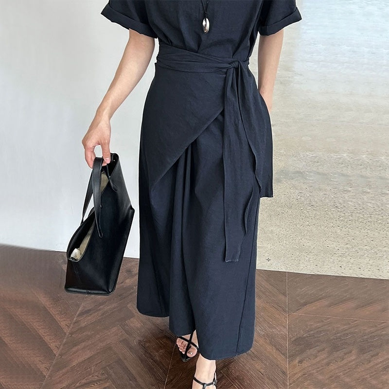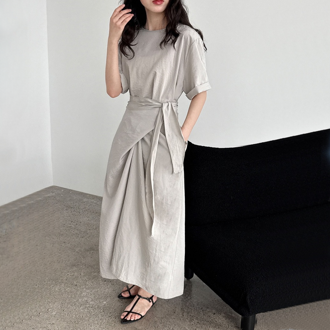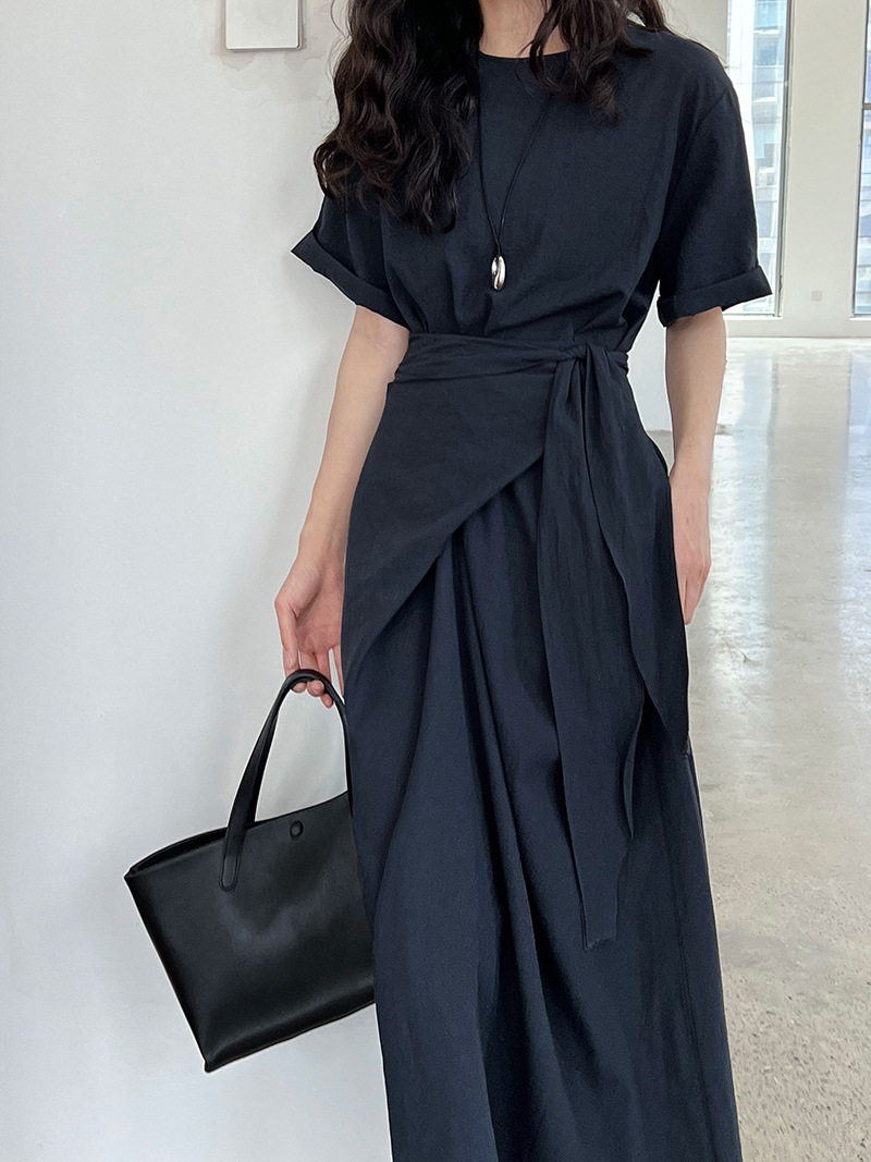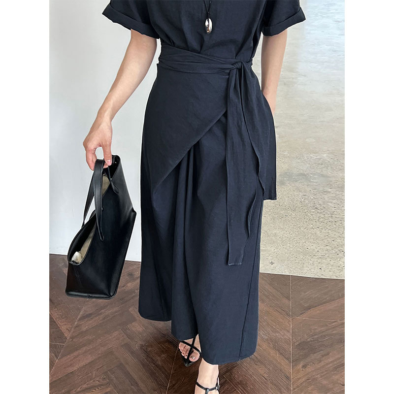 【ワンピース】夏 ラウンドネック 着痩せ効果 Aライン タンクトップ ワンピース 【SNシリーズ】