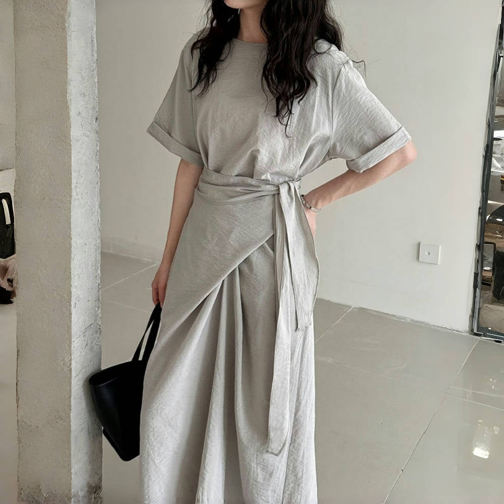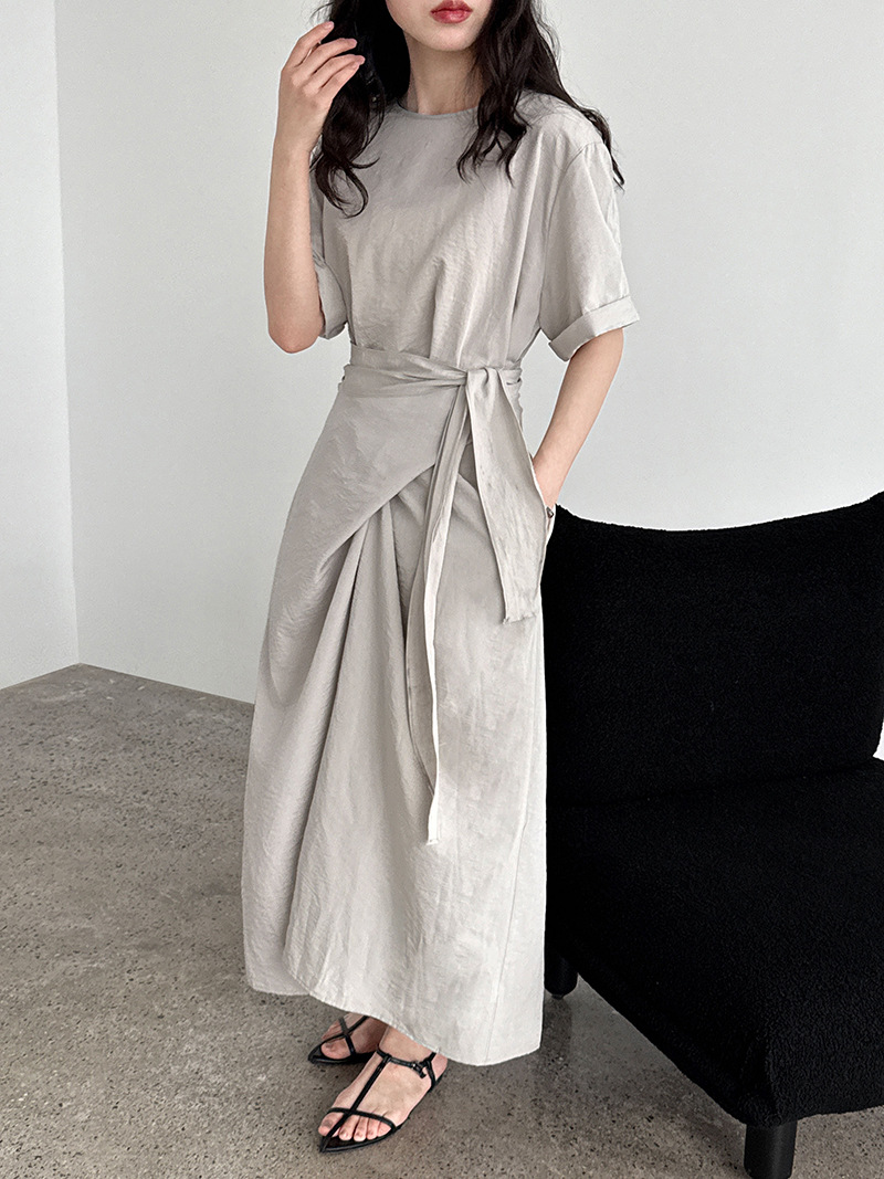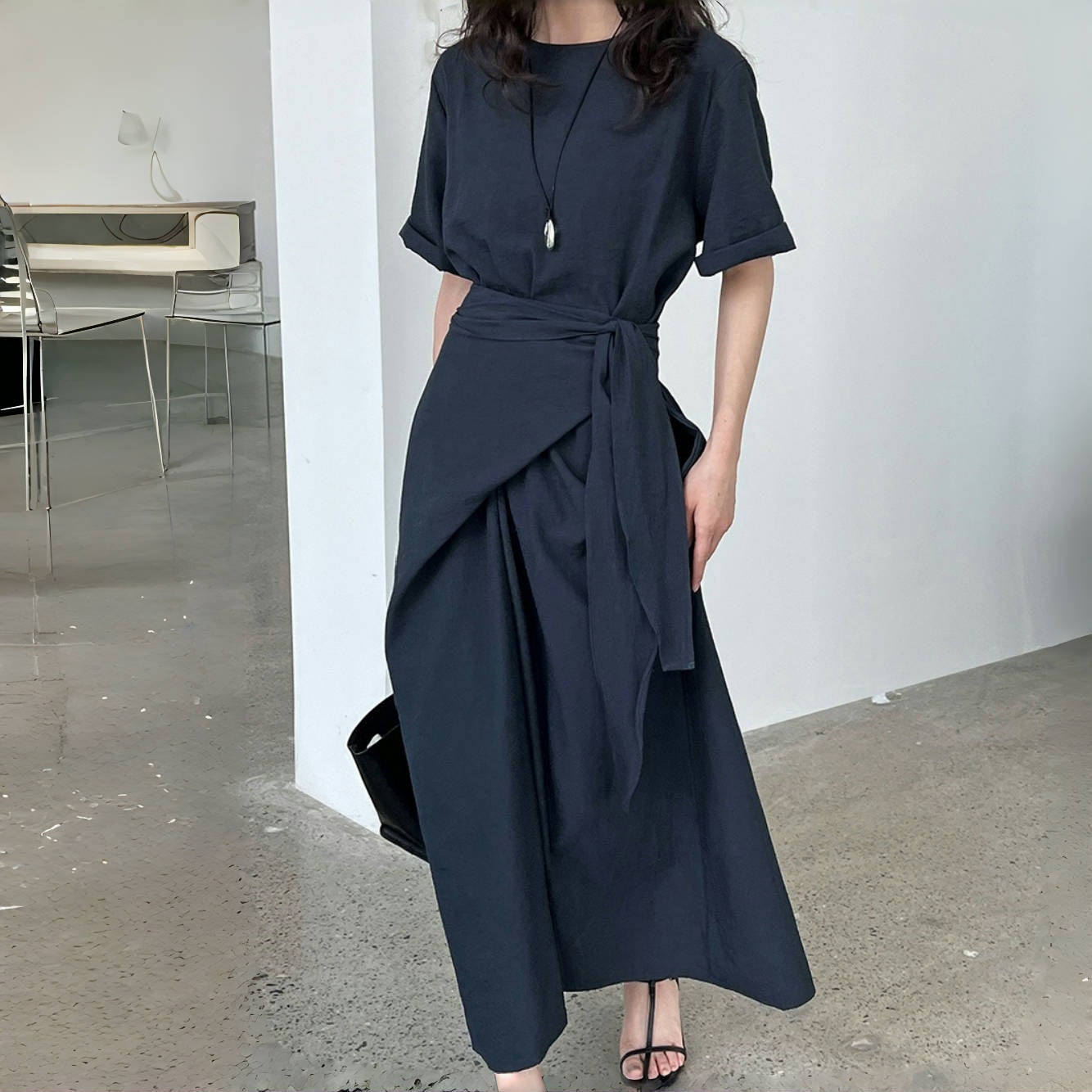 【ワンピース】夏 ラウンドネック 着痩せ効果 Aライン タンクトップ ワンピース 【SNシリーズ】