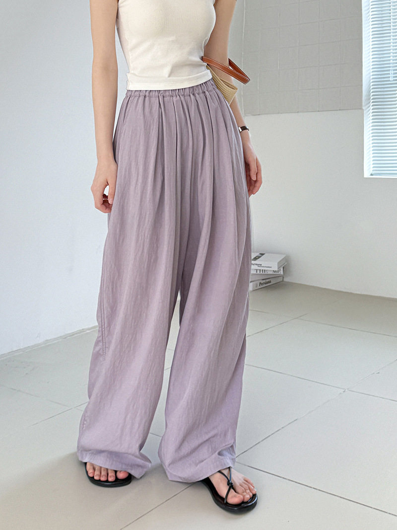 【ボトムス】夏新作 韓国風 ゆったりハイウエスト 体型カバー カジュアルロングパンツ【JZシリーズ】