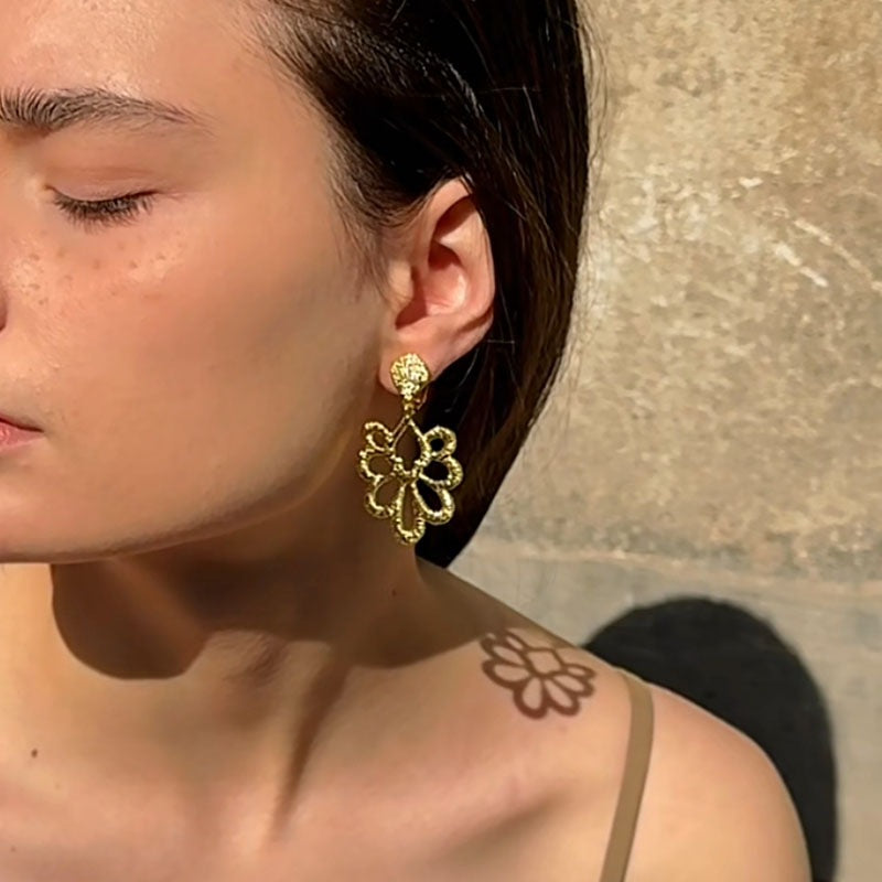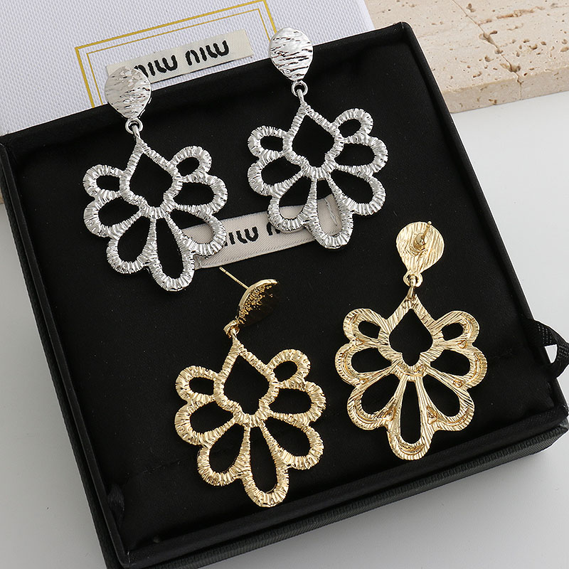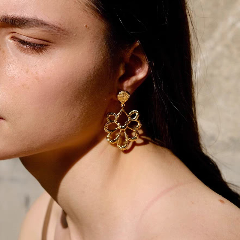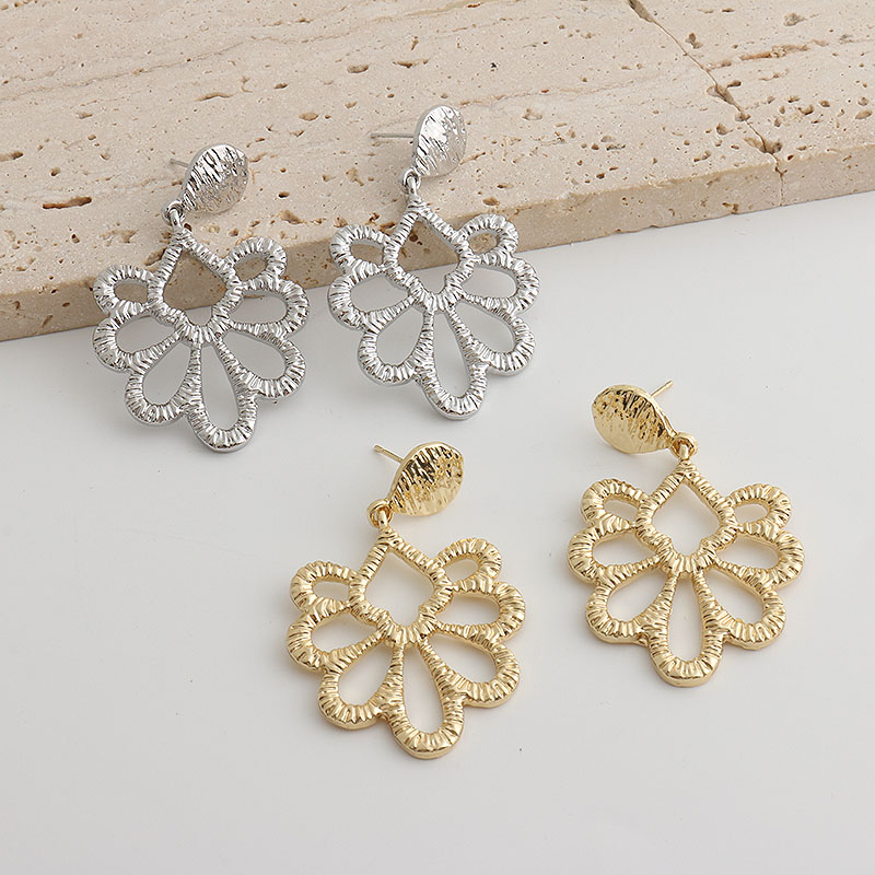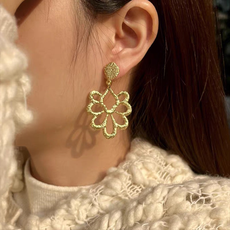 【🎁 B2G1|先行スタート!】【グッズ】個性派デザイン 金属×ラタン フラワーモチーフ 透かし細工ピアス