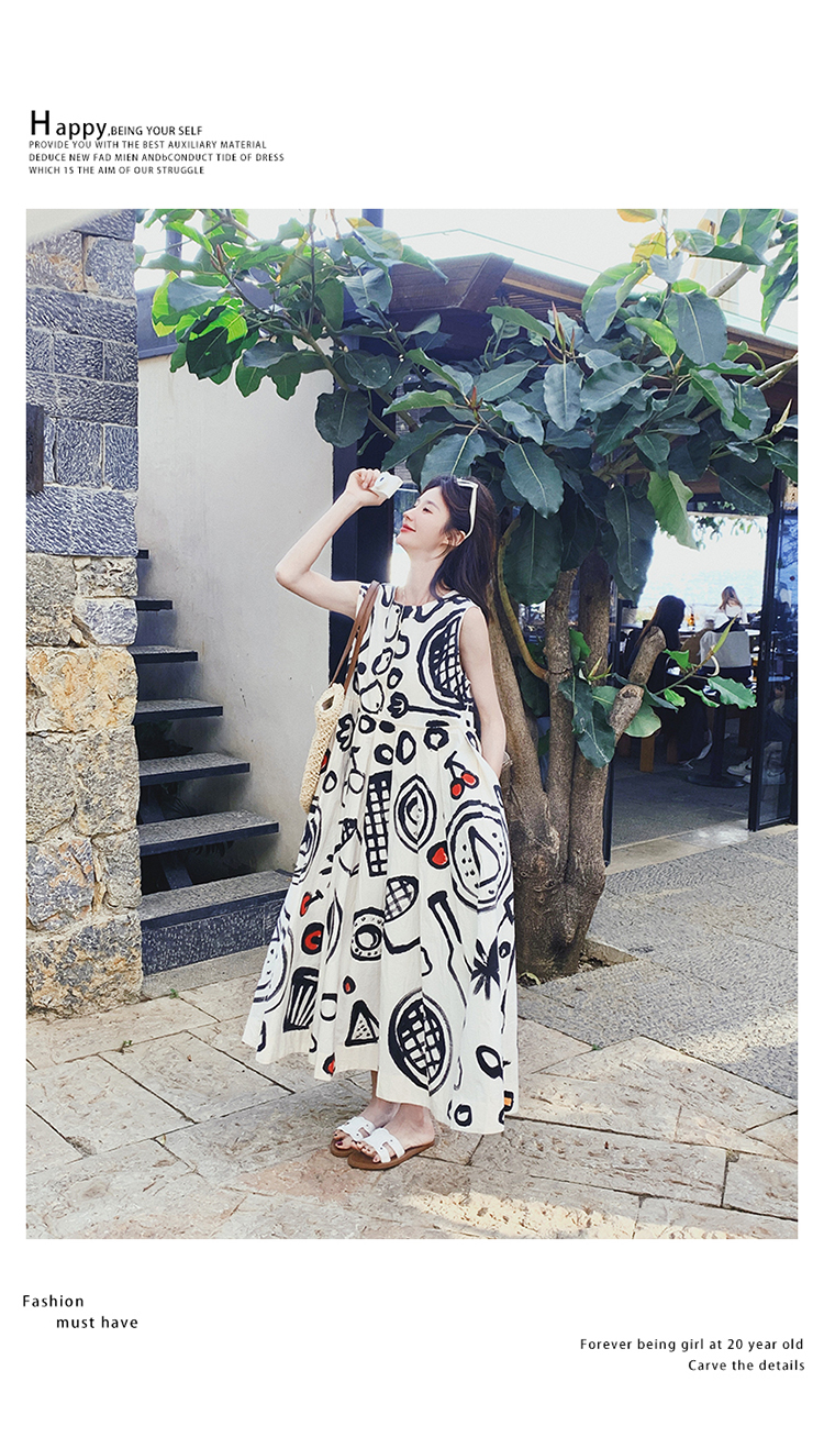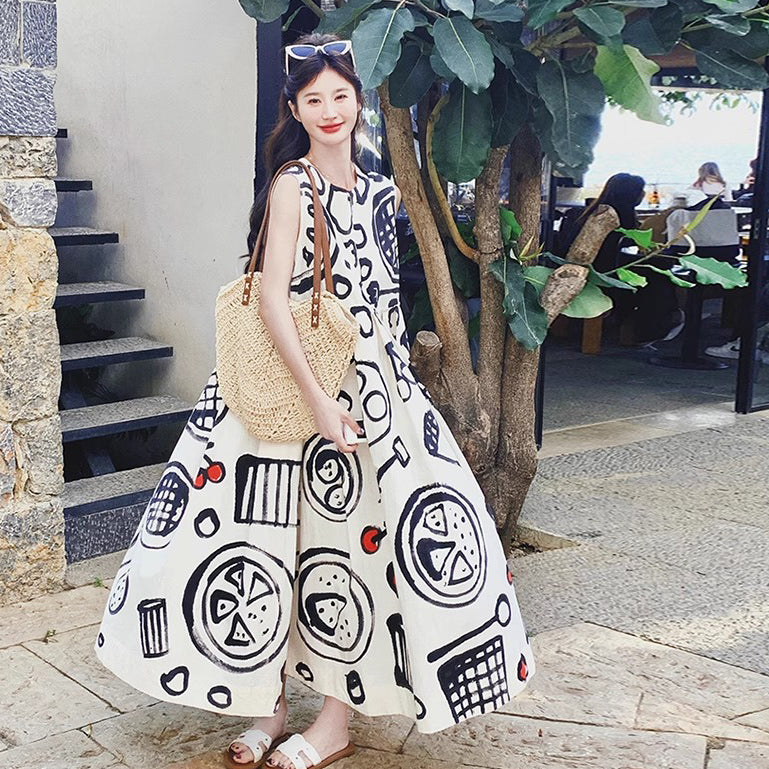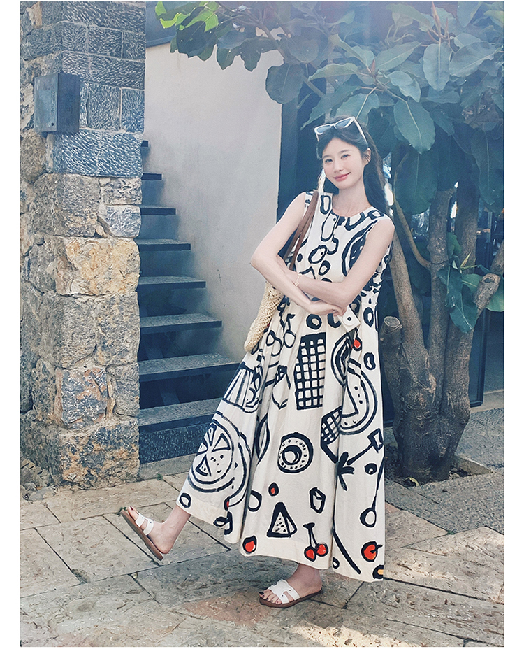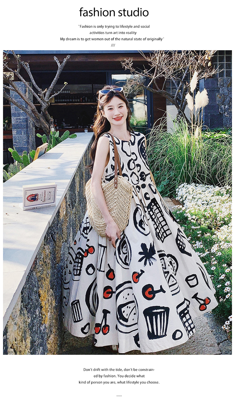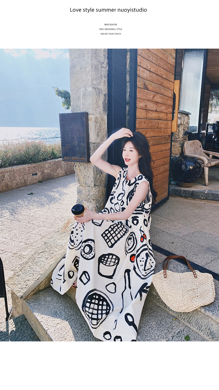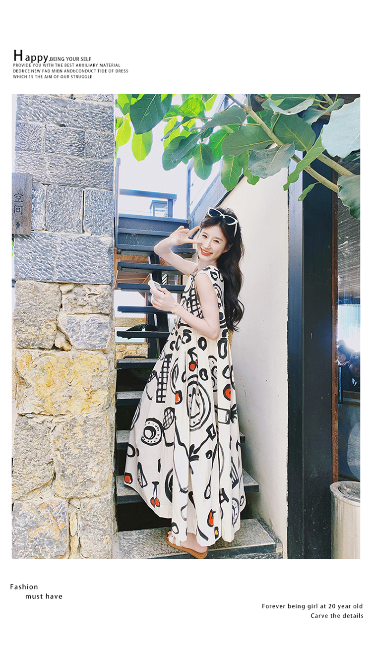 【ワンピース】デザイン感ある フレアノースリーブワンピース 夏新作 リゾート風ワンピース【SHシリーズ】