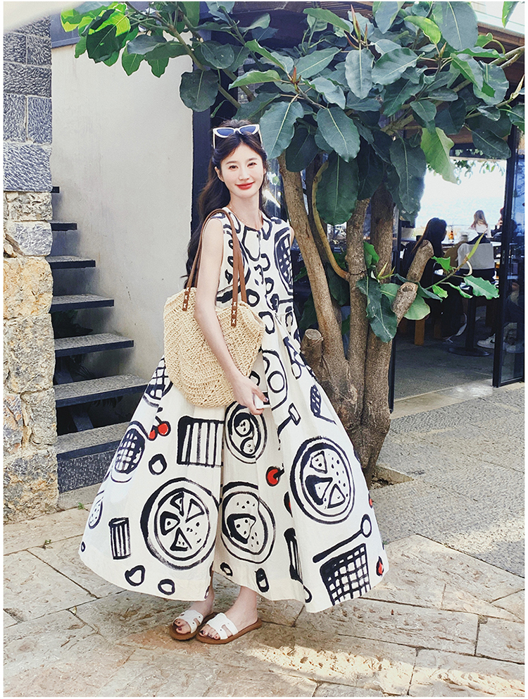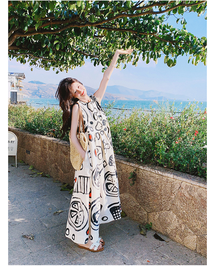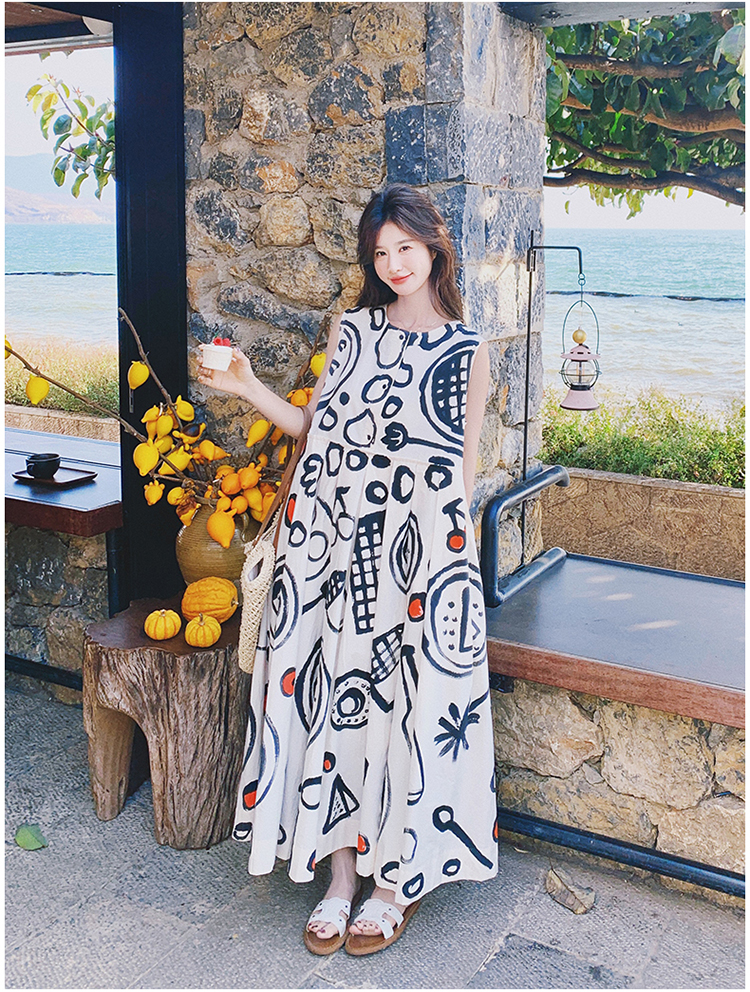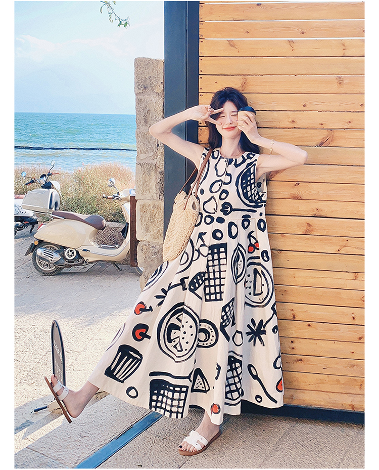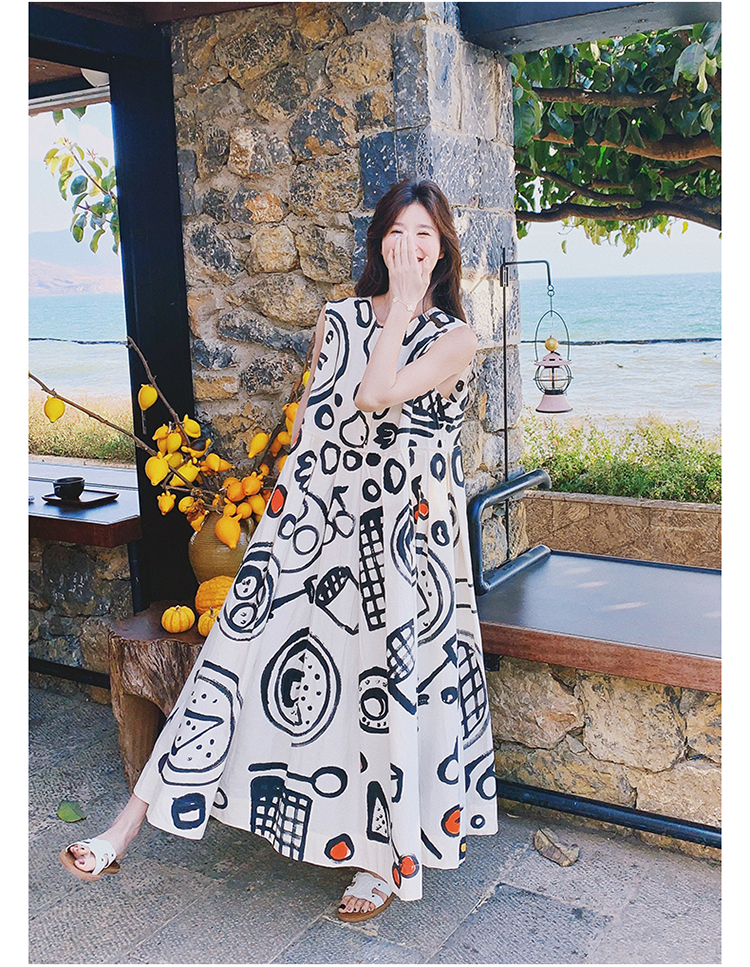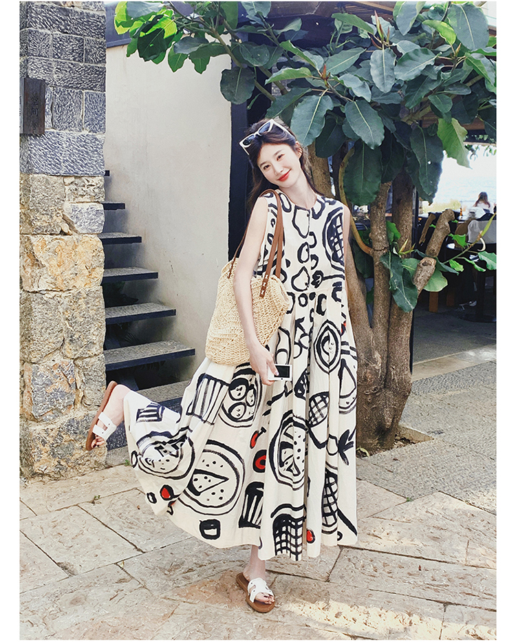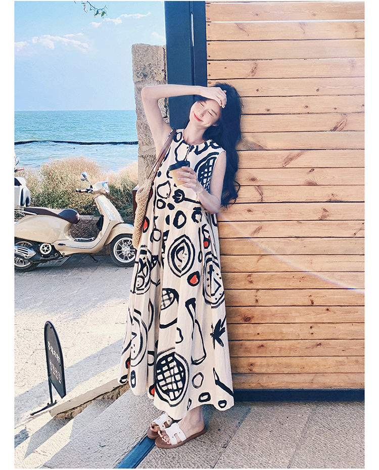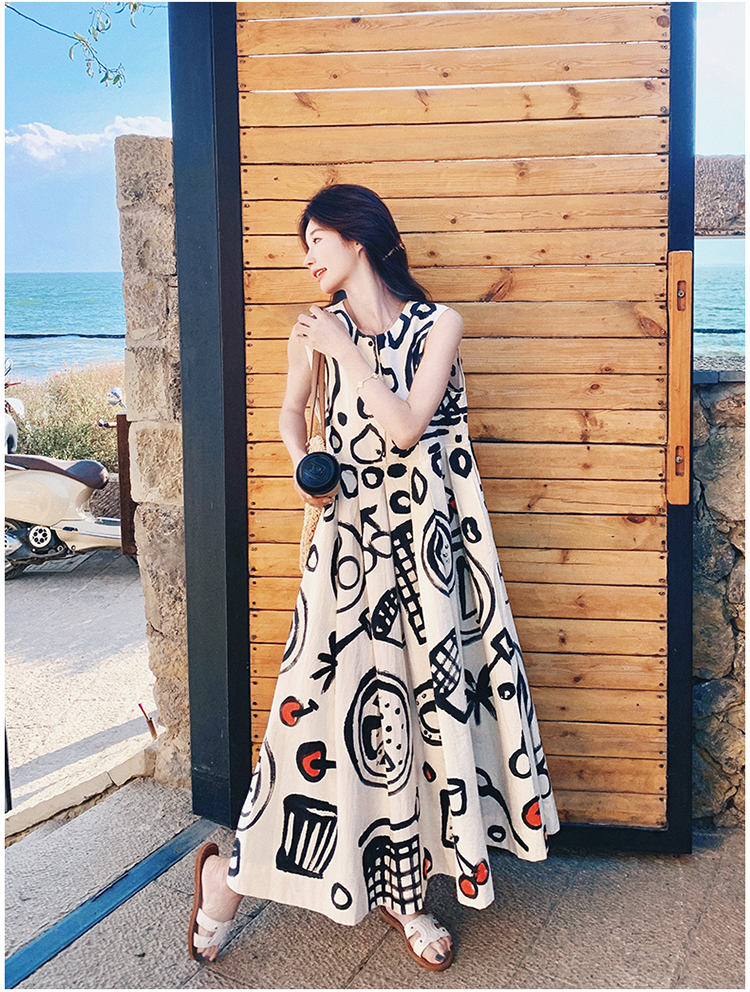 【ワンピース】デザイン感ある フレアノースリーブワンピース 夏新作 リゾート風ワンピース【SHシリーズ】