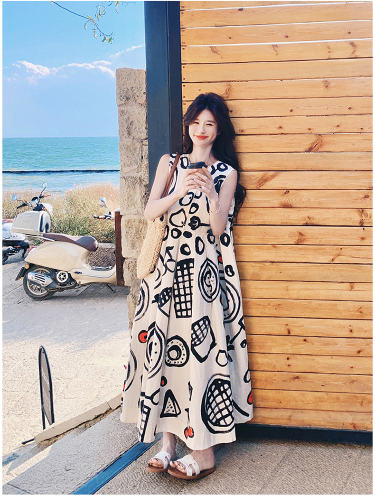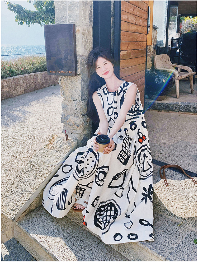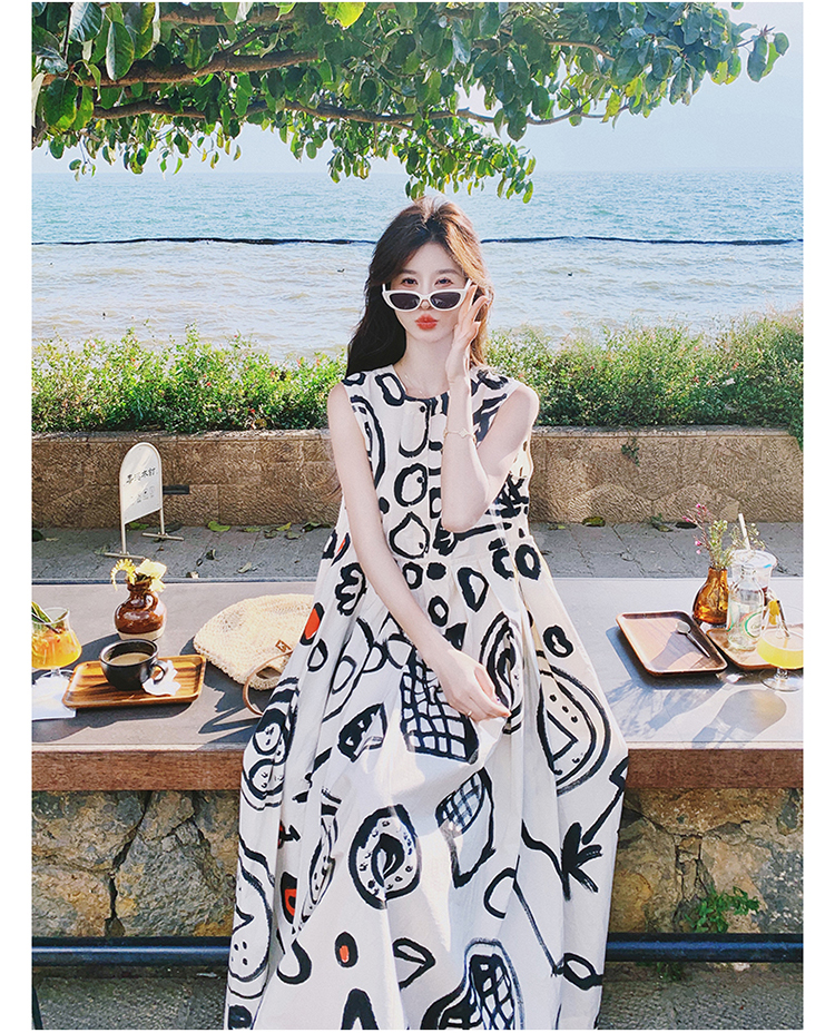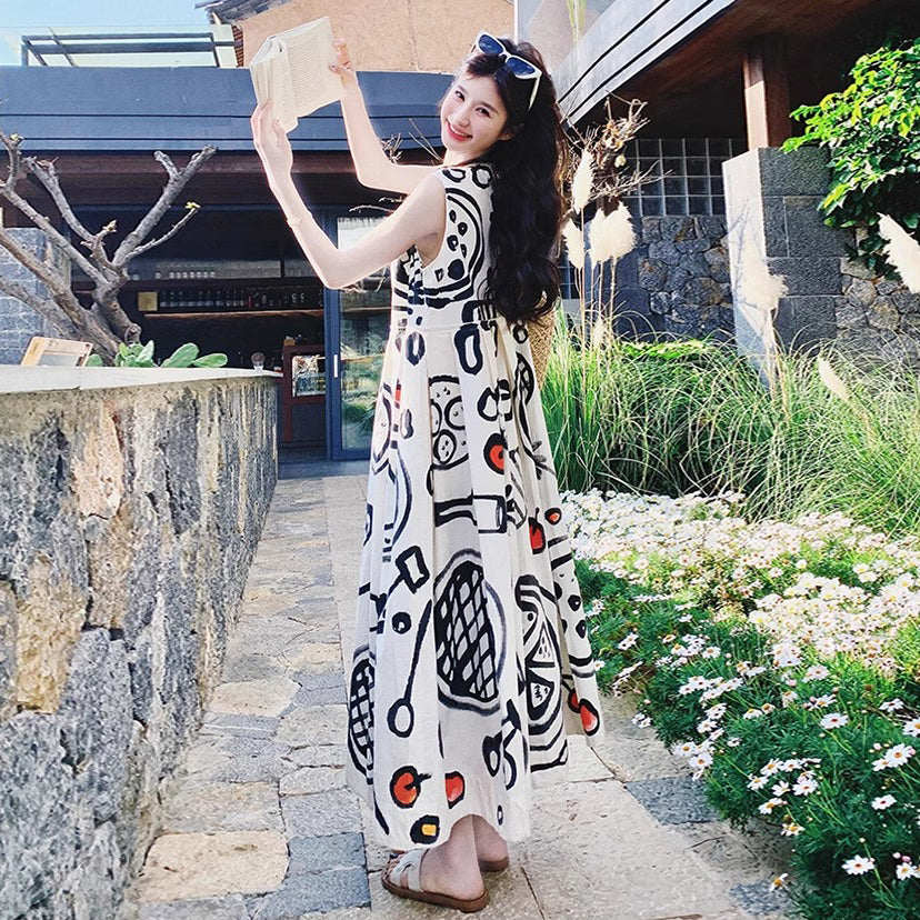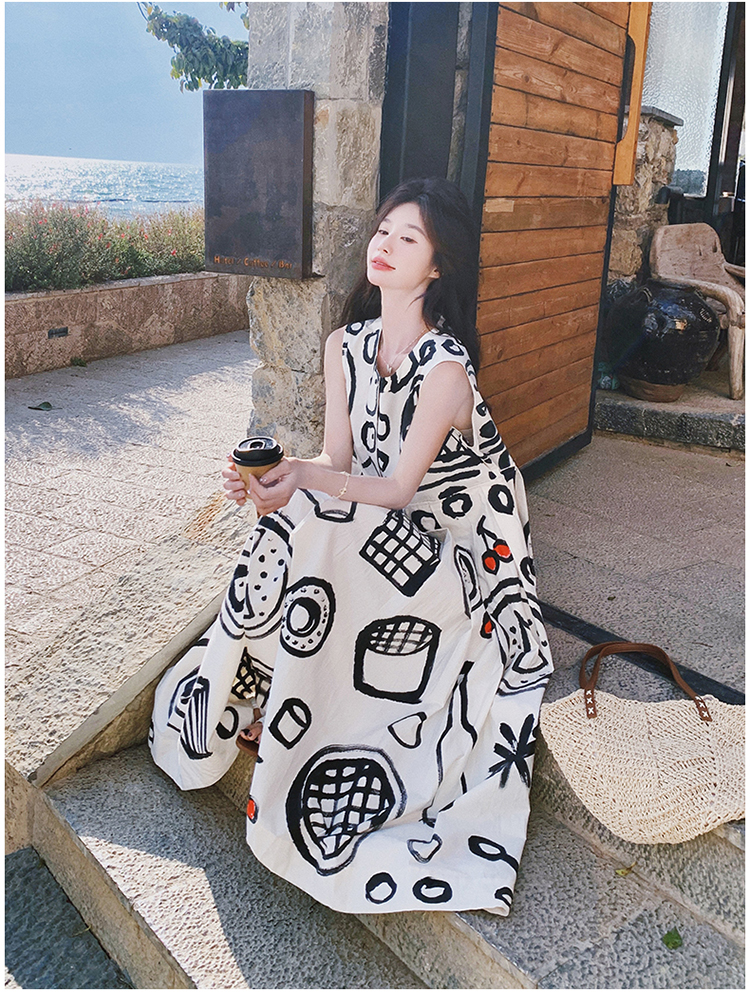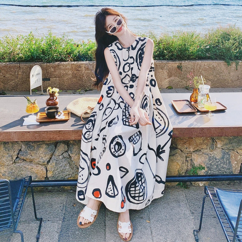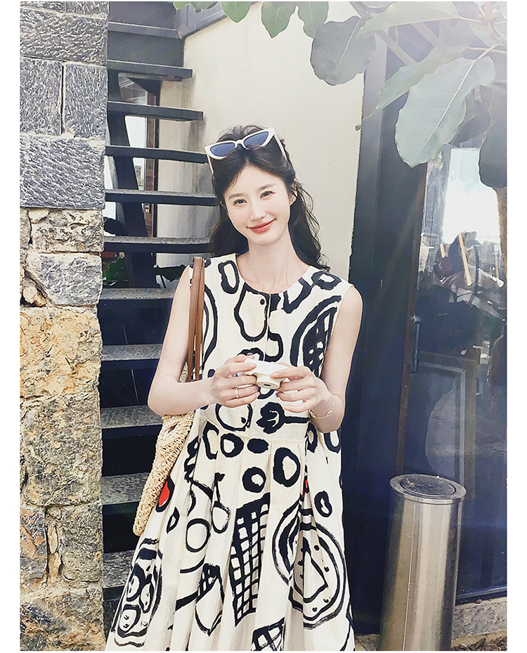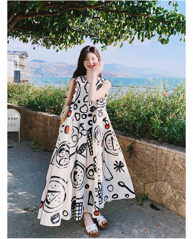【ワンピース】デザイン感ある フレアノースリーブワンピース 夏新作 リゾート風ワンピース【SHシリーズ】