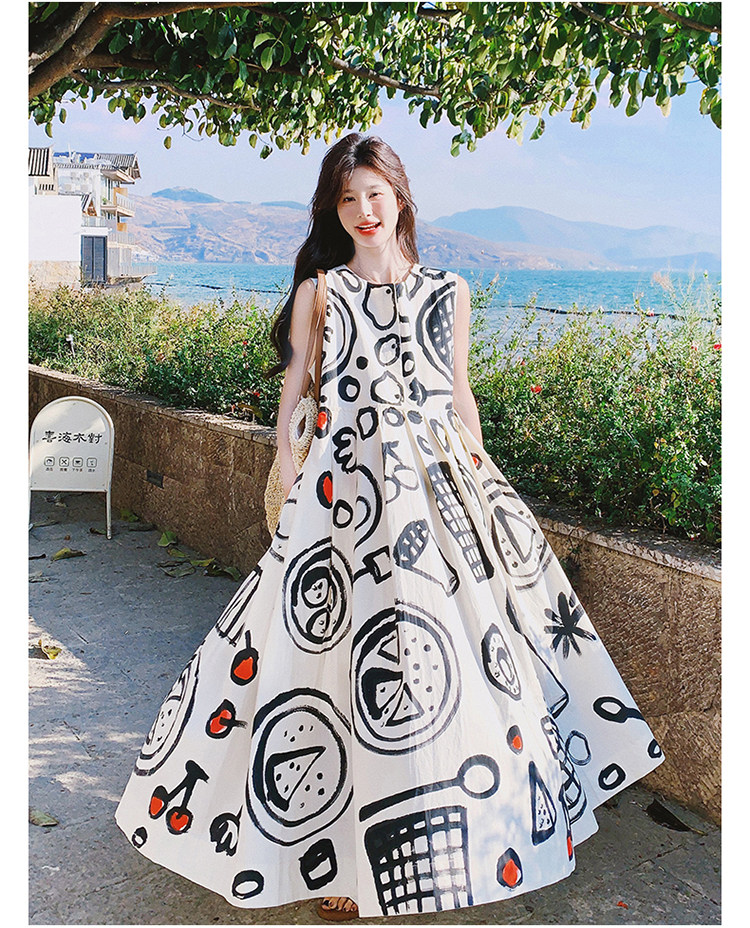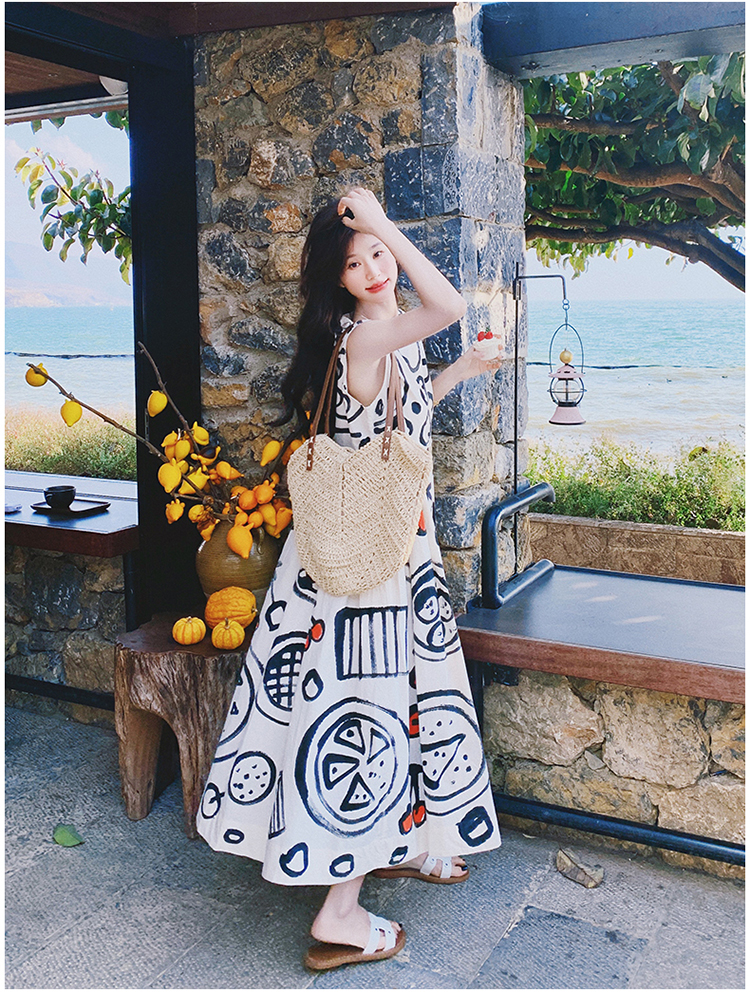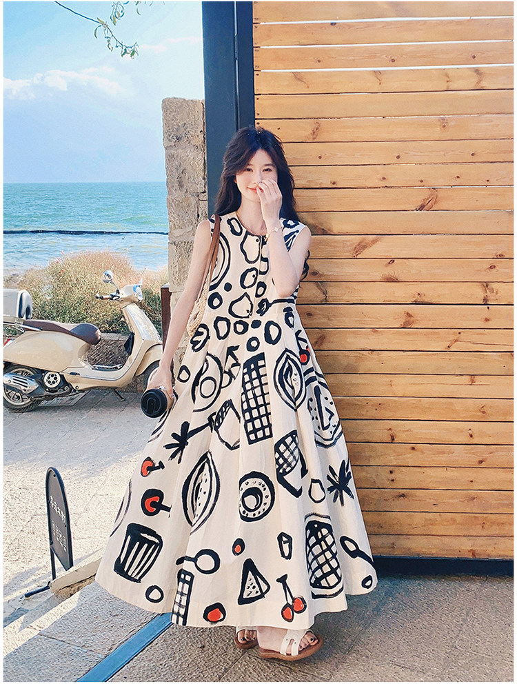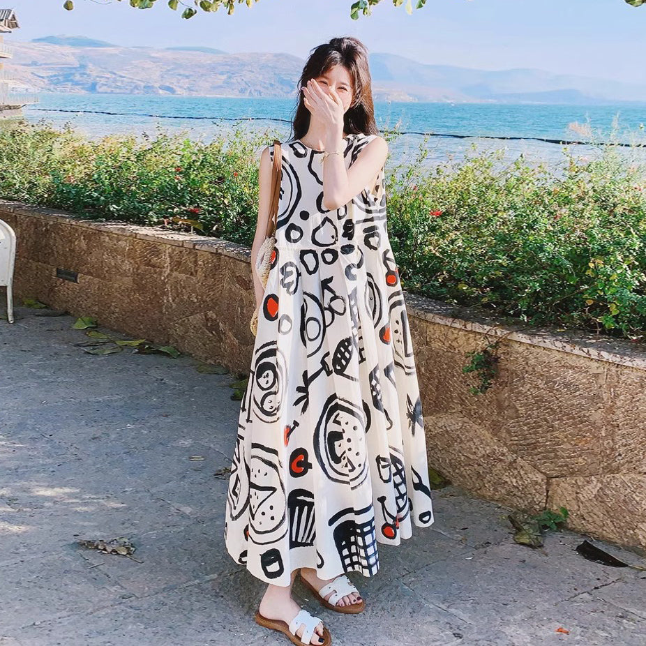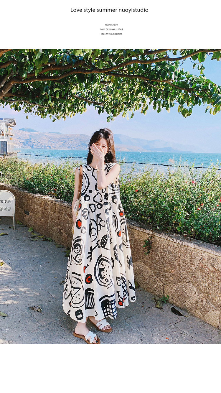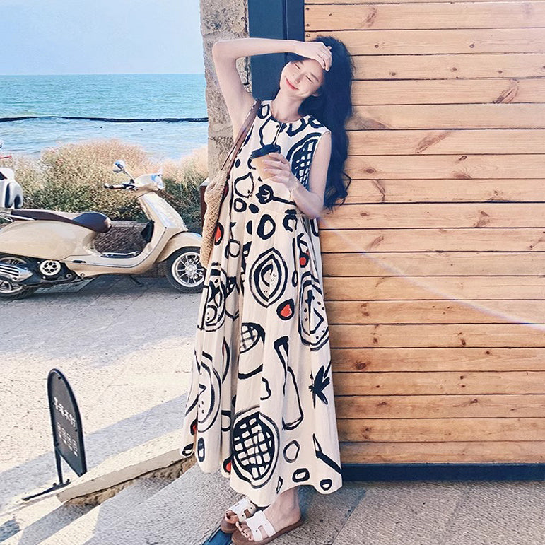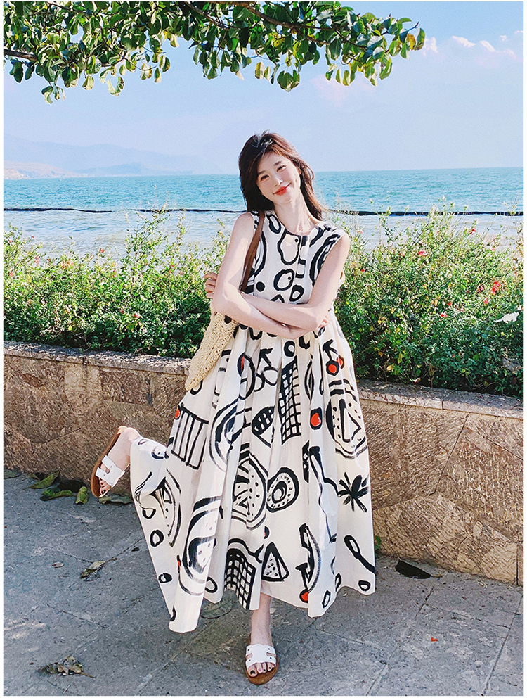 【ワンピース】デザイン感ある フレアノースリーブワンピース 夏新作 リゾート風ワンピース【SHシリーズ】