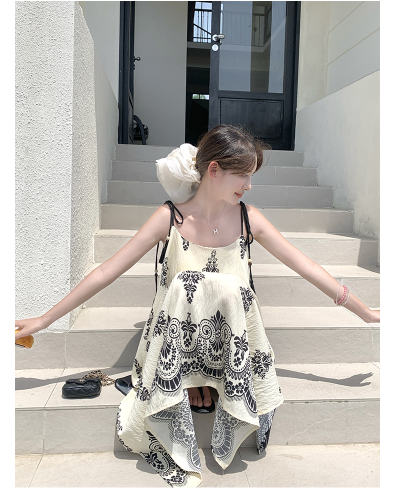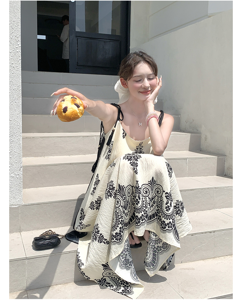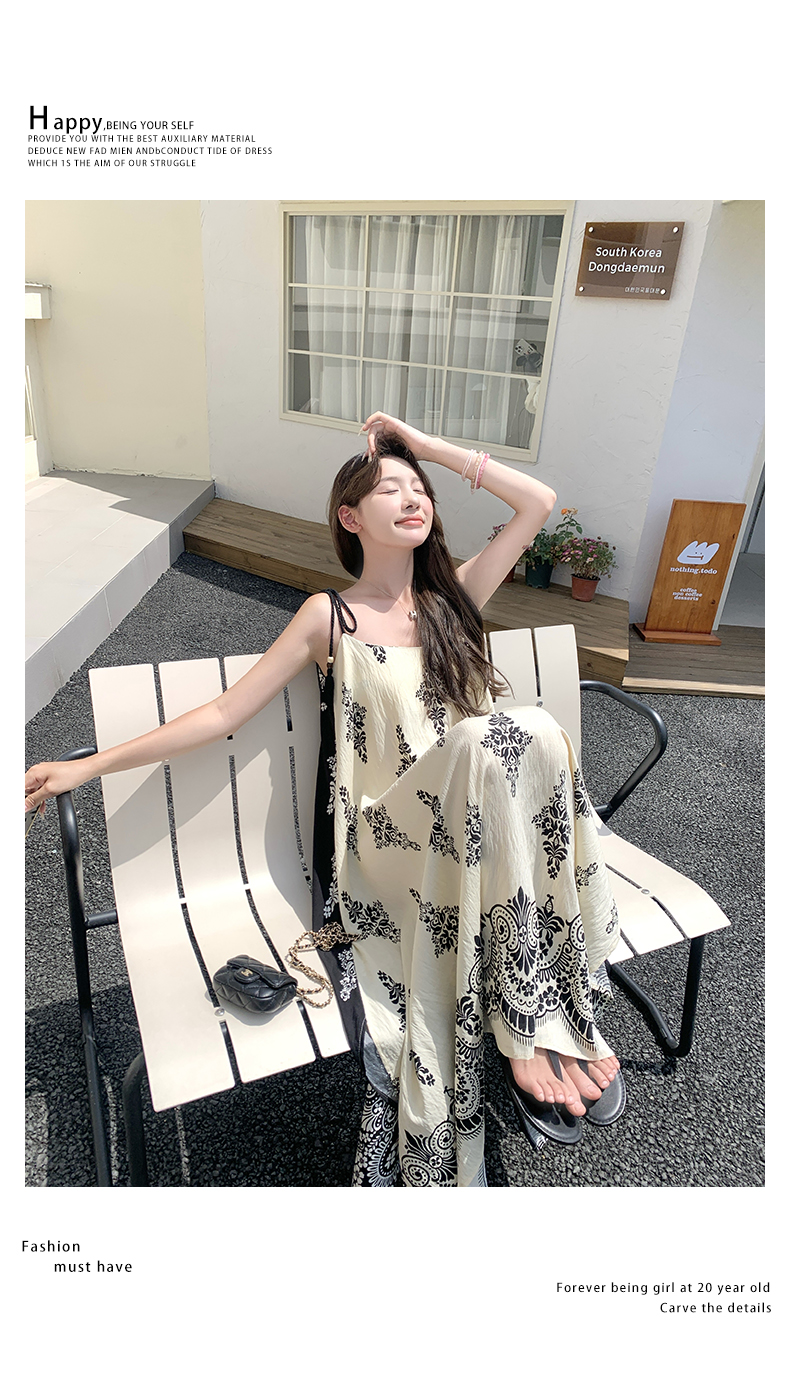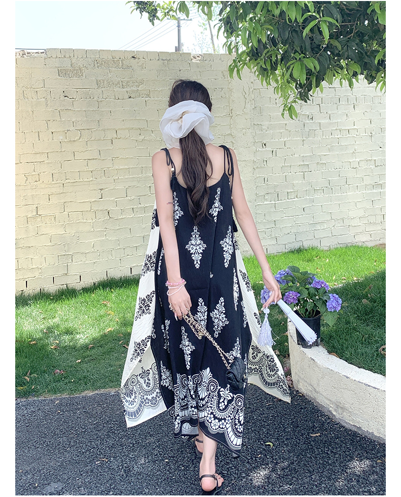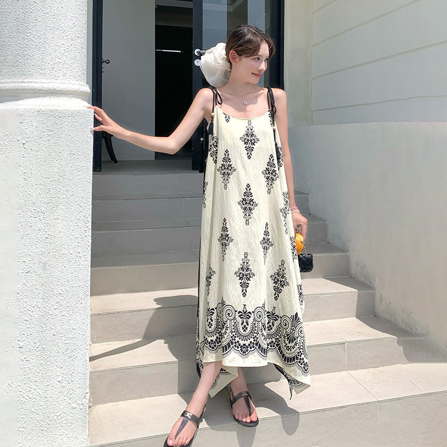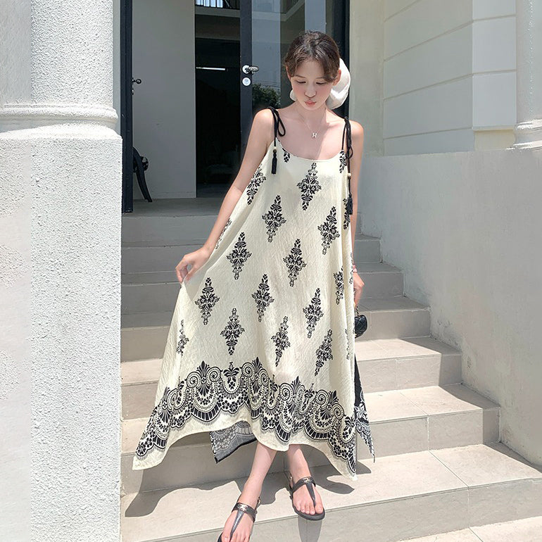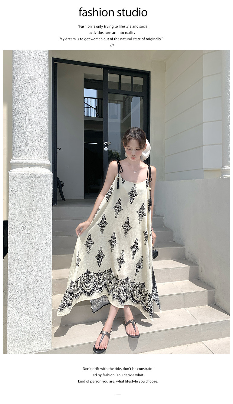 【ワンピース】フレンチリゾート風 夏新作 超映え民族風プリント ノースリーブワンピース【SHシリーズ】
