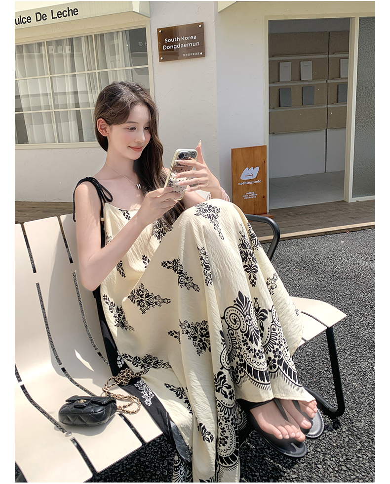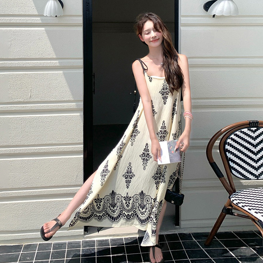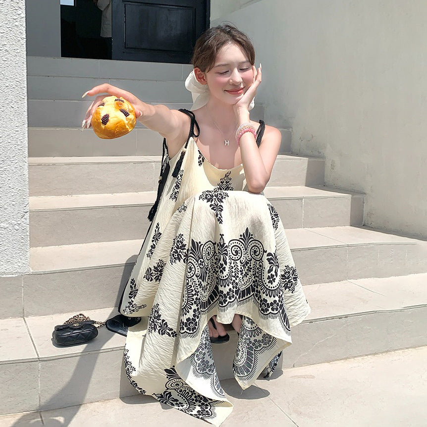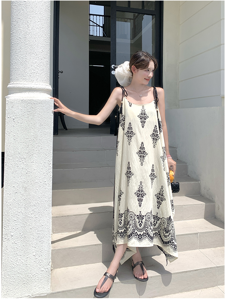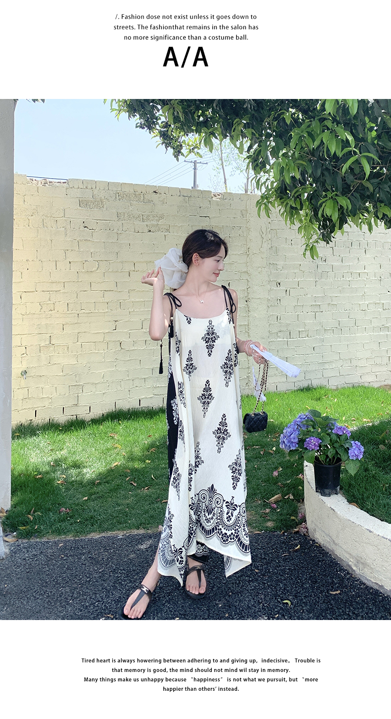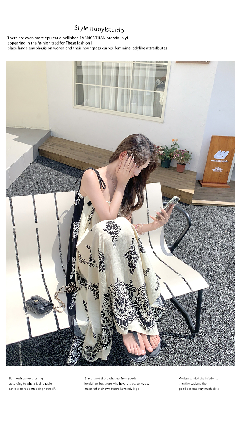 【ワンピース】フレンチリゾート風 夏新作 超映え民族風プリント ノースリーブワンピース【SHシリーズ】