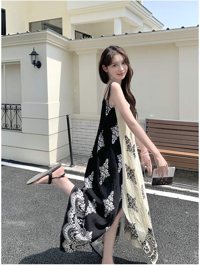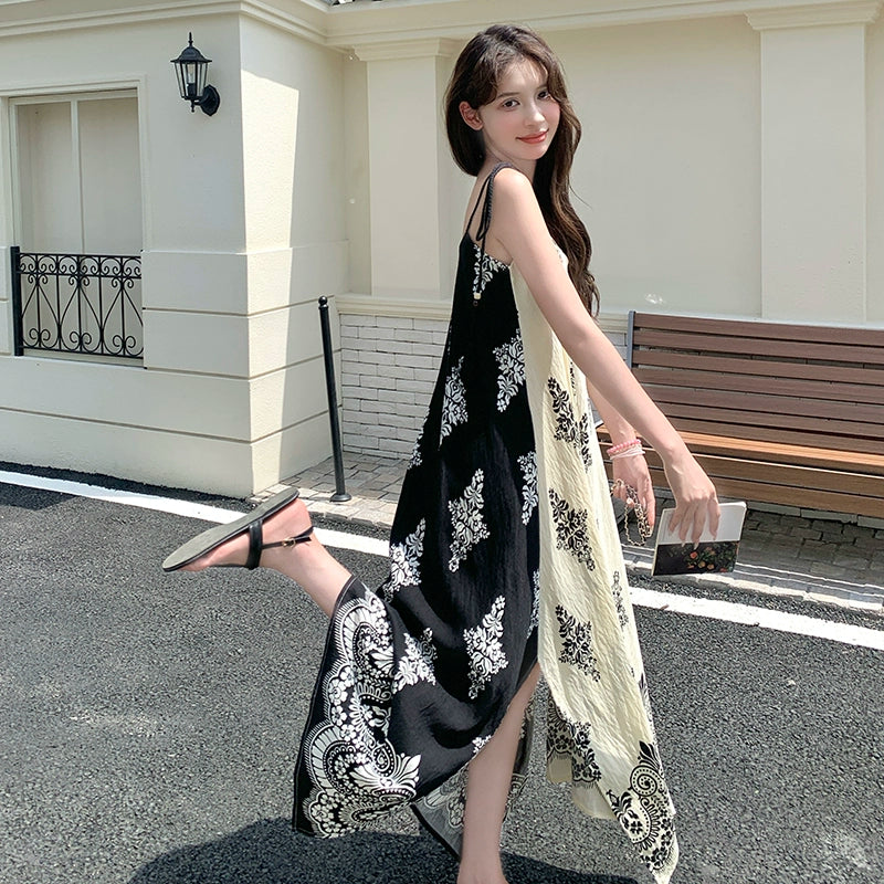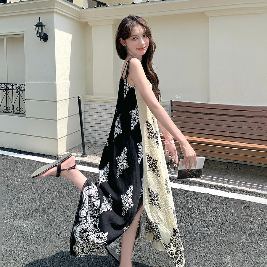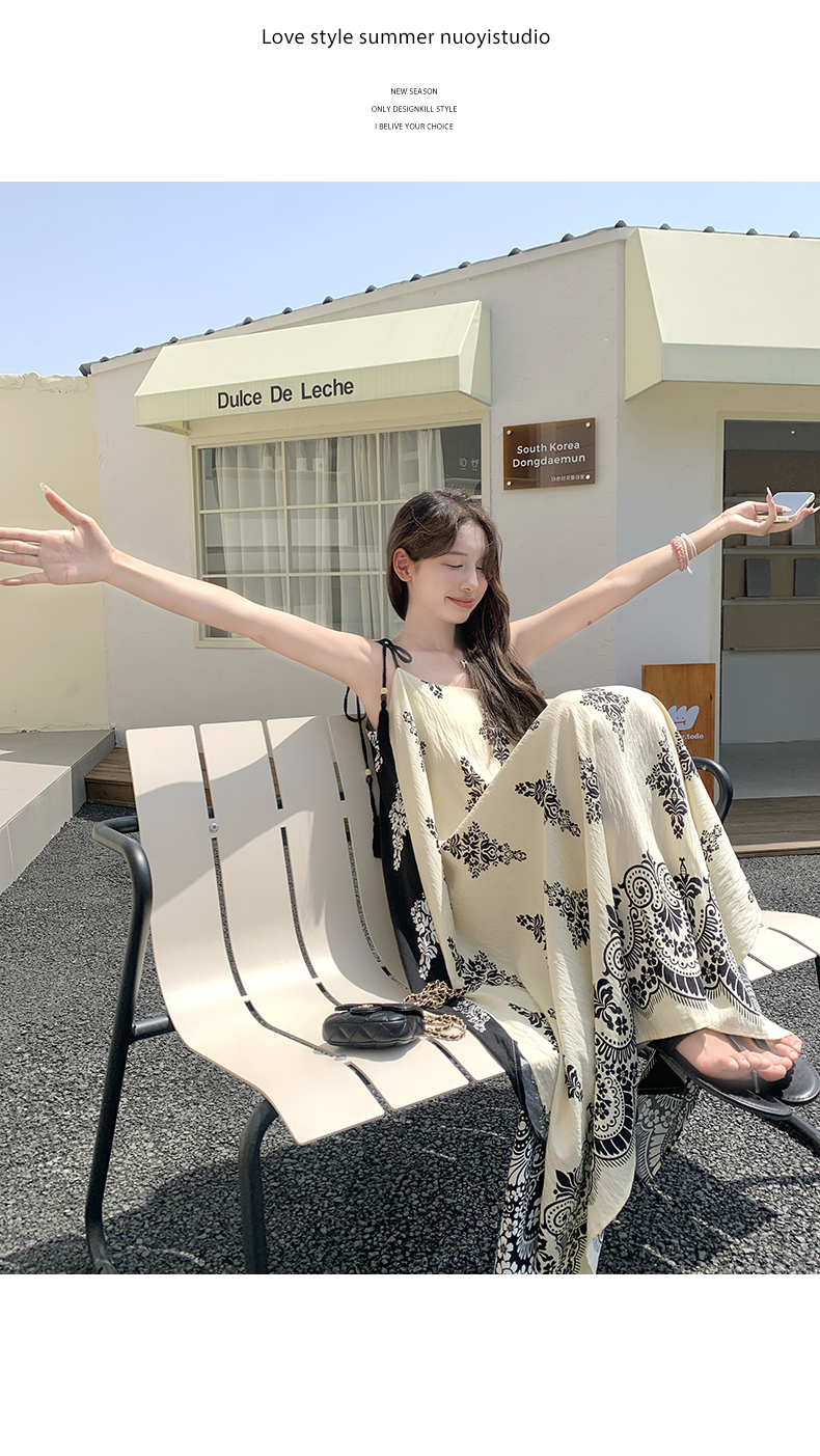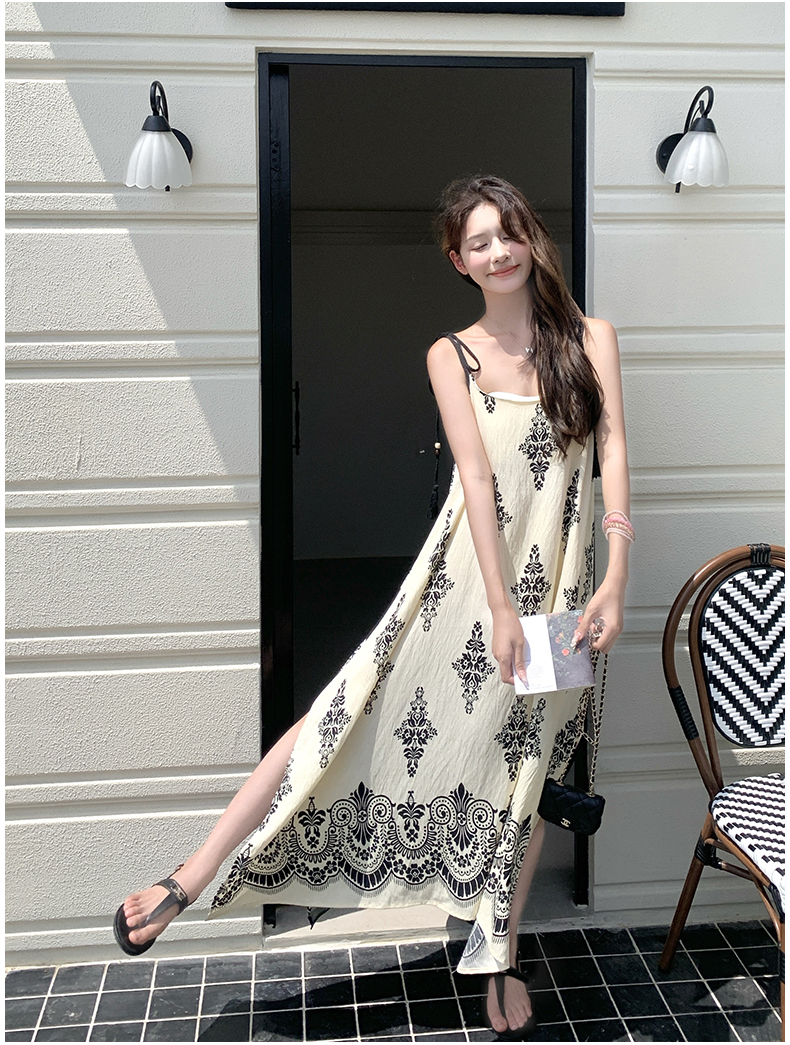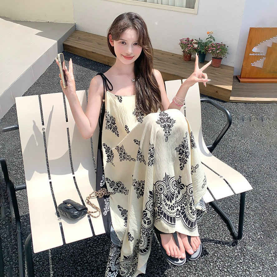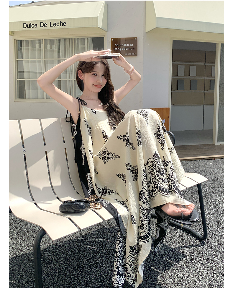 【ワンピース】フレンチリゾート風 夏新作 超映え民族風プリント ノースリーブワンピース【SHシリーズ】