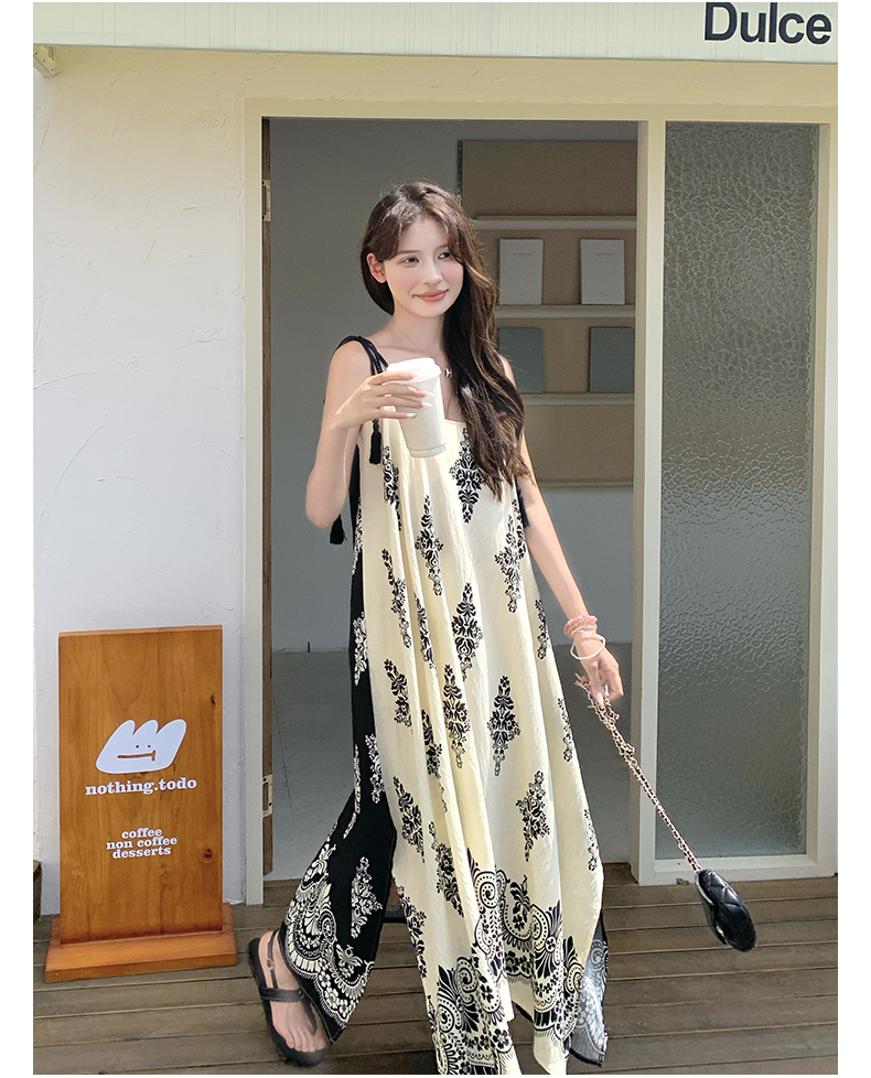 【商品名】【ワンピース】フレンチリゾート風 夏新作 超映え民族風プリント ノースリーブワンピース【SHシリーズ】