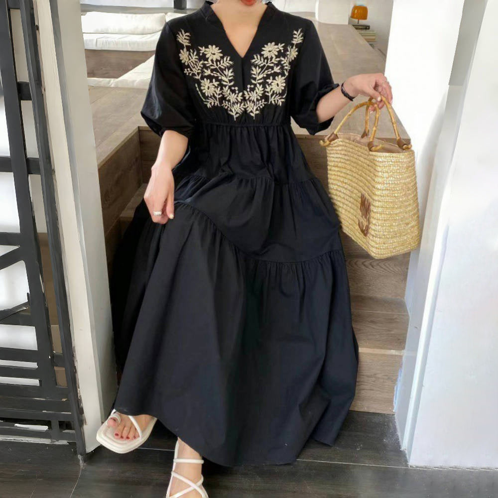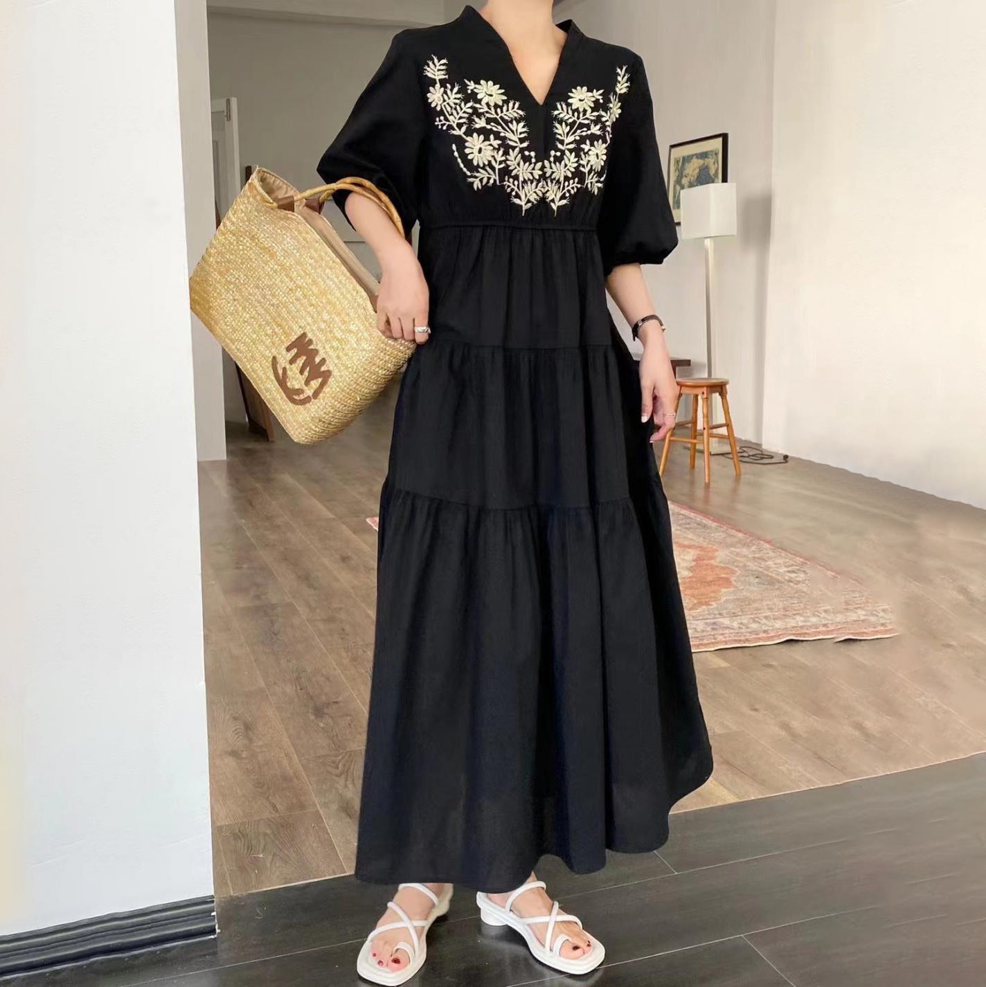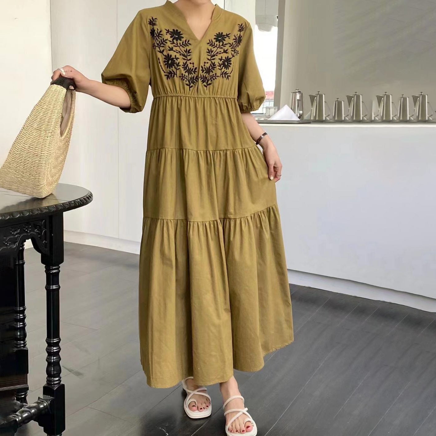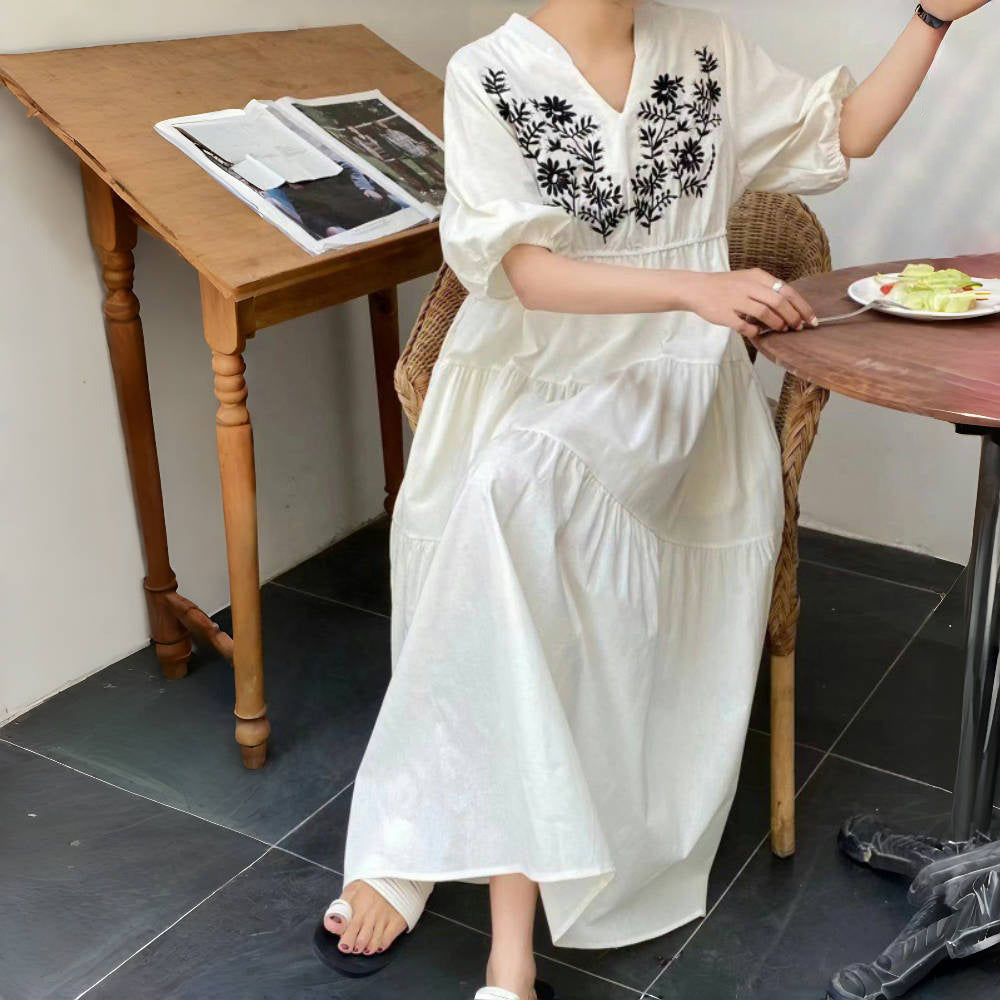 【ワンピース】韓国風 ゆったりシルエット 無地ロングシャツワンピース 半袖ワンピース