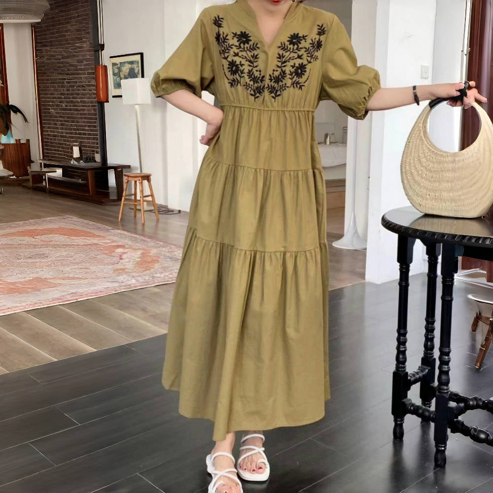 【商品名】【ワンピース】韓国風 ゆったりシルエット 無地ロングシャツワンピース 半袖ワンピース