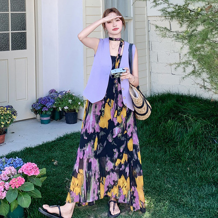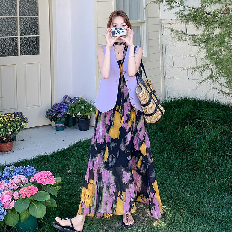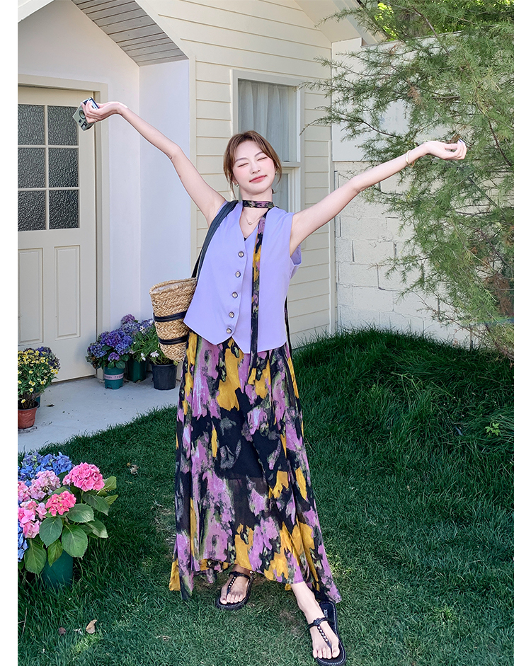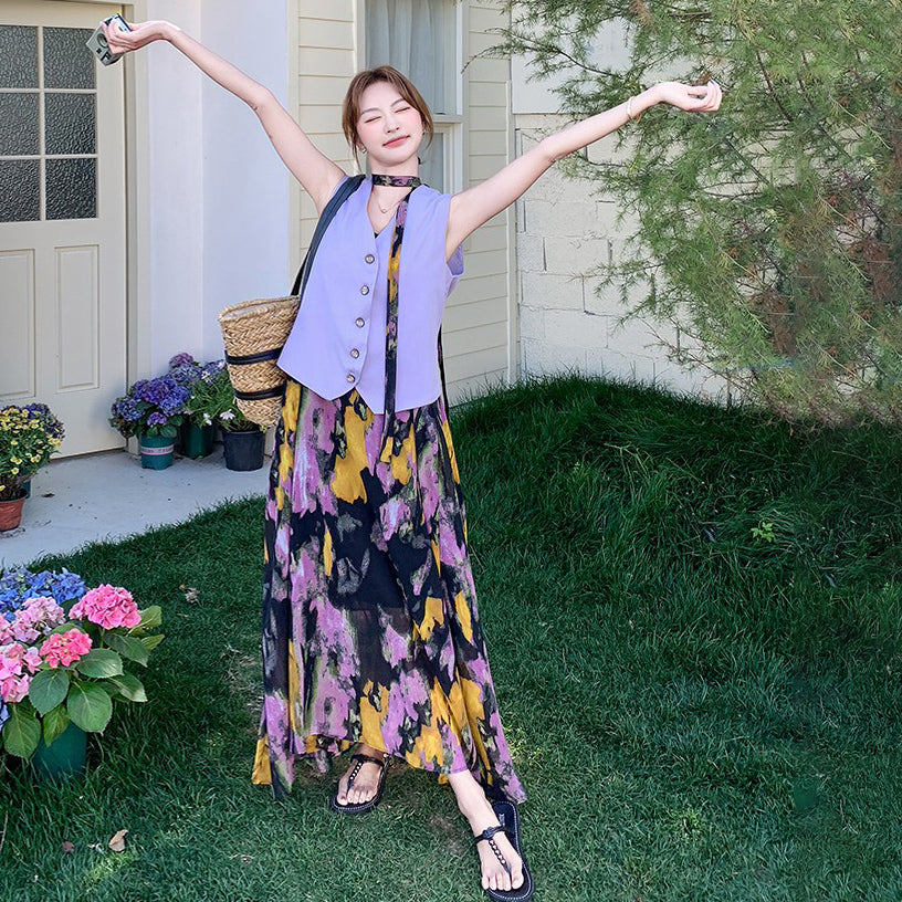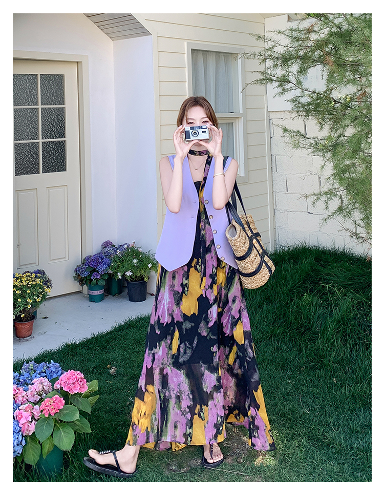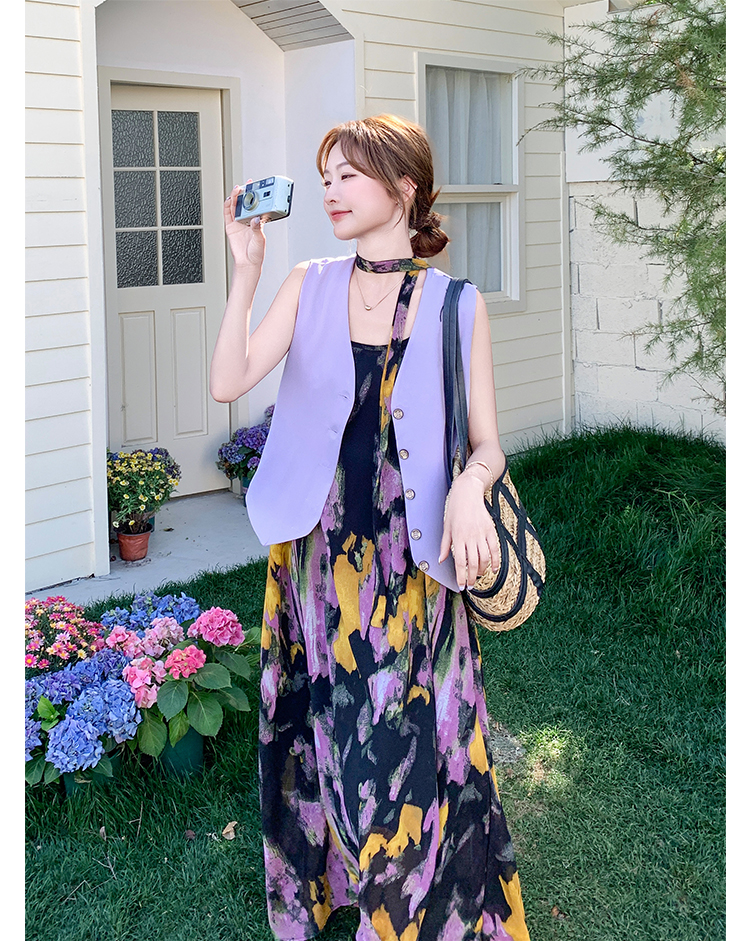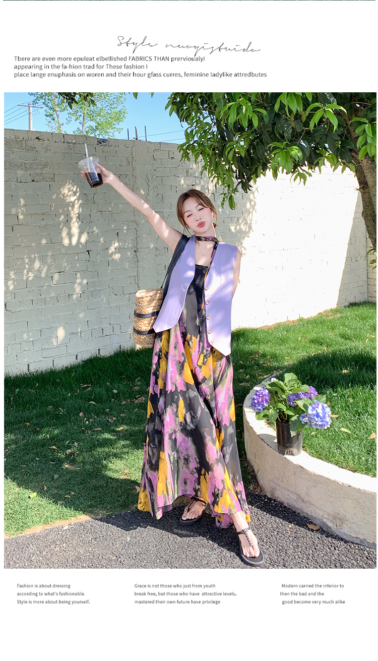 🧡みんなが選んだ人気商品🧡2点セット!【セットアップ】雰囲気たっぷりベスト+フラワーキャミワンピース 夏新作 清楚系 着映えセットアップコーデ【SHシリーズ】