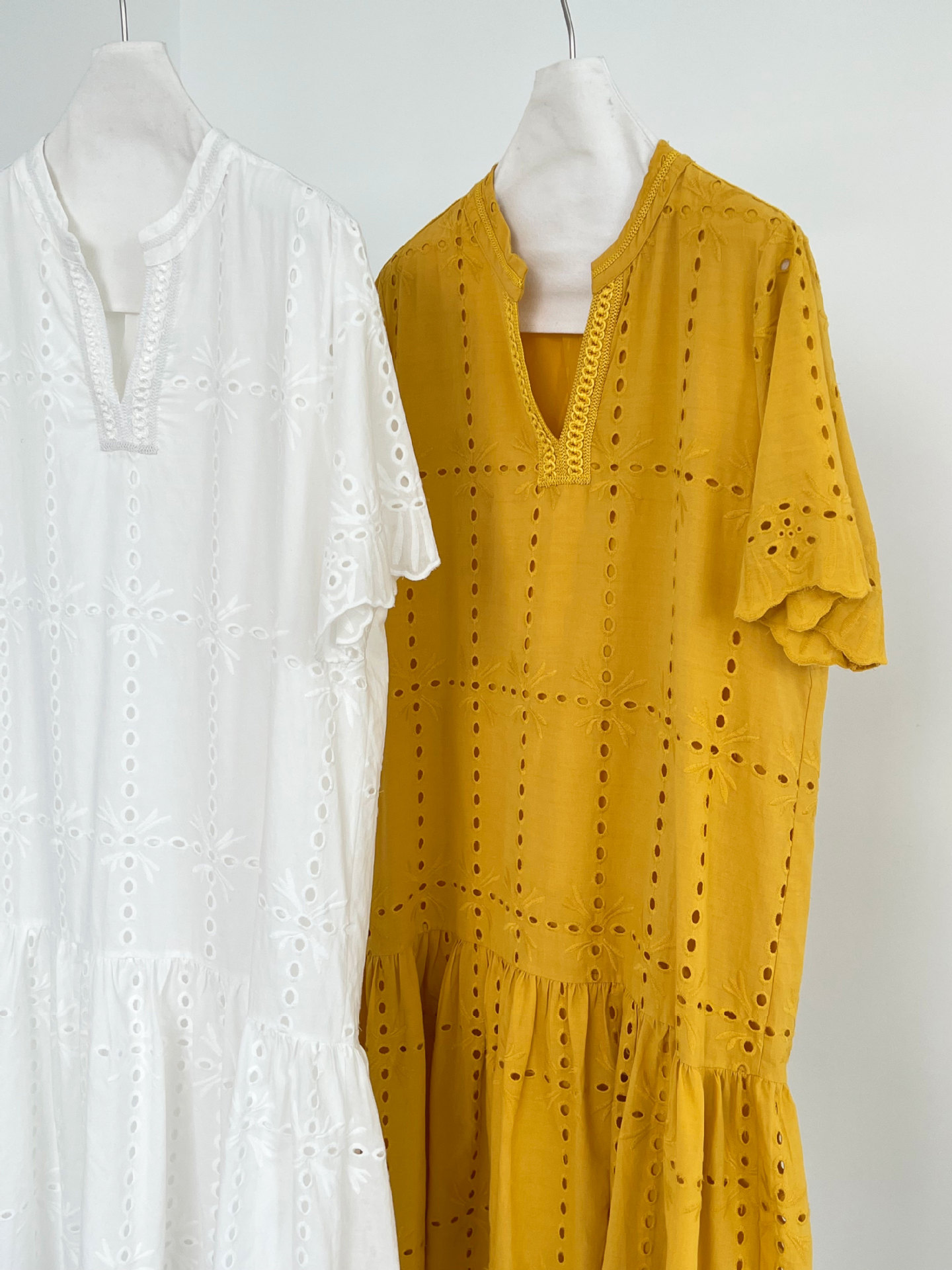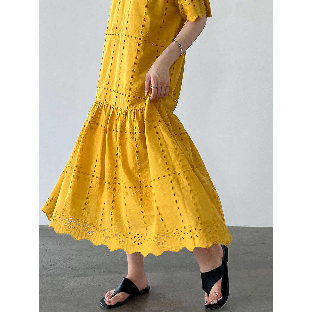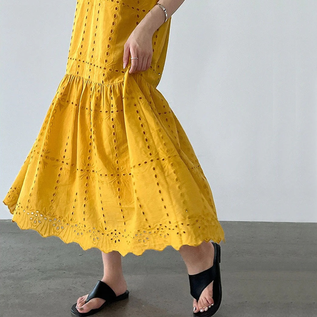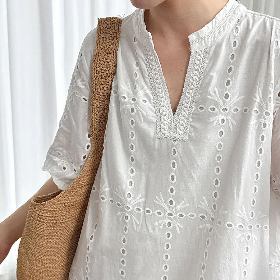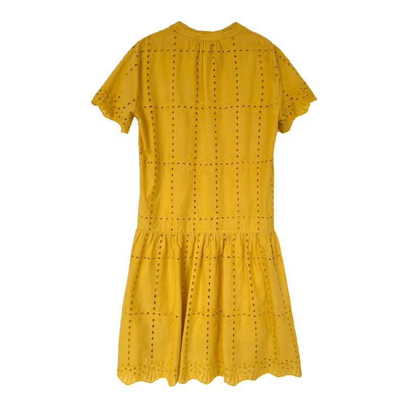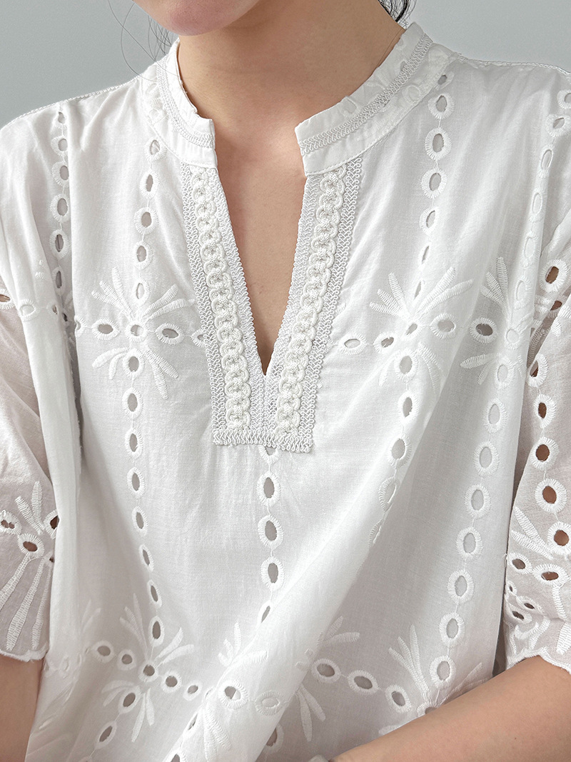 【ワンピース】夏 透かし彫り レース 刺繍 Vネック 半袖 ワンピース【SNシリーズ】