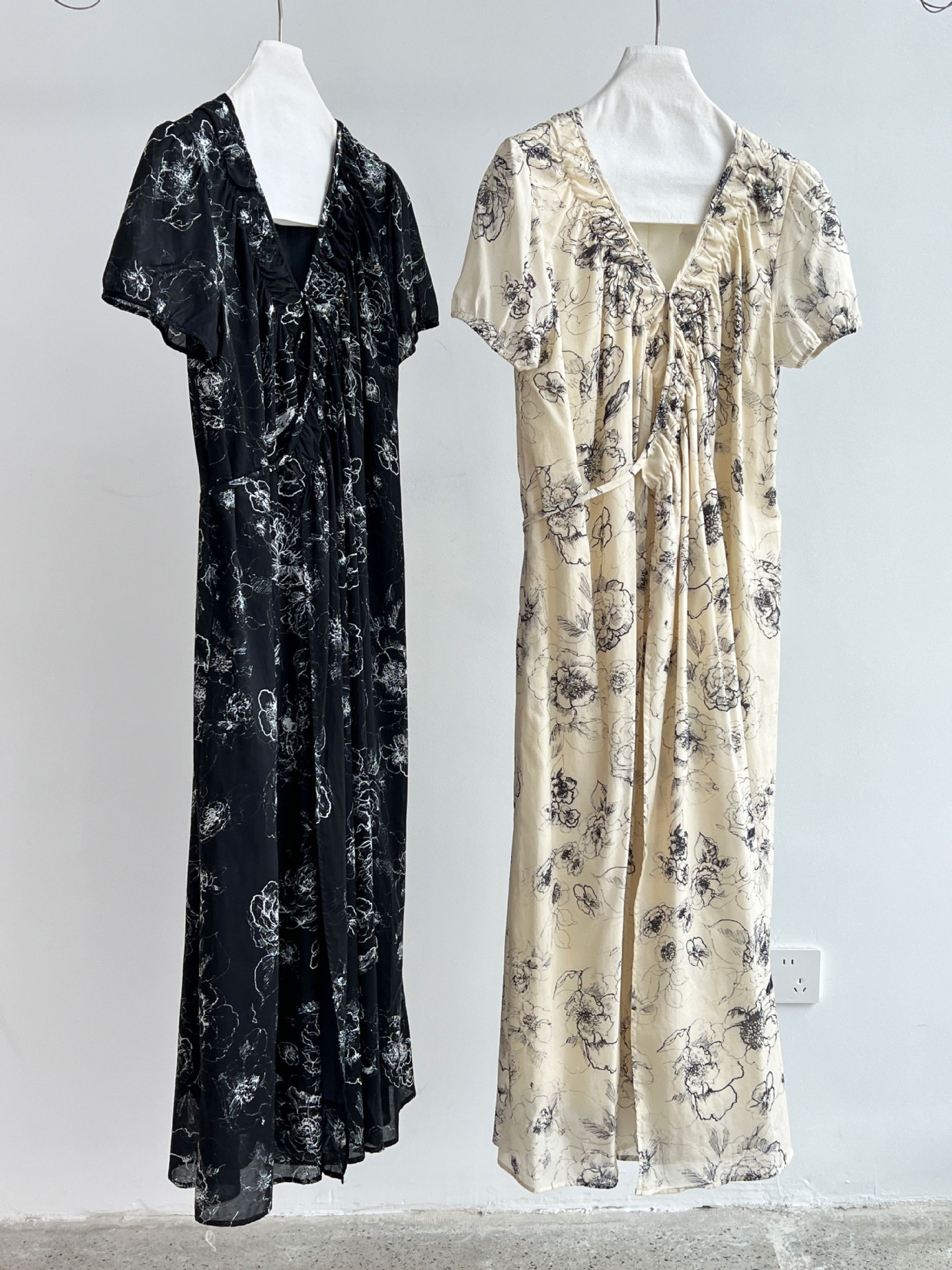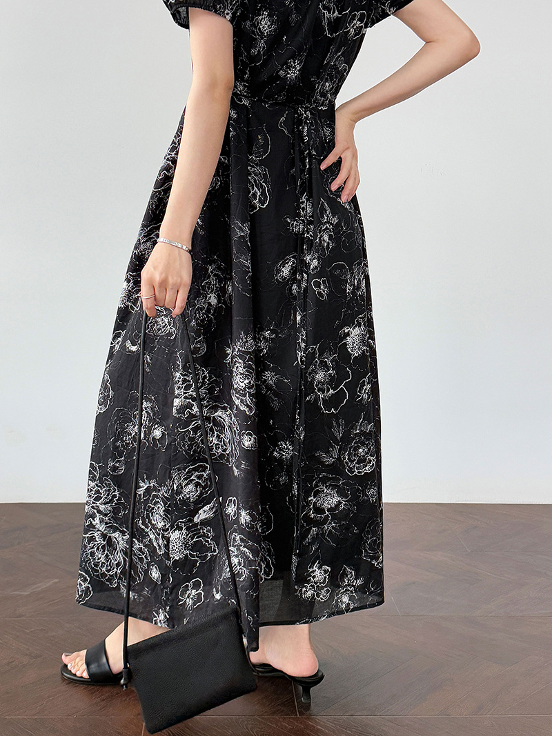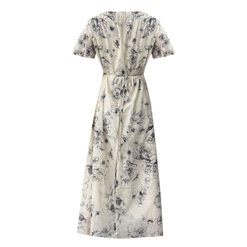 【ワンピース】フレンチ夏新作 上品クラシック水墨画風 花柄ラップ半袖ワンピース【SHシリーズ】【JZシリーズ】