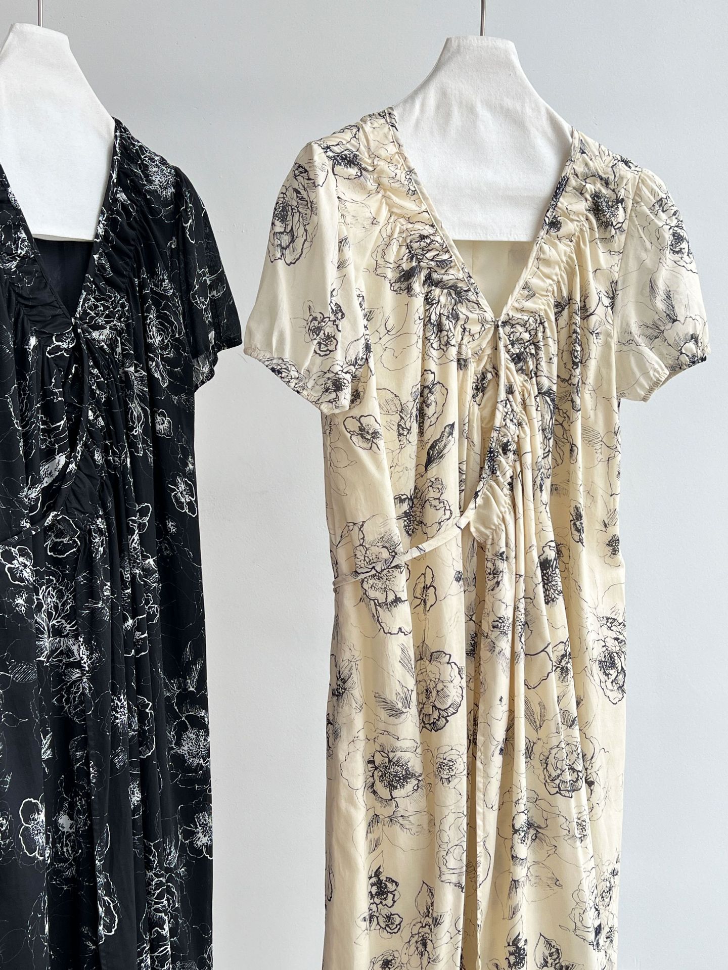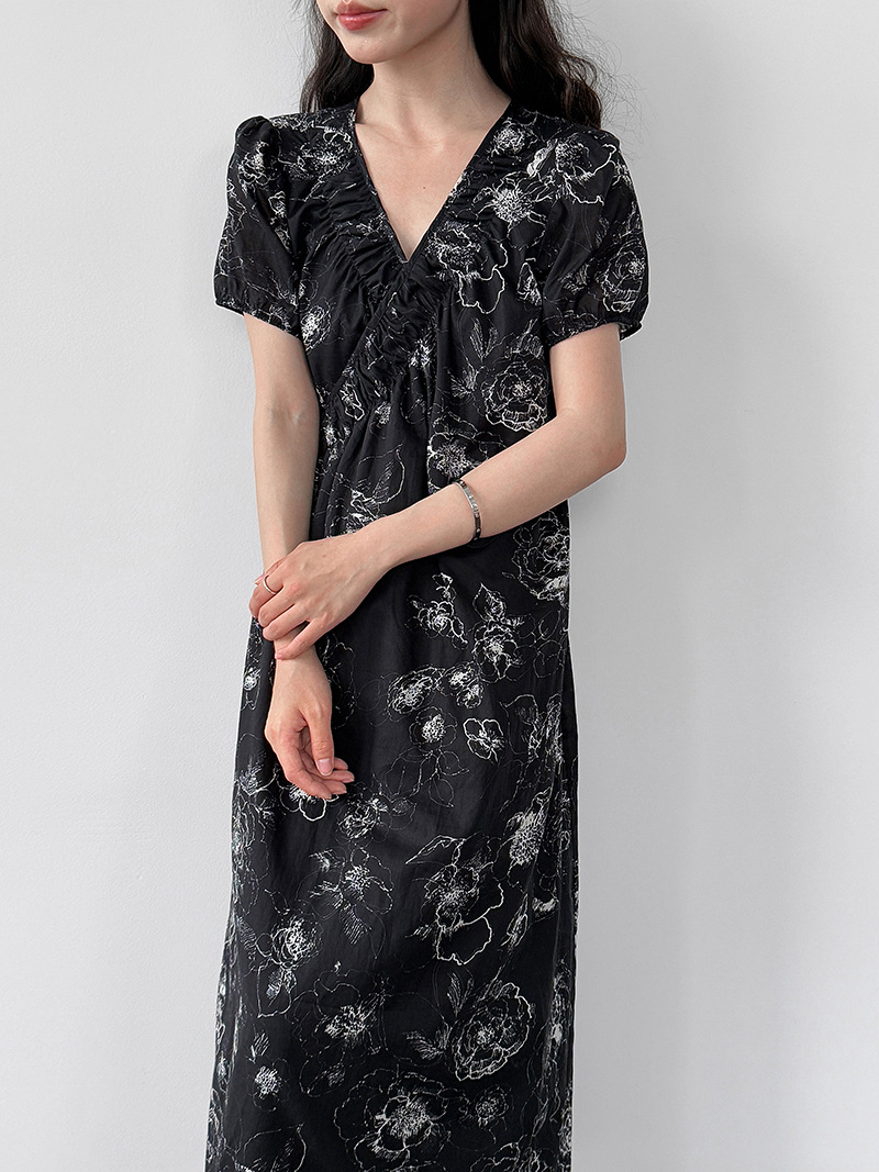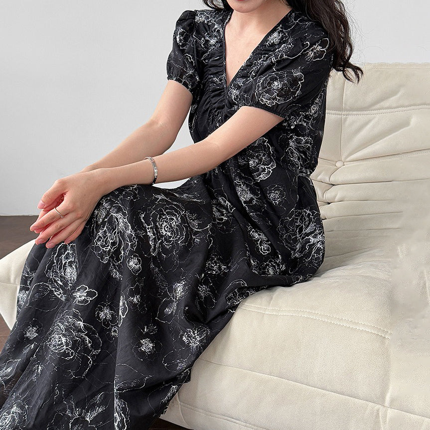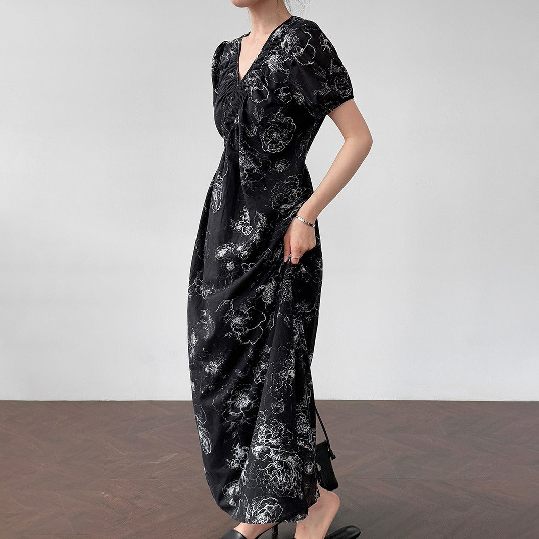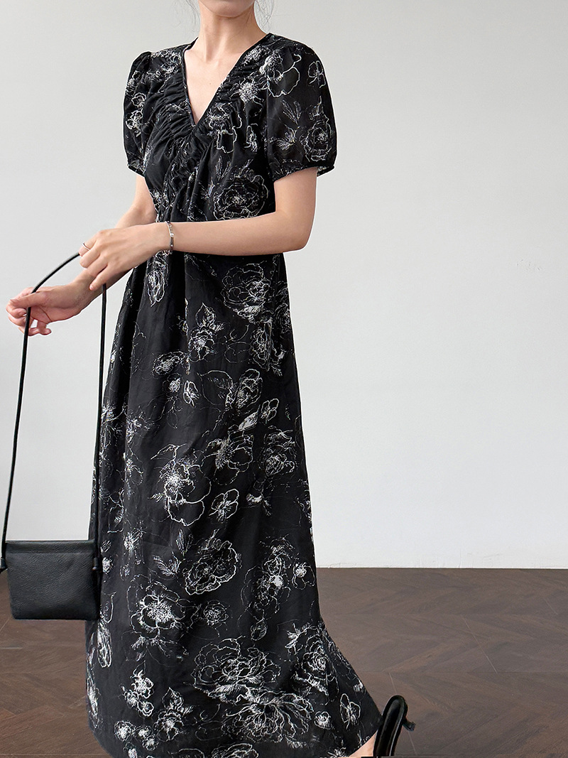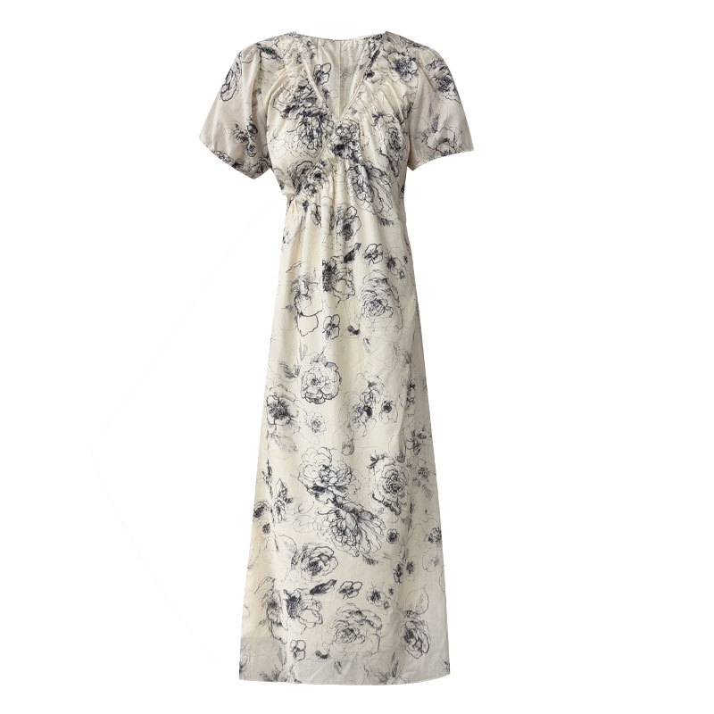 【商品名】【ワンピース】フレンチ夏新作 上品クラシック水墨画風 花柄ラップ半袖ワンピース【SHシリーズ】【JZシリーズ】