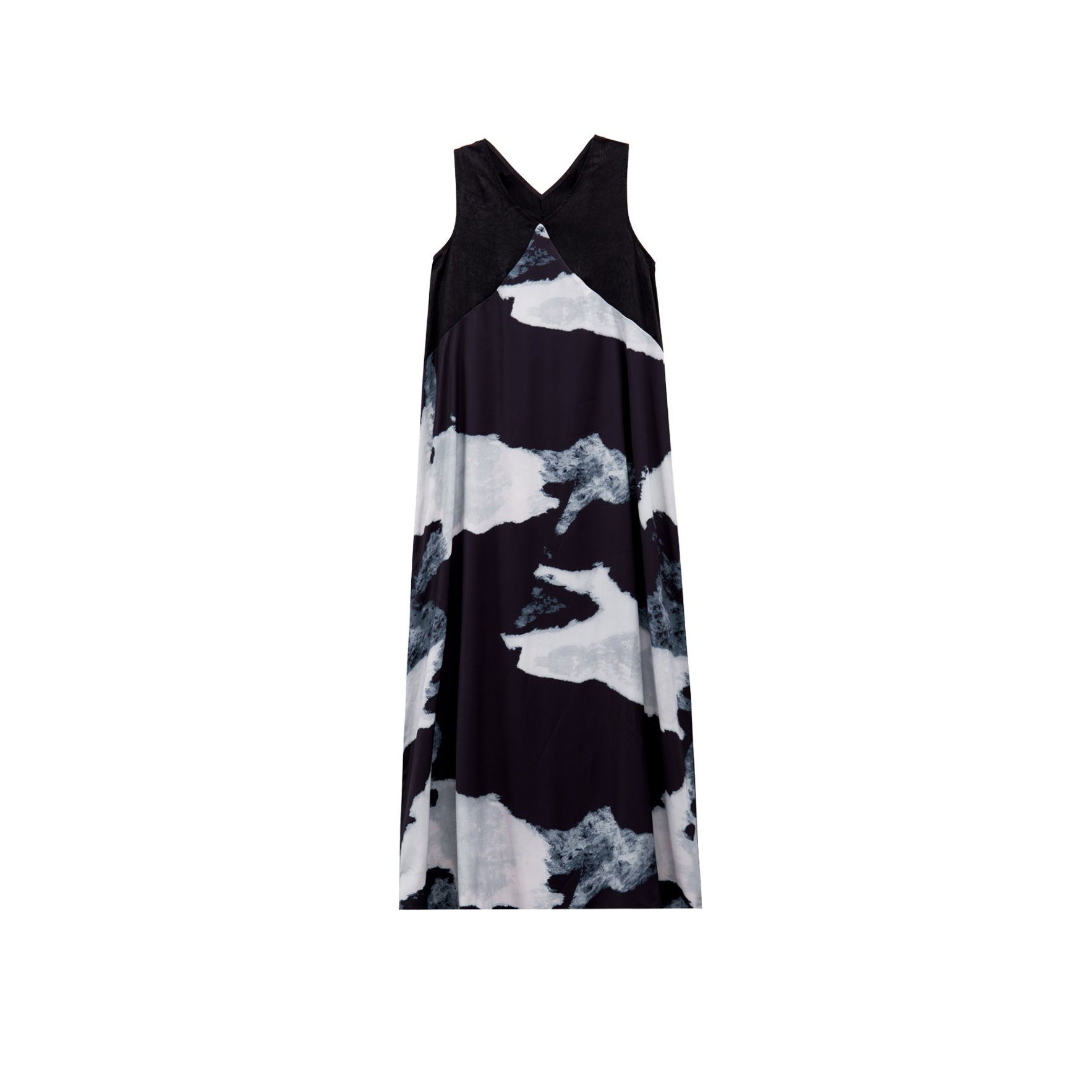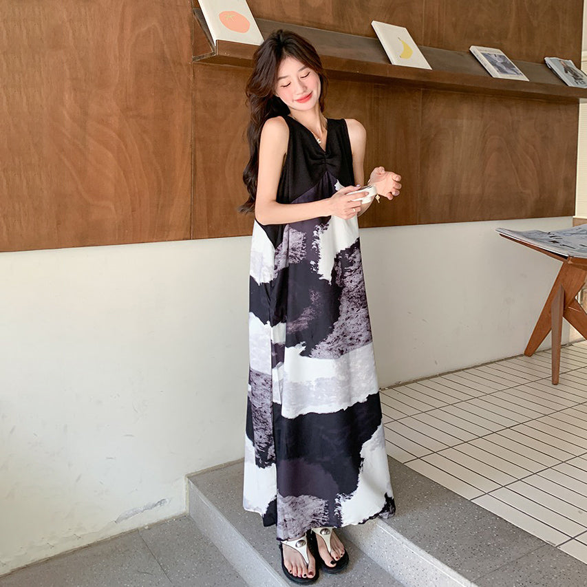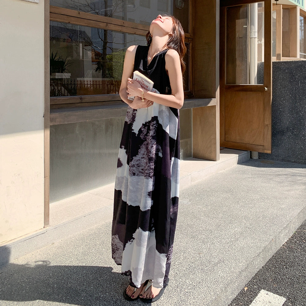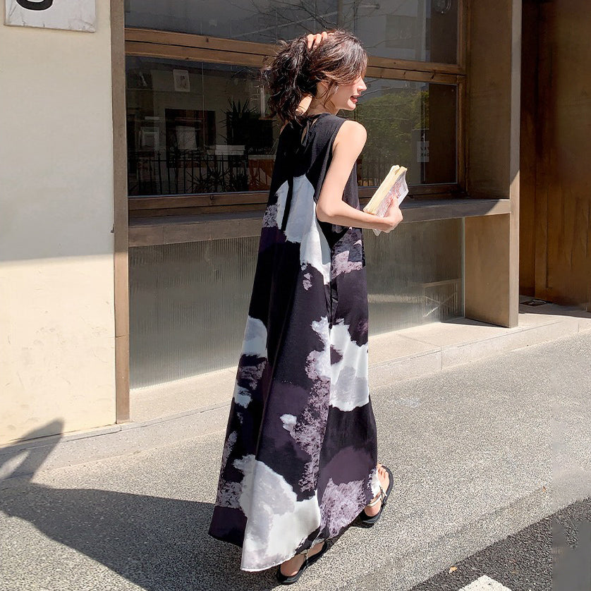 【商品名】【ワンピース】夏新作 レトロ水墨風プリント リラックス感Vネック ノースリーブワンピース【SHシリーズ】