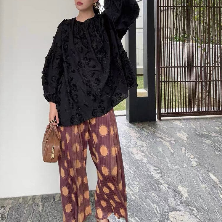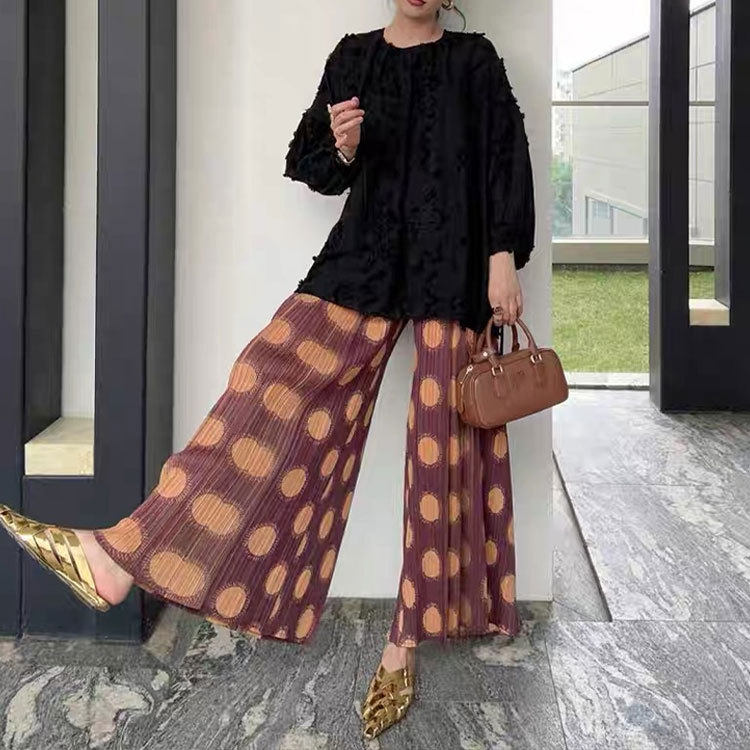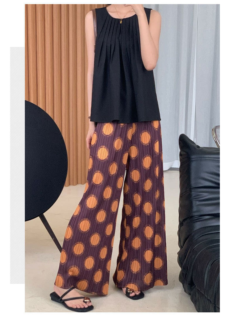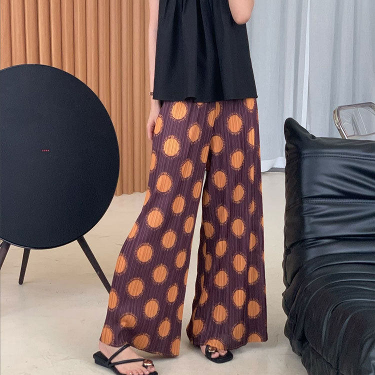 【商品名】【ボトムス】夏 プリーツ加工 プリーツ加工 ドット柄 パンツ 【SHシリーズ】