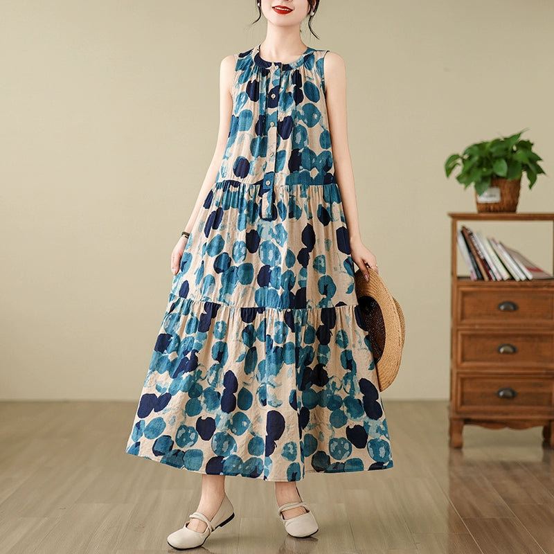 【商品名】【ワンピース】レトロ気質 細見え 若見え ノースリーブワンピース【SHシリーズ】