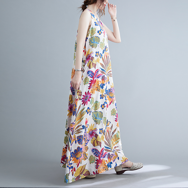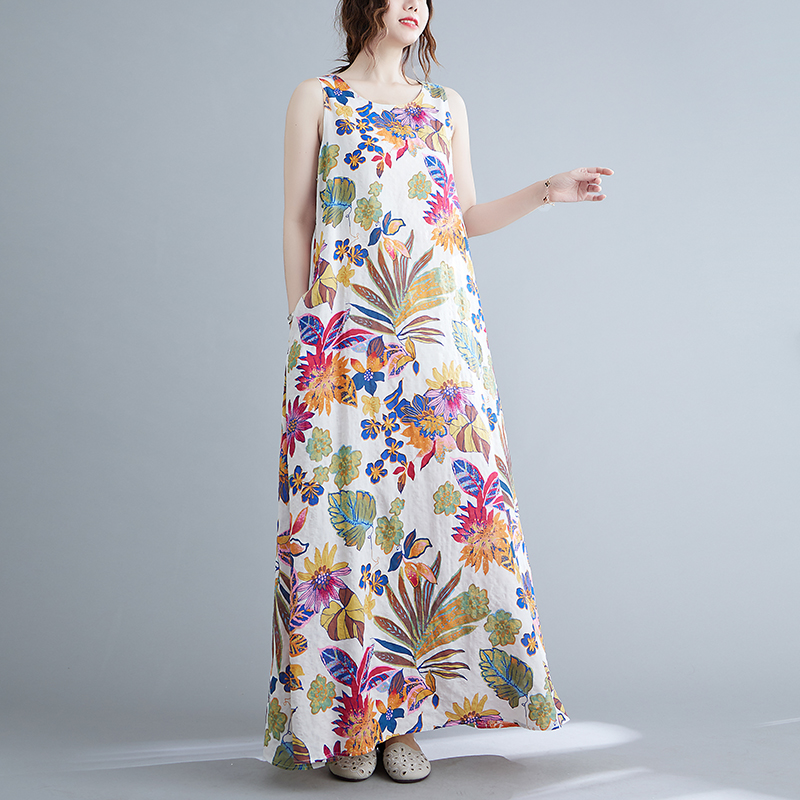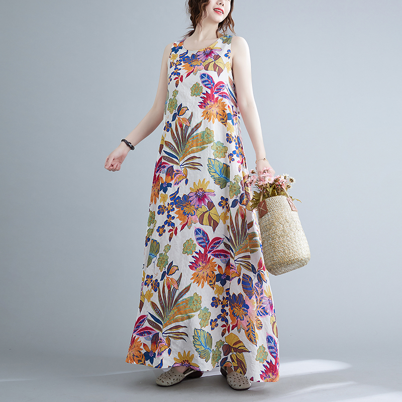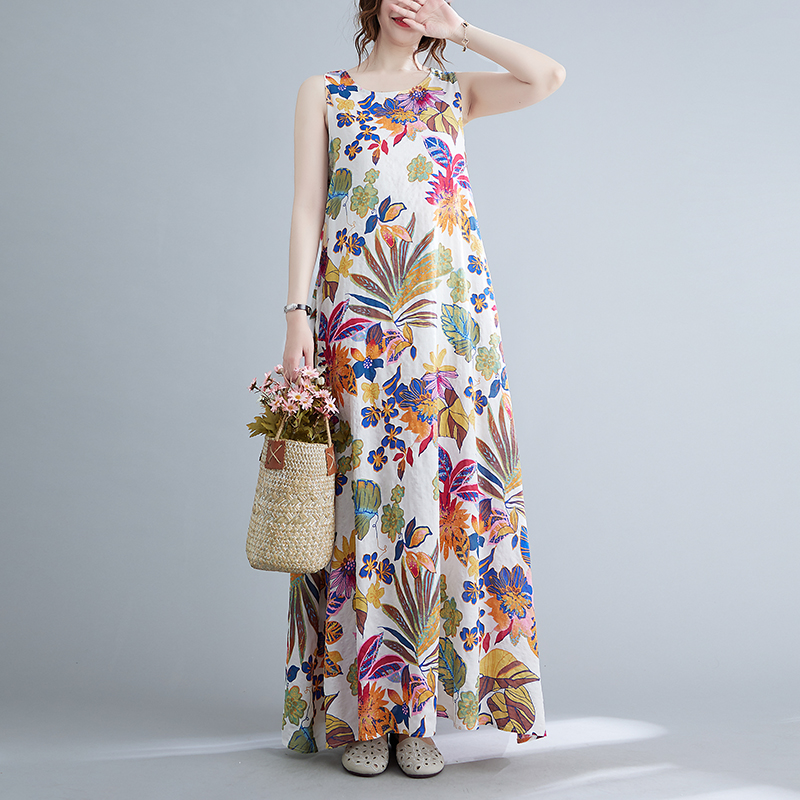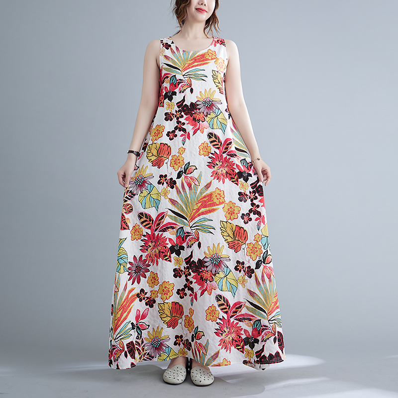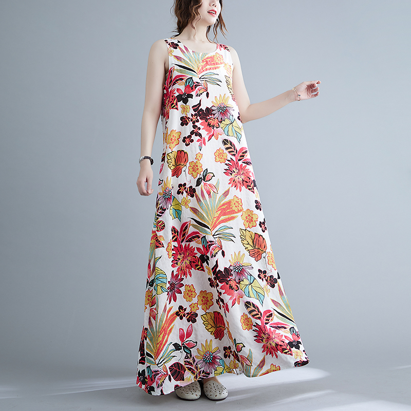 【商品名】【ワンピース】レトロ カジュアル 定番 夏 フラワープリント ノースリーブ チュニックワンピース【SHシリーズ】