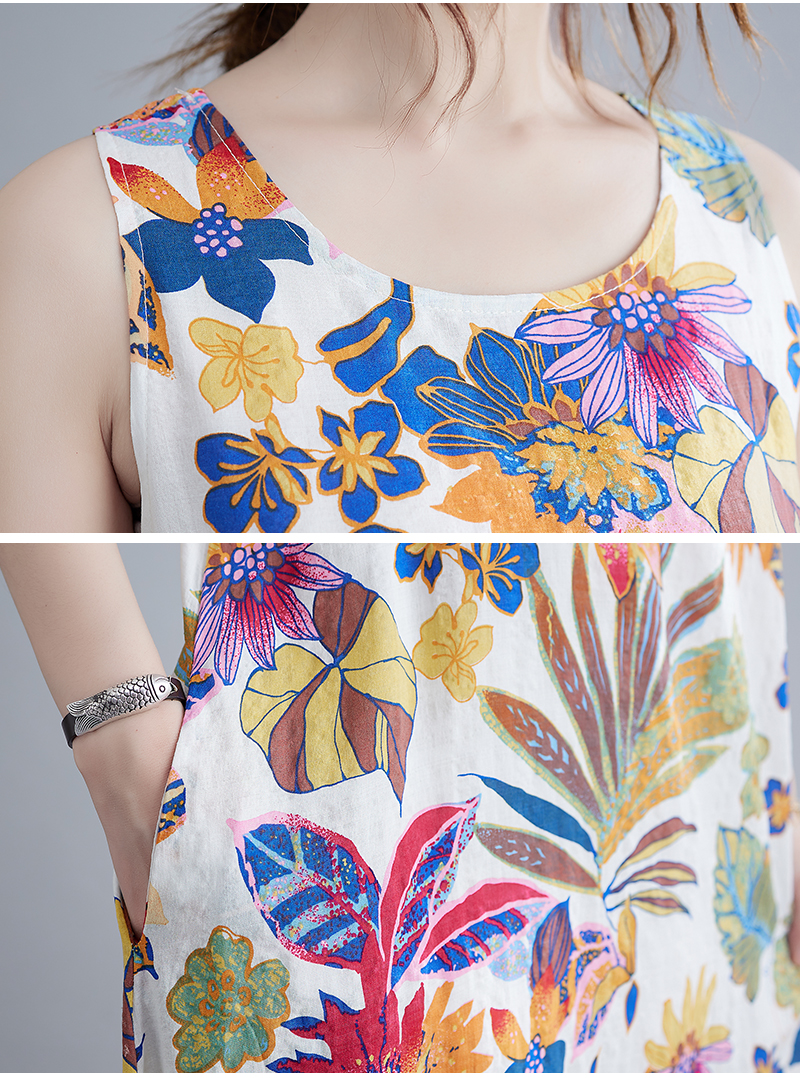 【ワンピース】レトロ カジュアル 定番 夏 フラワープリント ノースリーブ チュニックワンピース【SHシリーズ】