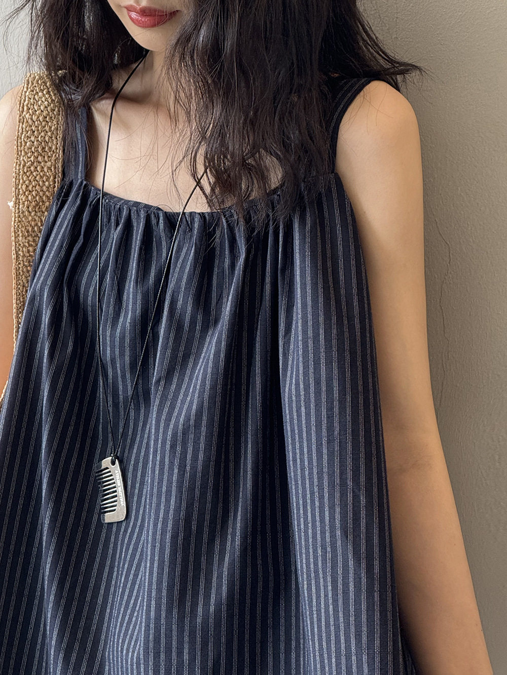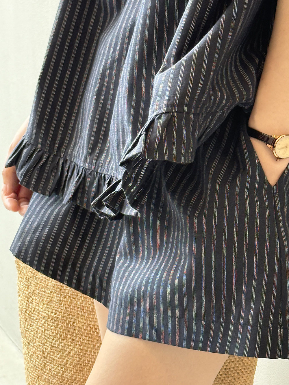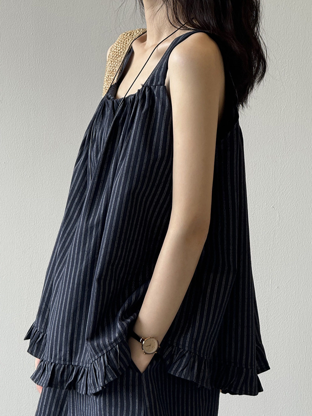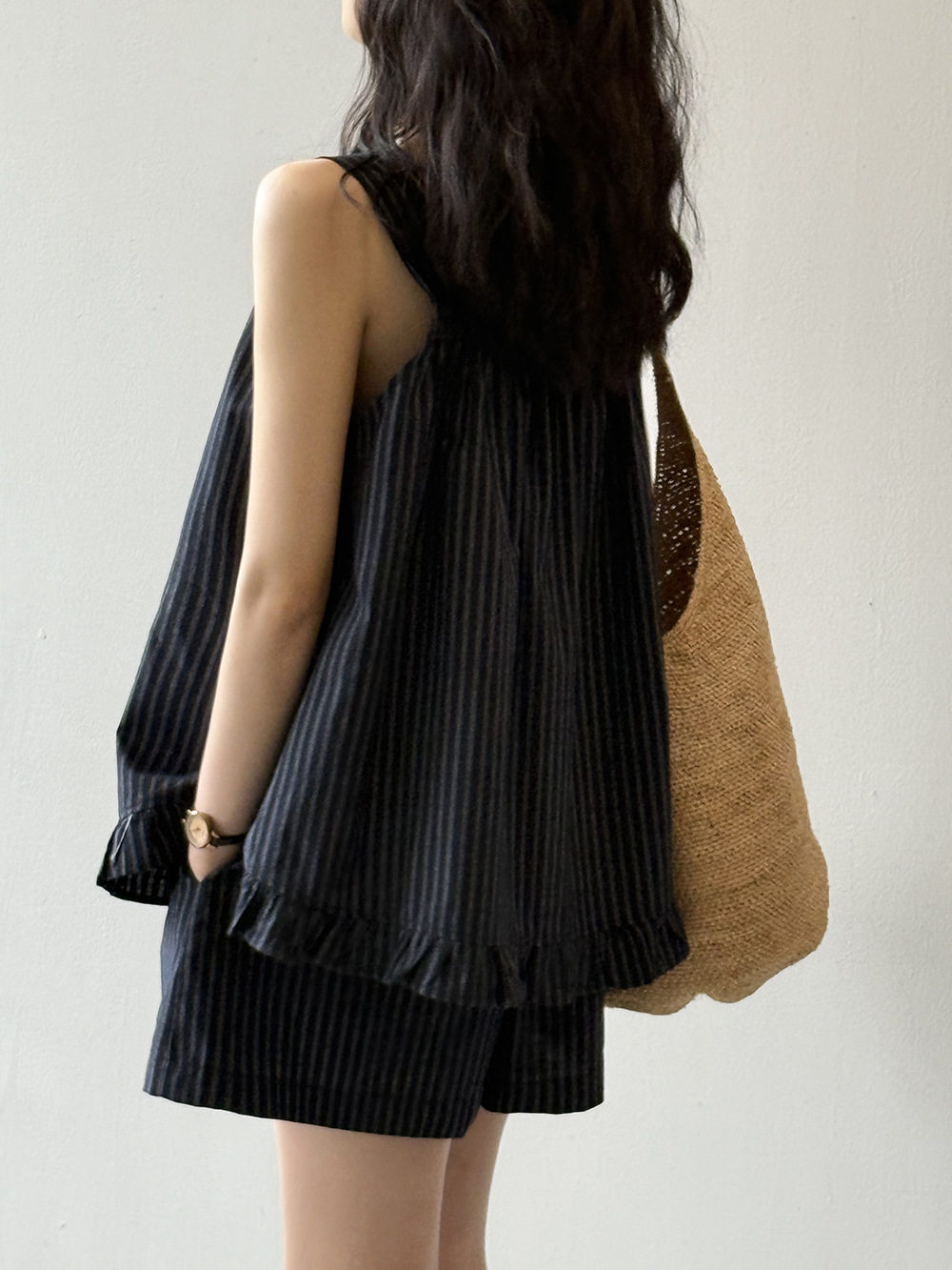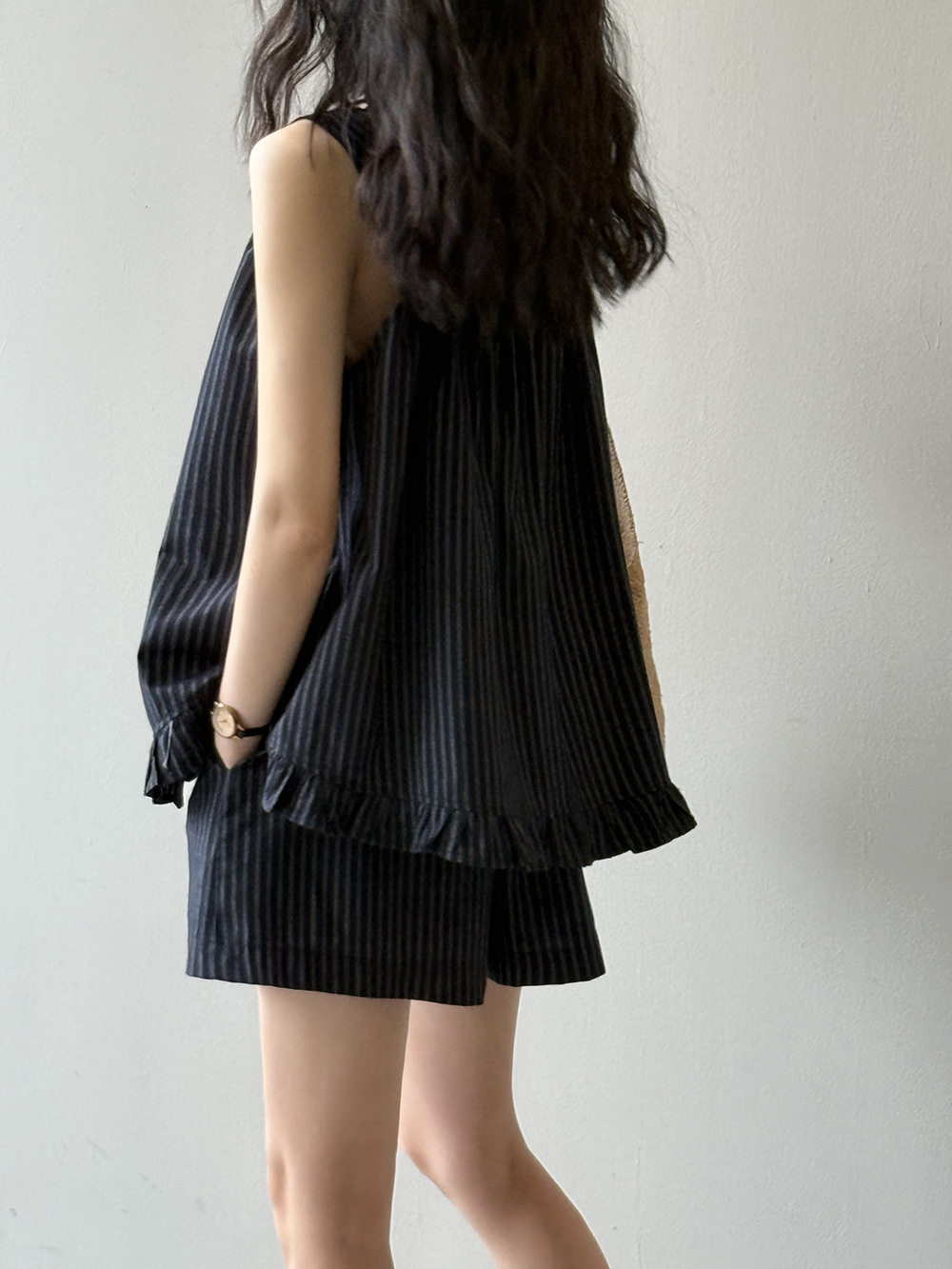 【商品名】【ボトムス】ストライプタンクトップシャツ+ゆったりスリム効果のあるショートパンツ 上下セット【JZシリーズ】