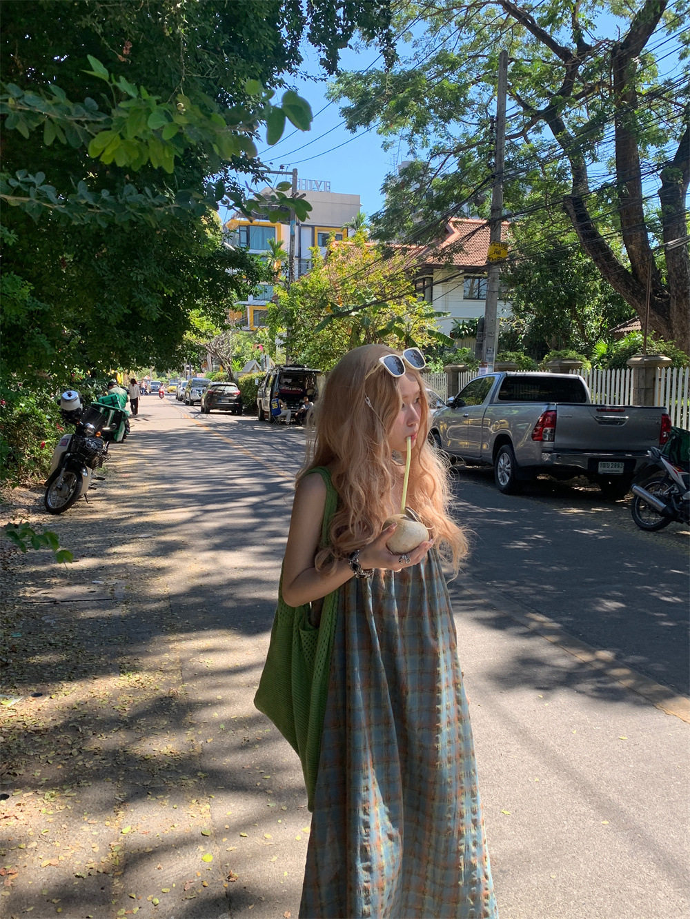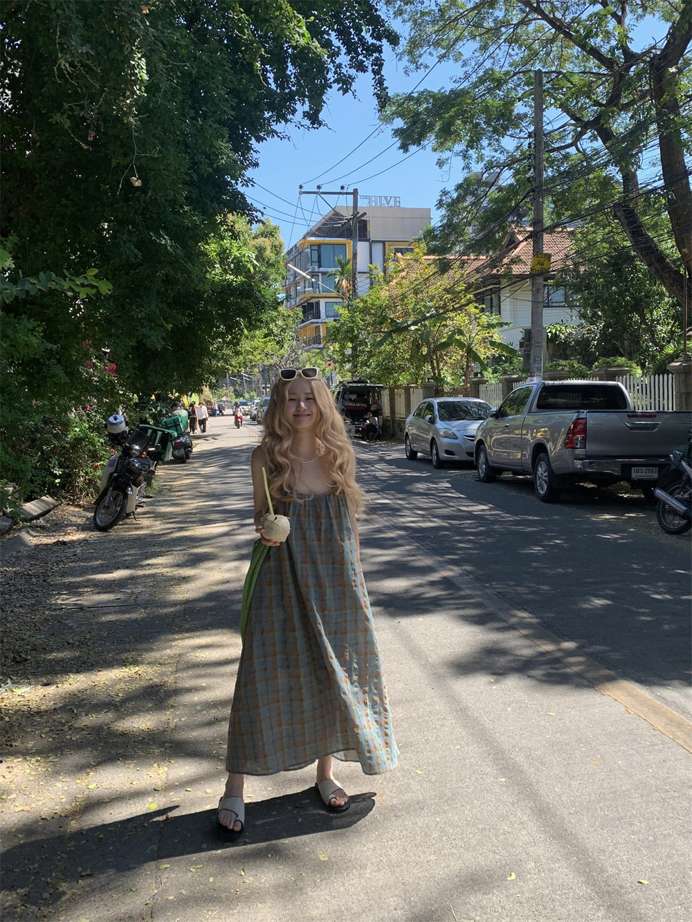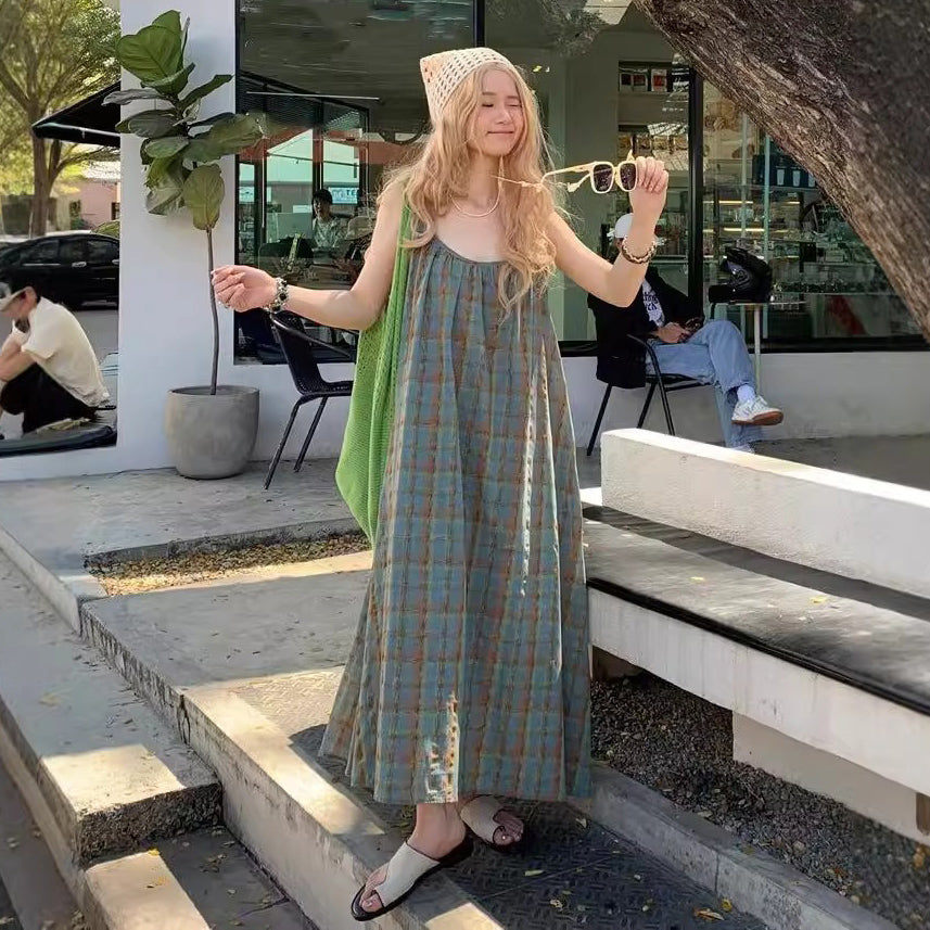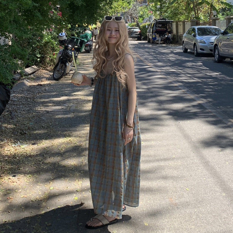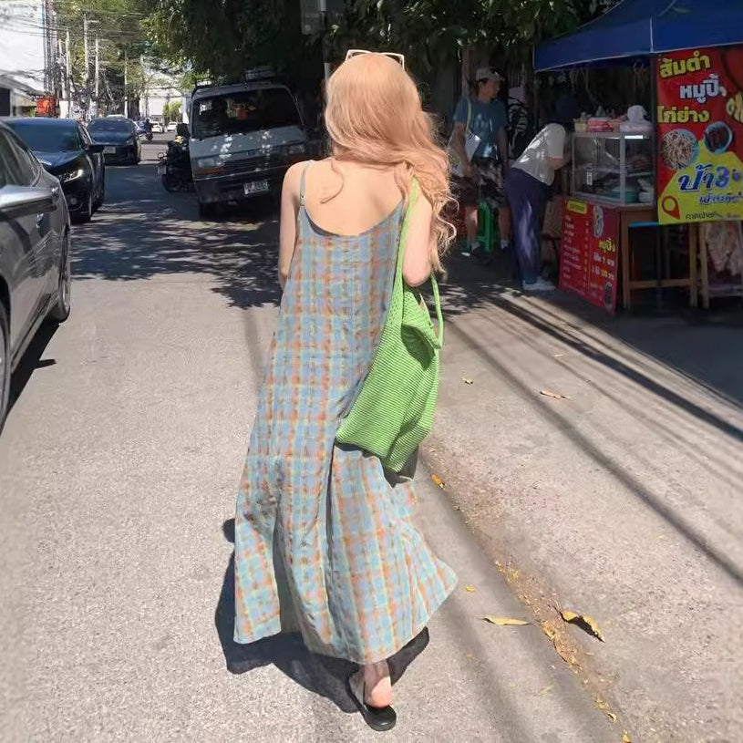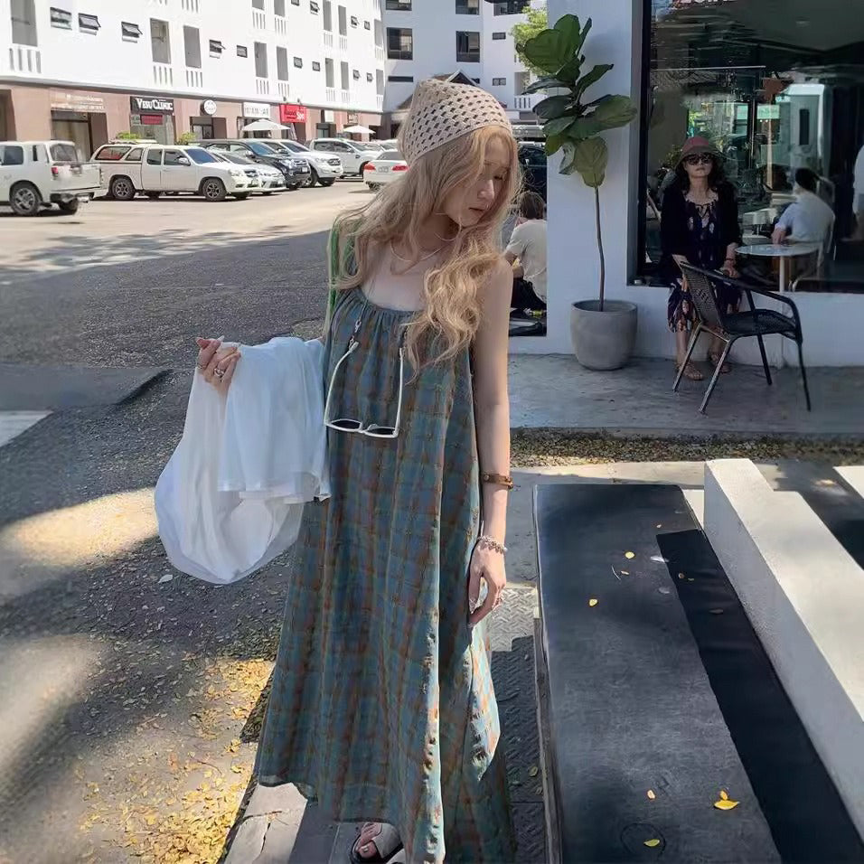 【ワンピース】大きいサイズ 気質 リゾート風 チェック柄 ノースリーブ キャミワンピース【SHシリーズ】