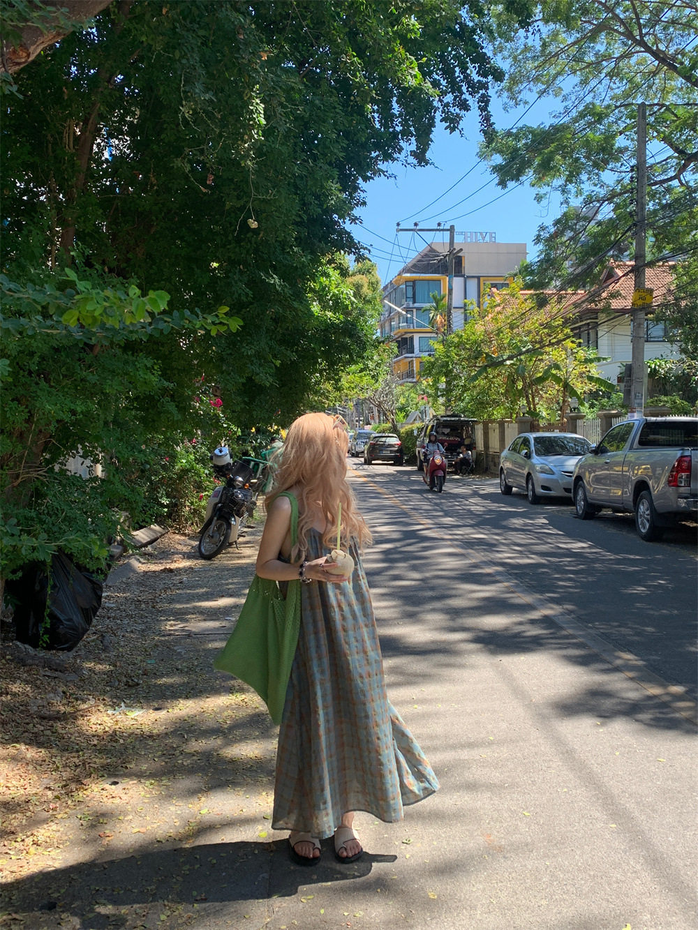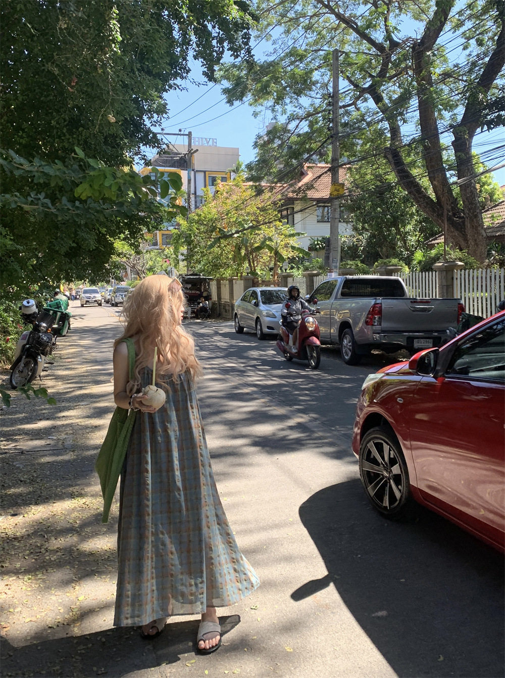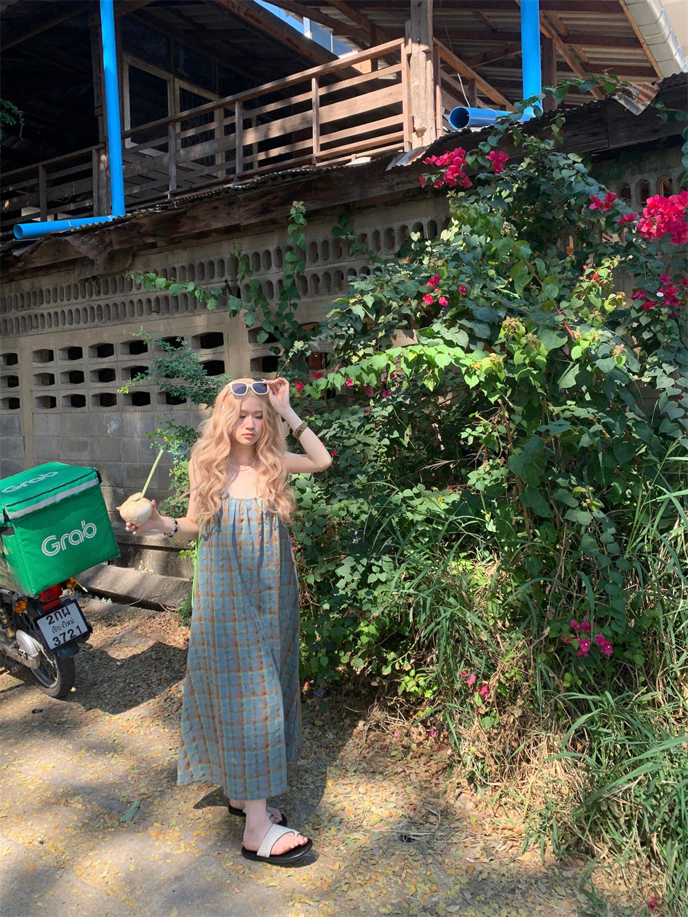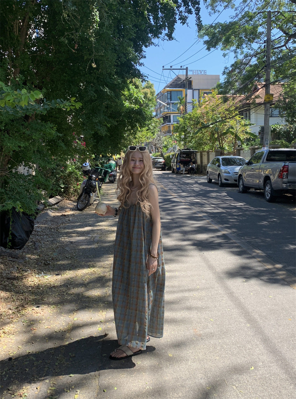 【ワンピース】大きいサイズ 気質 リゾート風 チェック柄 ノースリーブ キャミワンピース【SHシリーズ】