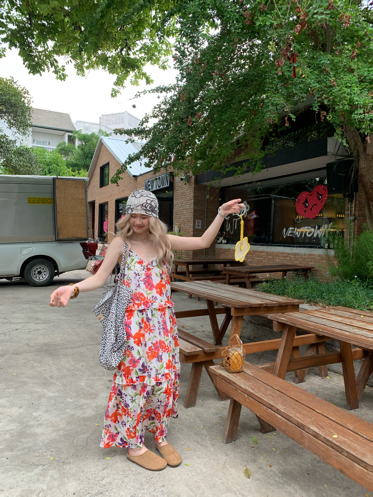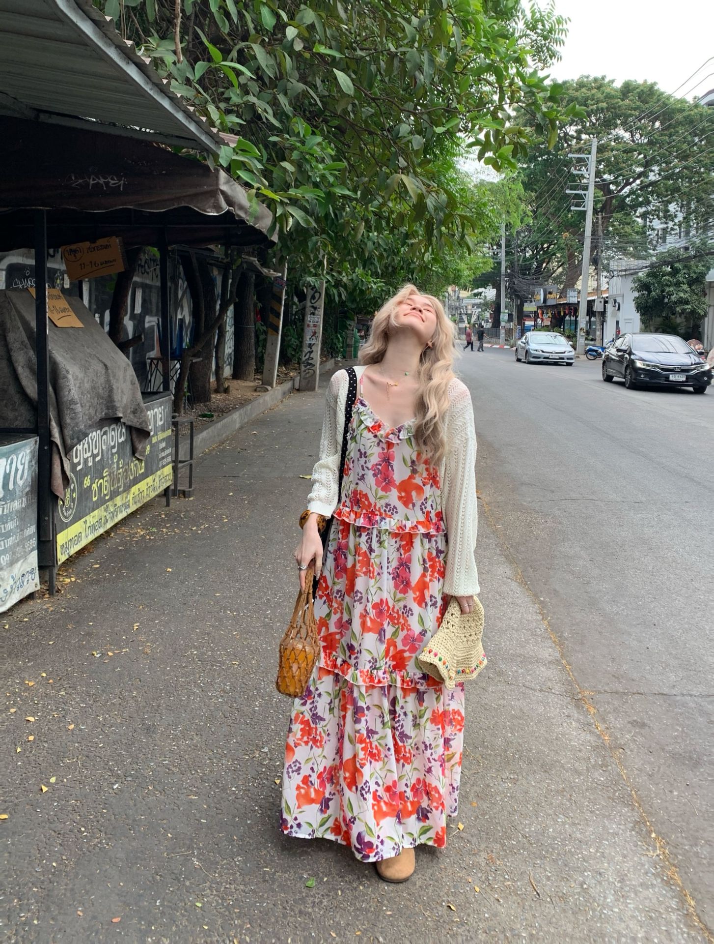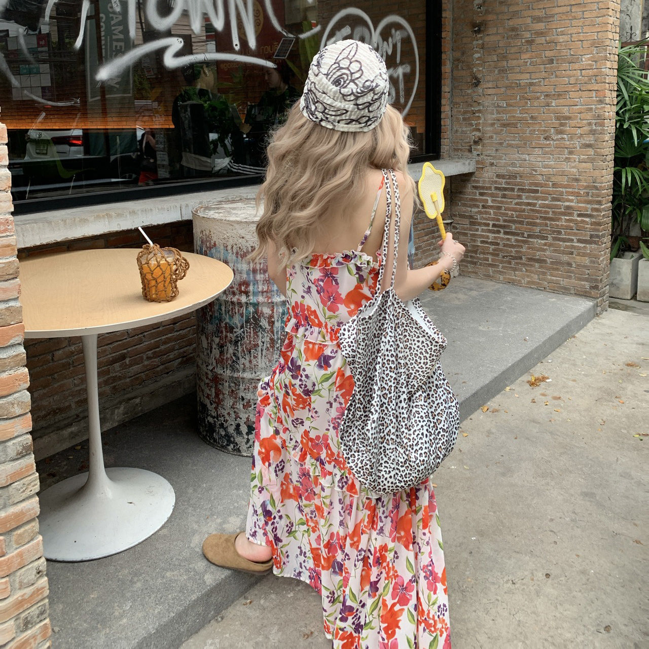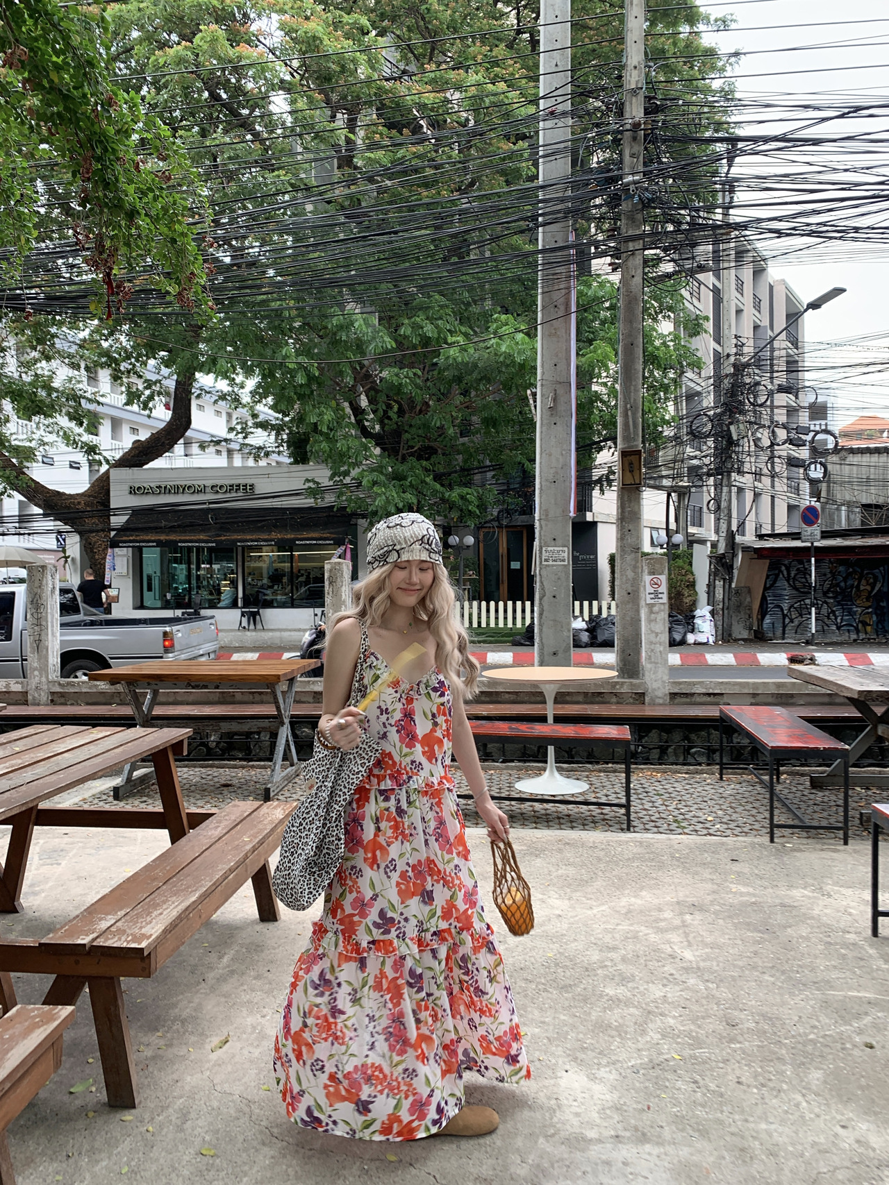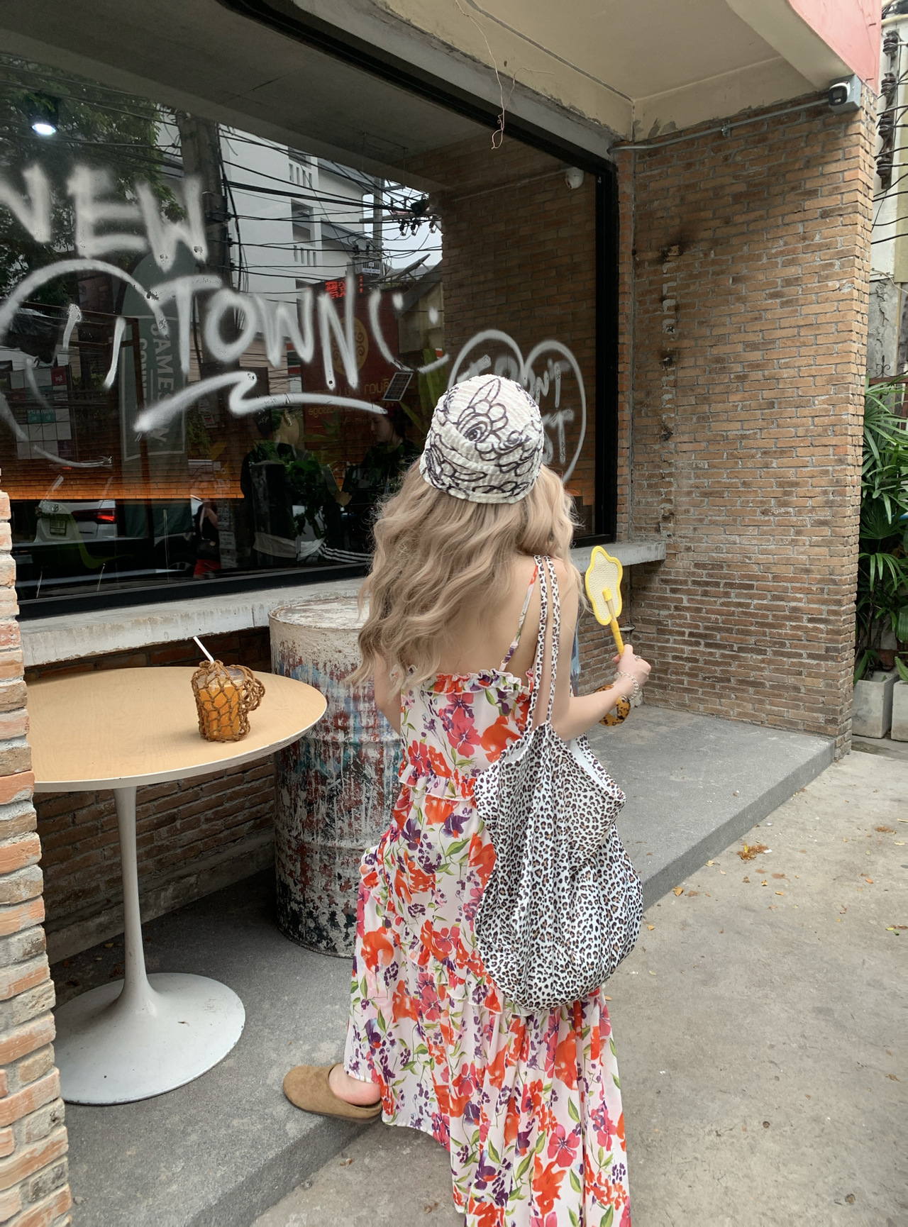 【ワンピース】夏 涼しげ 通気性 Vネック フリル付き 花柄 ノースリーブ キャミワンピース【SHシリーズ】
