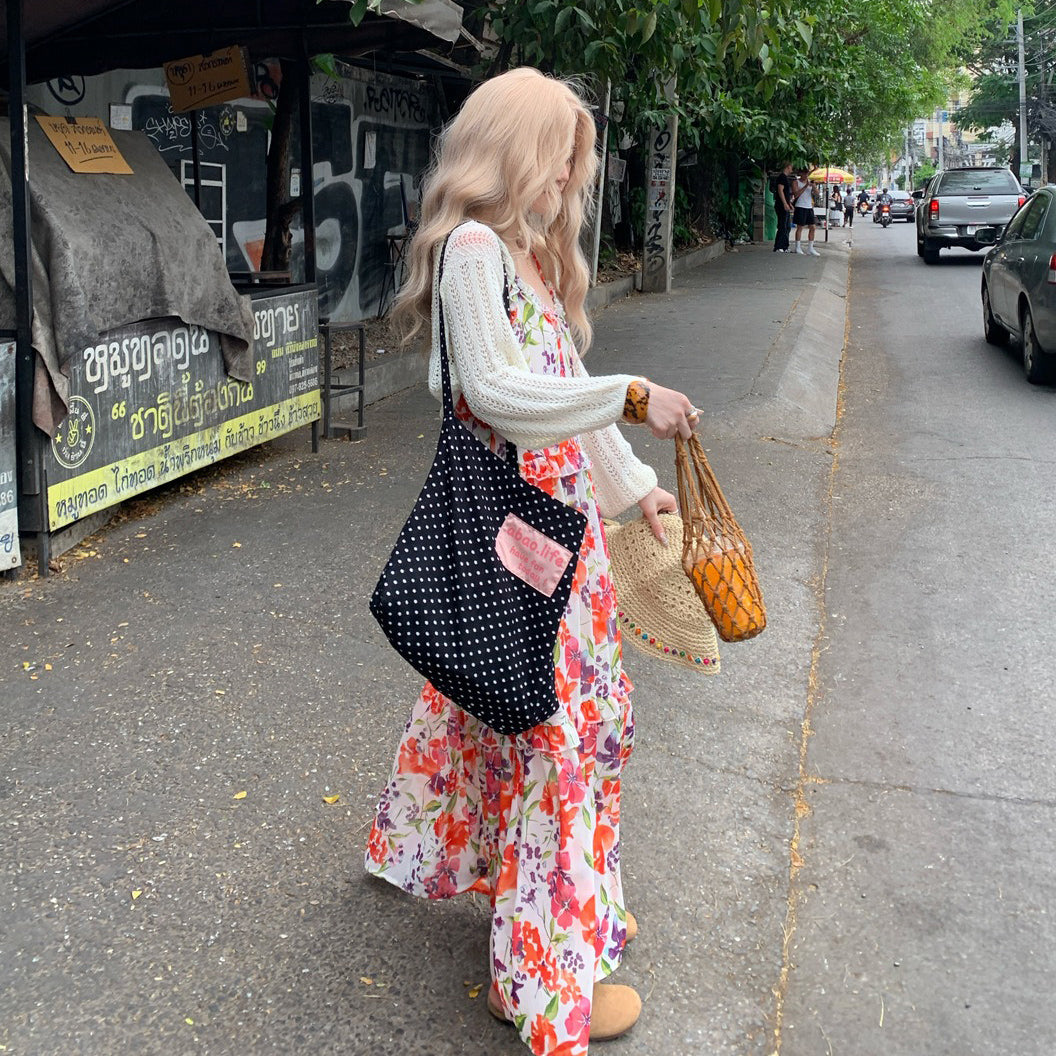 【ワンピース】春 秋 ドット ナチュラルガーリー ナチュラルガーリー プリント 長袖 ワンピース 【SHシリーズ】